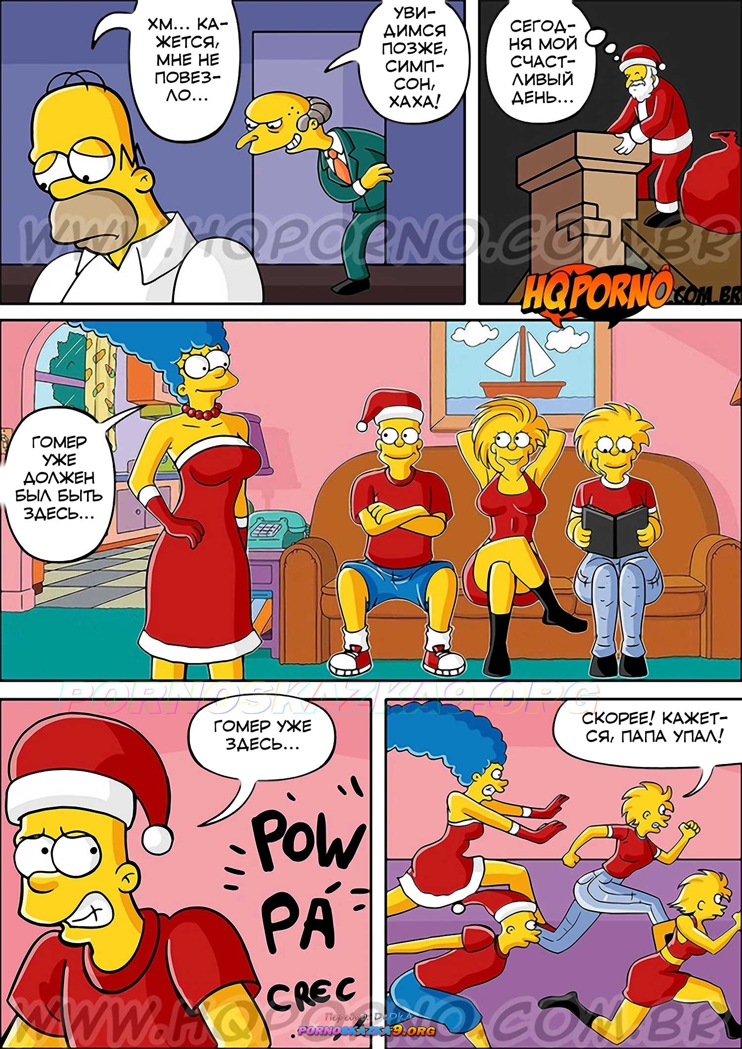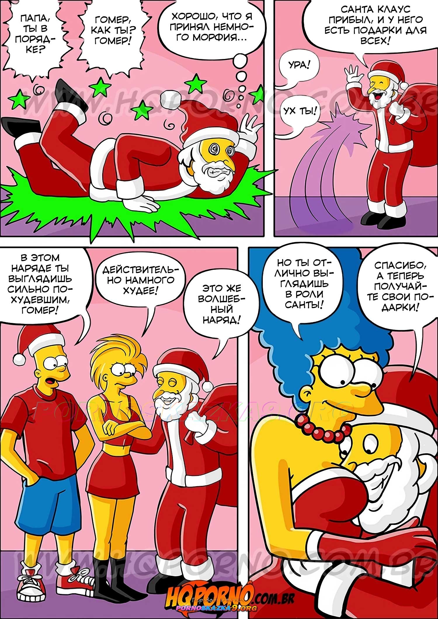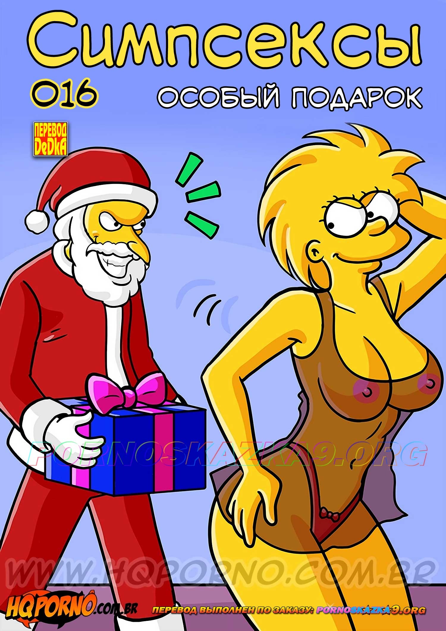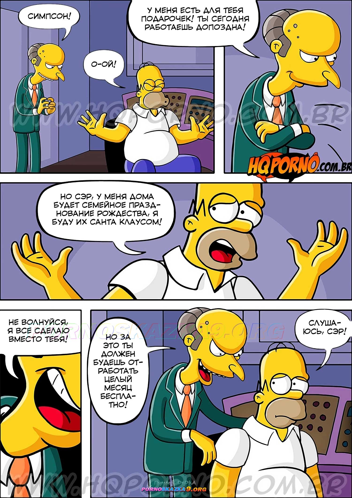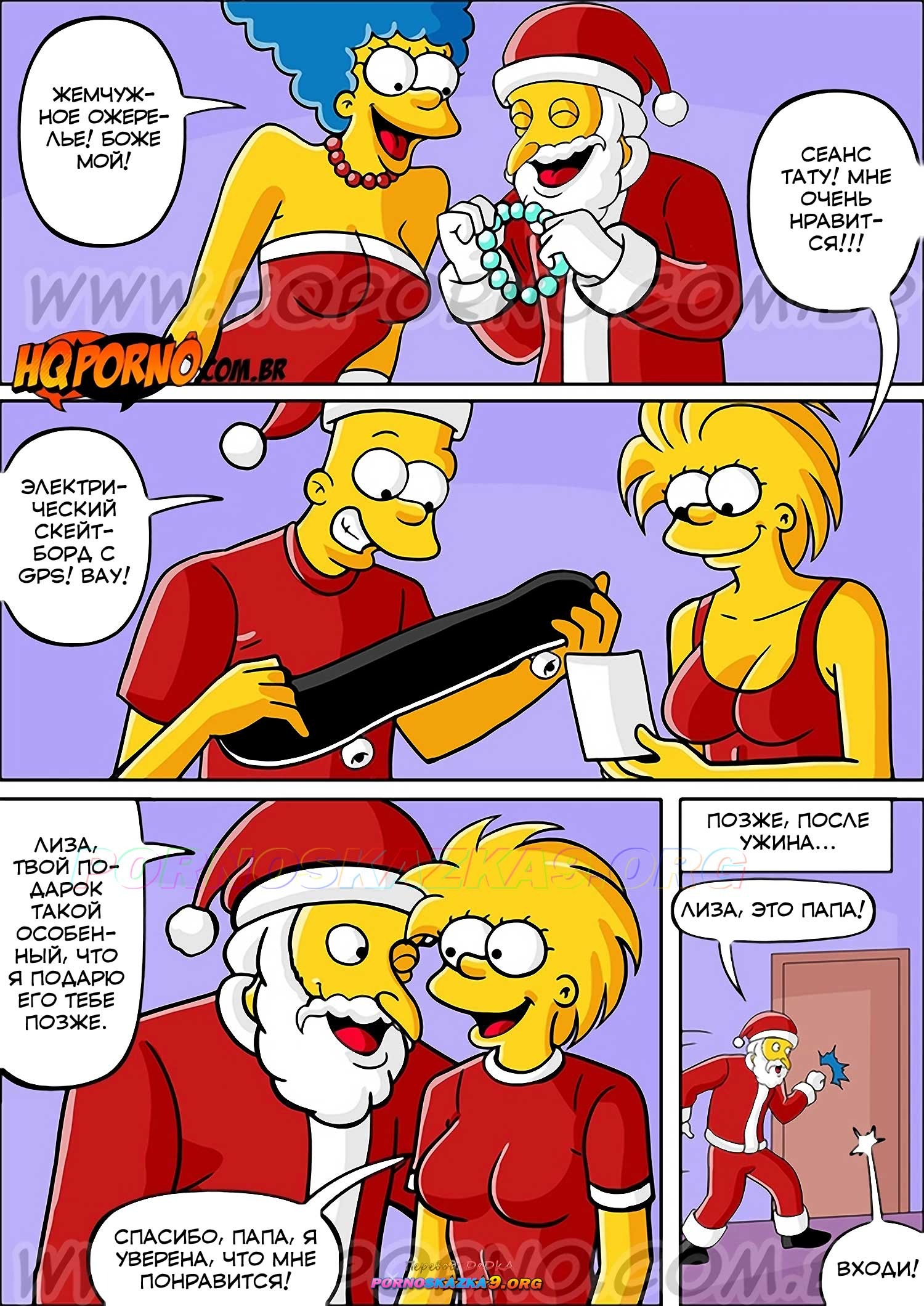 Порно комикс Симпсексы. Часть 16: Особый подарок. Босс Гомера надел костюм Санты и отправился домой к его семье. Он сделал подарок дочери Гомера, а она позвала его в спальню, чтобы отблагодарить его и заняться сексом…