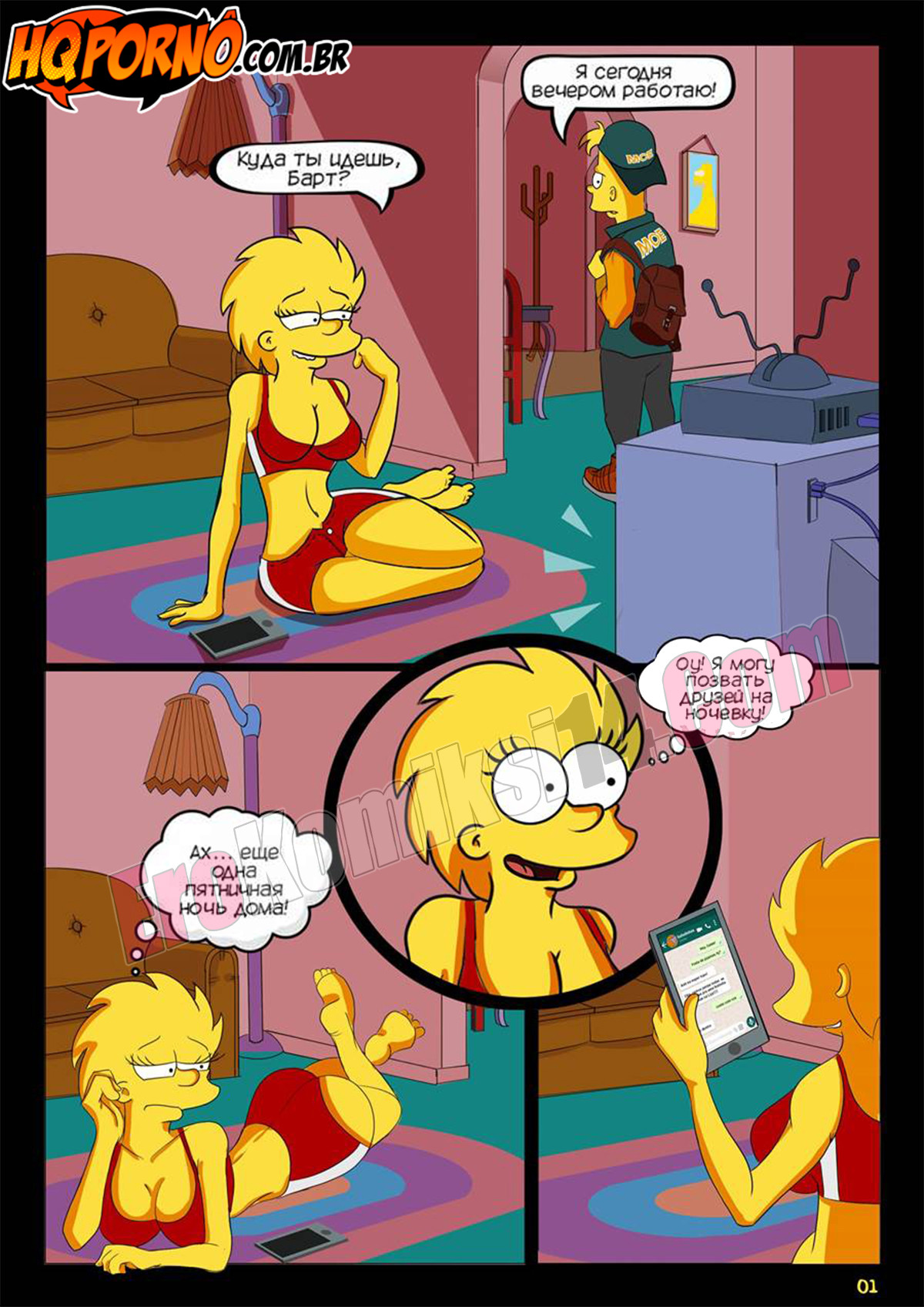 Порно комикс Симпсексы. Заказ пиццы. Симпсоны. HQqporno Девушка собрала своих подружек на ночевку и они решили поиграть в правду или действие. Ей загадали трахнуть парня, который привезет им пиццу, но курьером оказался Барт брат девушки. Она никогда не проигрывает в эту игру, поэтому нашла способ выполнить задание.