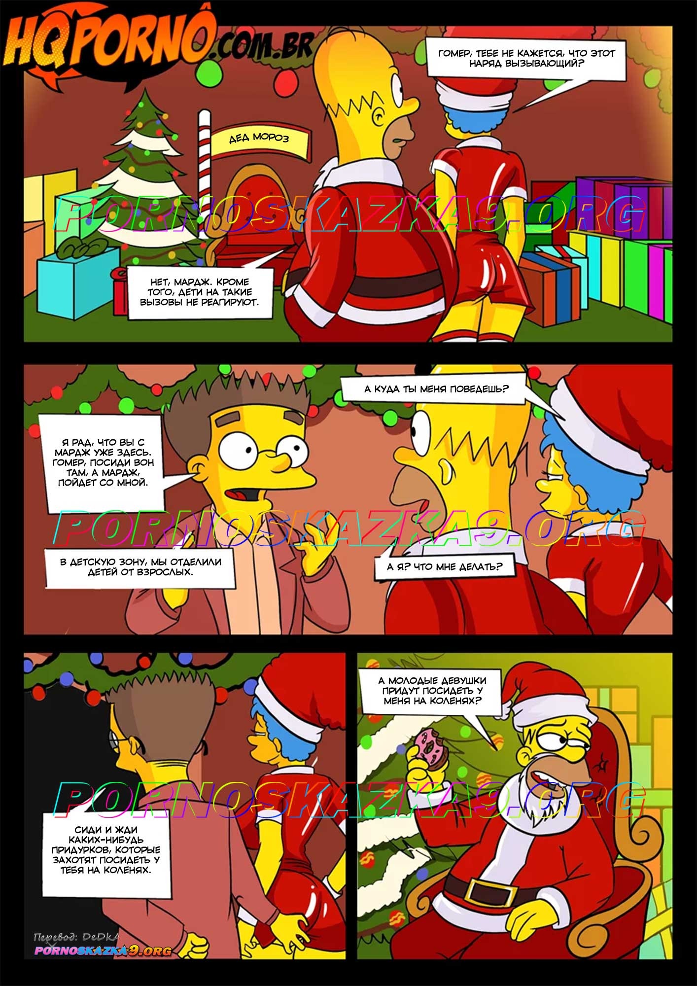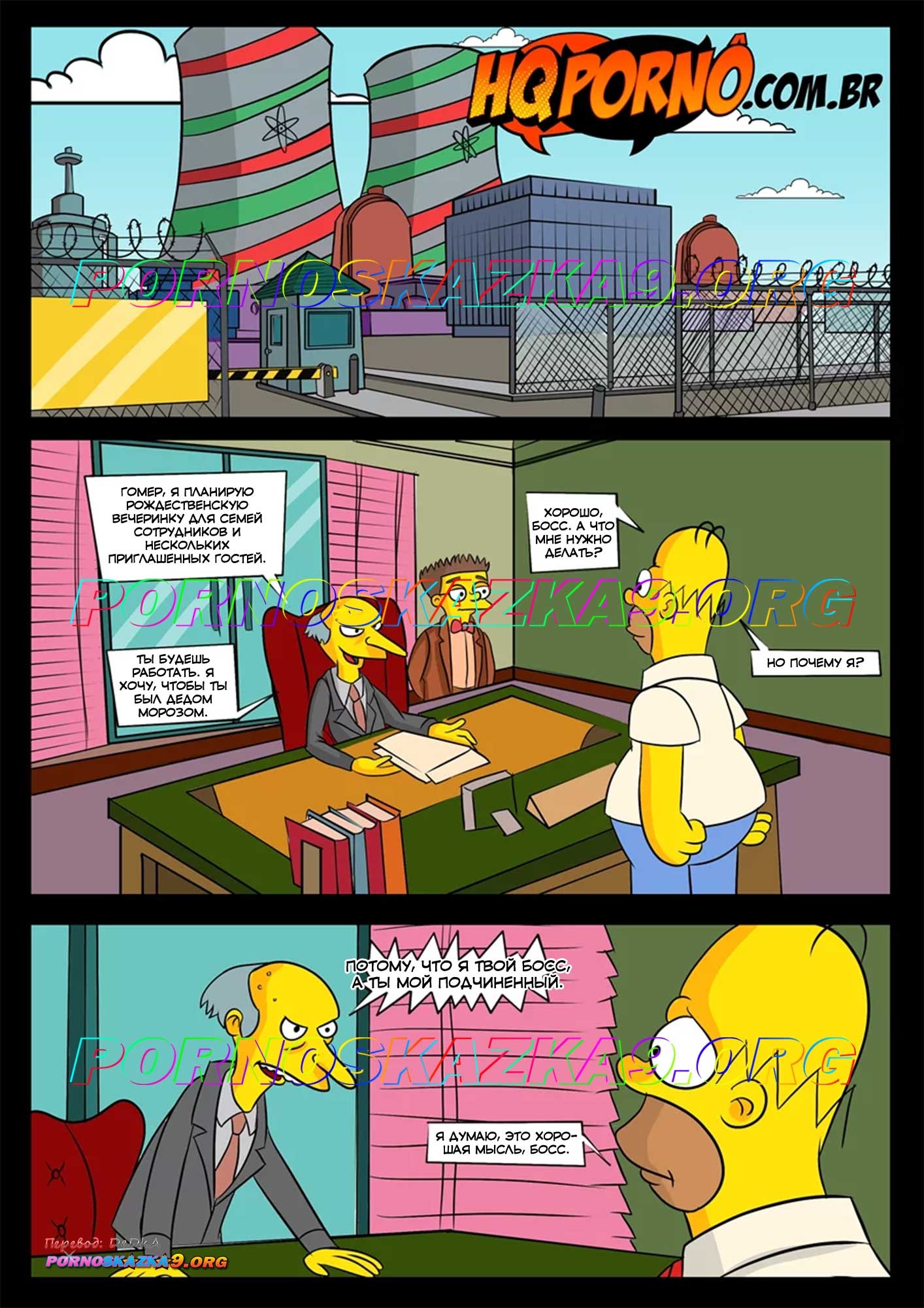 Порно комикс Симпсексы. Часть 8: Рождественский корпоратив. Босс Гомера на Рождество решил устроить корпоративную оргию. Гомеру босс приказал привести Мардж в костюме снегурочки, а самому нарядиться Дедом Морозом…