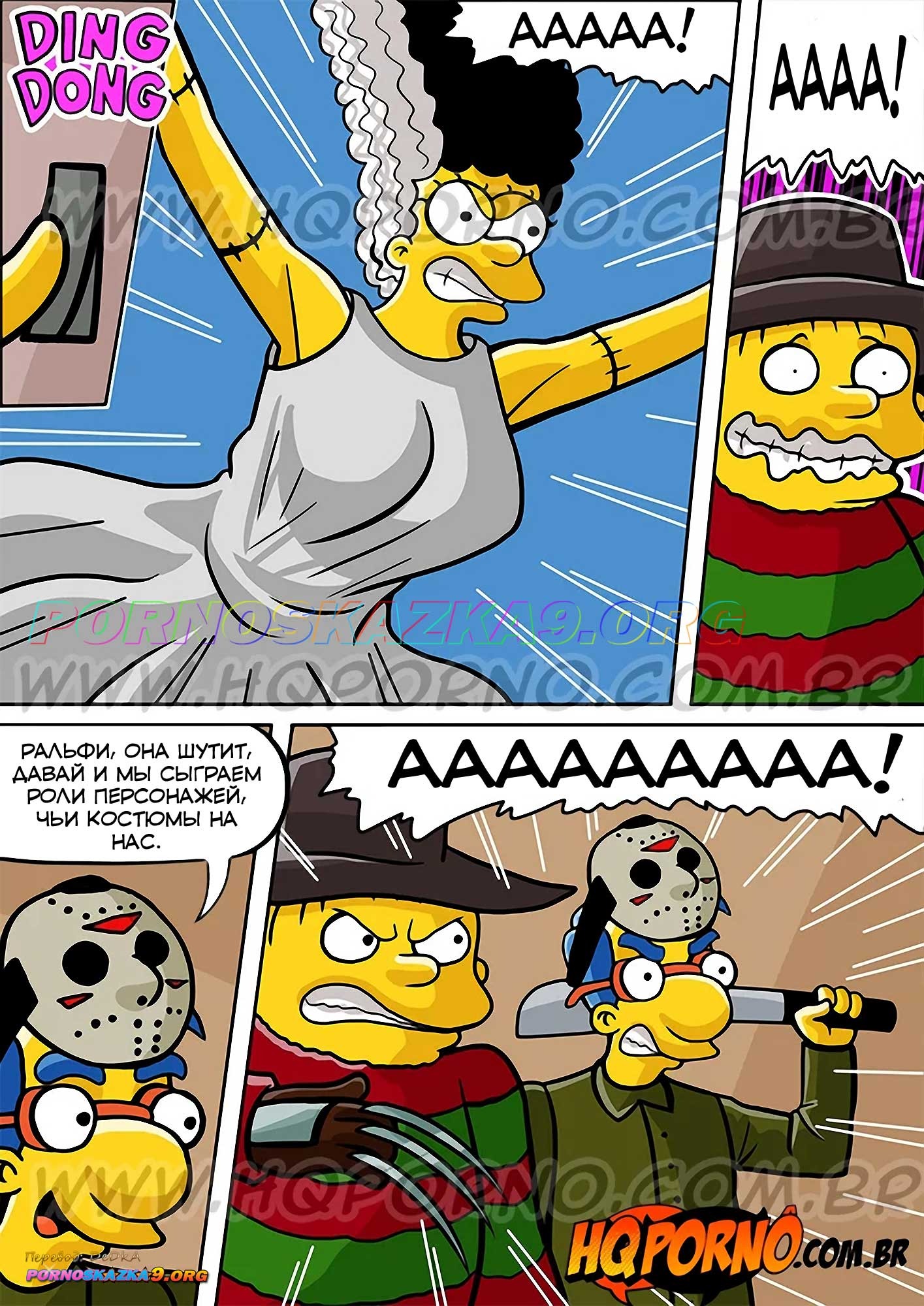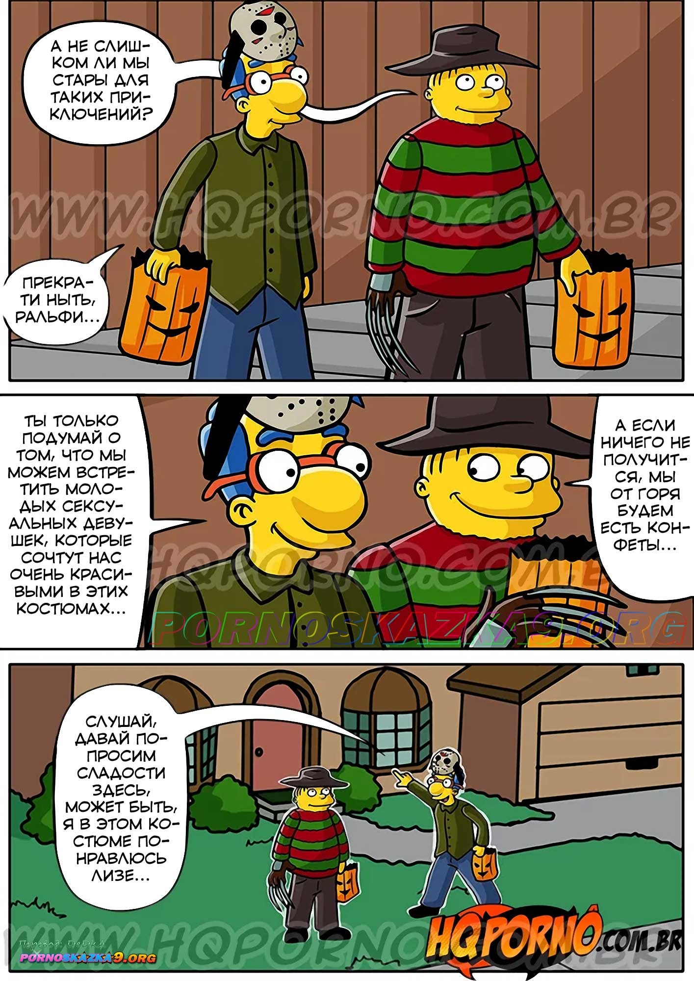 Порно комикс Симпсексы. Часть 9: Хэллоуин Мардж. В ночь на Хэллоуин Гомер оставил Мардж одну дома и отправился в пивную к Мо. Мардж не могла смириться с таким свинством и решила праздновать самостоятельно…