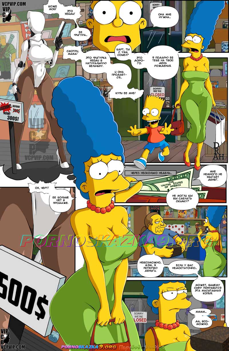 Порно комикс Симпсоны. Альтернативный подарок. The Alternative Gift. Drah Navlag Парень хотел купить куклу натуральных размеров, но его мамка Мардж захотела сама сыграть для него куклу. Парень получил подарок от мамочки и решил повеселиться с ней. Он дал ей отсосать свой большой хуй, после чего выебал ее.