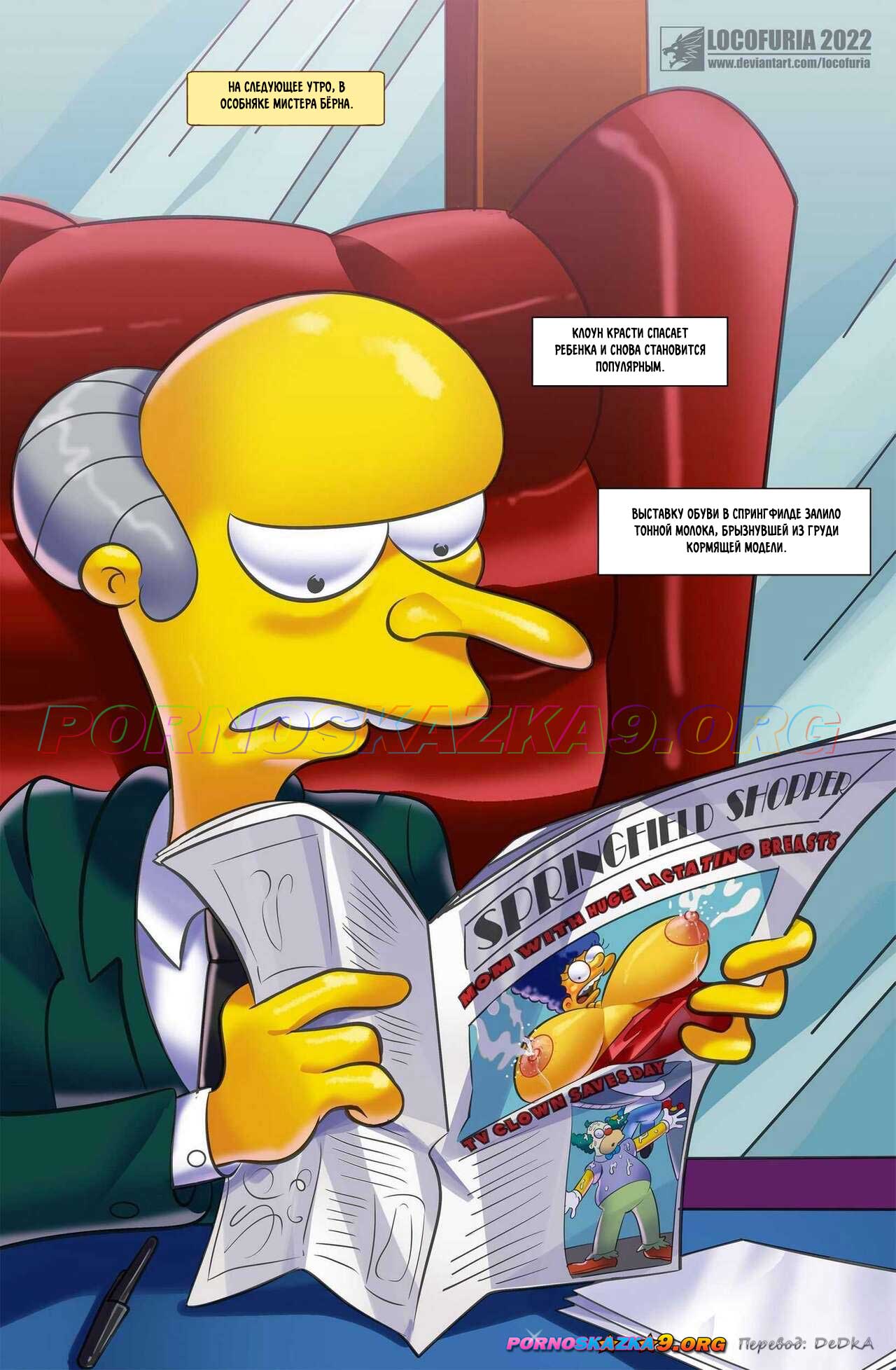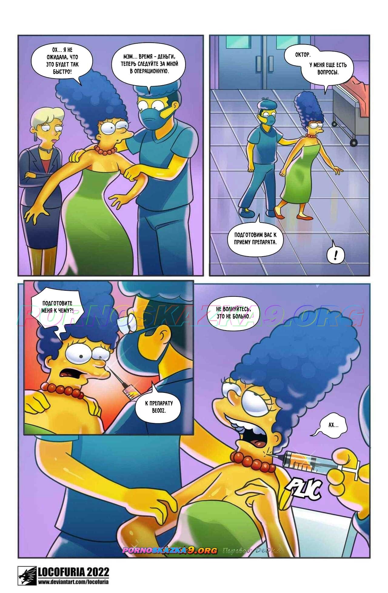 Порно комикс Симпсоны. Большие сиськи. Big Breasts. Locofuria Мардж решила сделать липосакцию, чтобы снова нравиться Гомеру, но по ошибке ей вкололи укол из-за которого ее сиськи стали огромными. Муж невероятно счастлив такому исходу и они занялись страстным сексом.