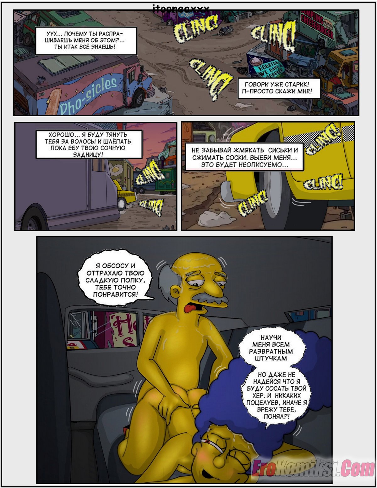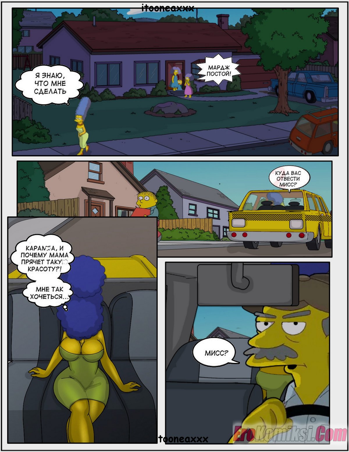 Порно комикс Симпсоны. Часть 10. Падение Часть 8. Simpsons. Oedipus. IToonEAXXX Сисястая милфа Мардж ехала в такси и очень возбудилась. Она разделась в машине и стала ласкать свою пизденку, после чего к ней присоединился таксист и хорошенько выебал сучку.