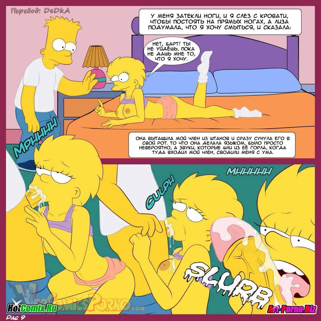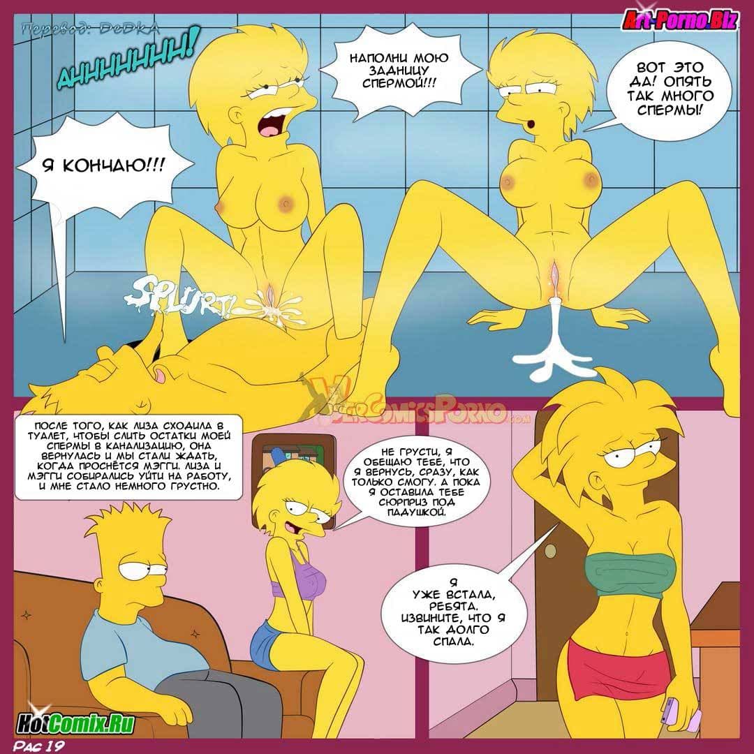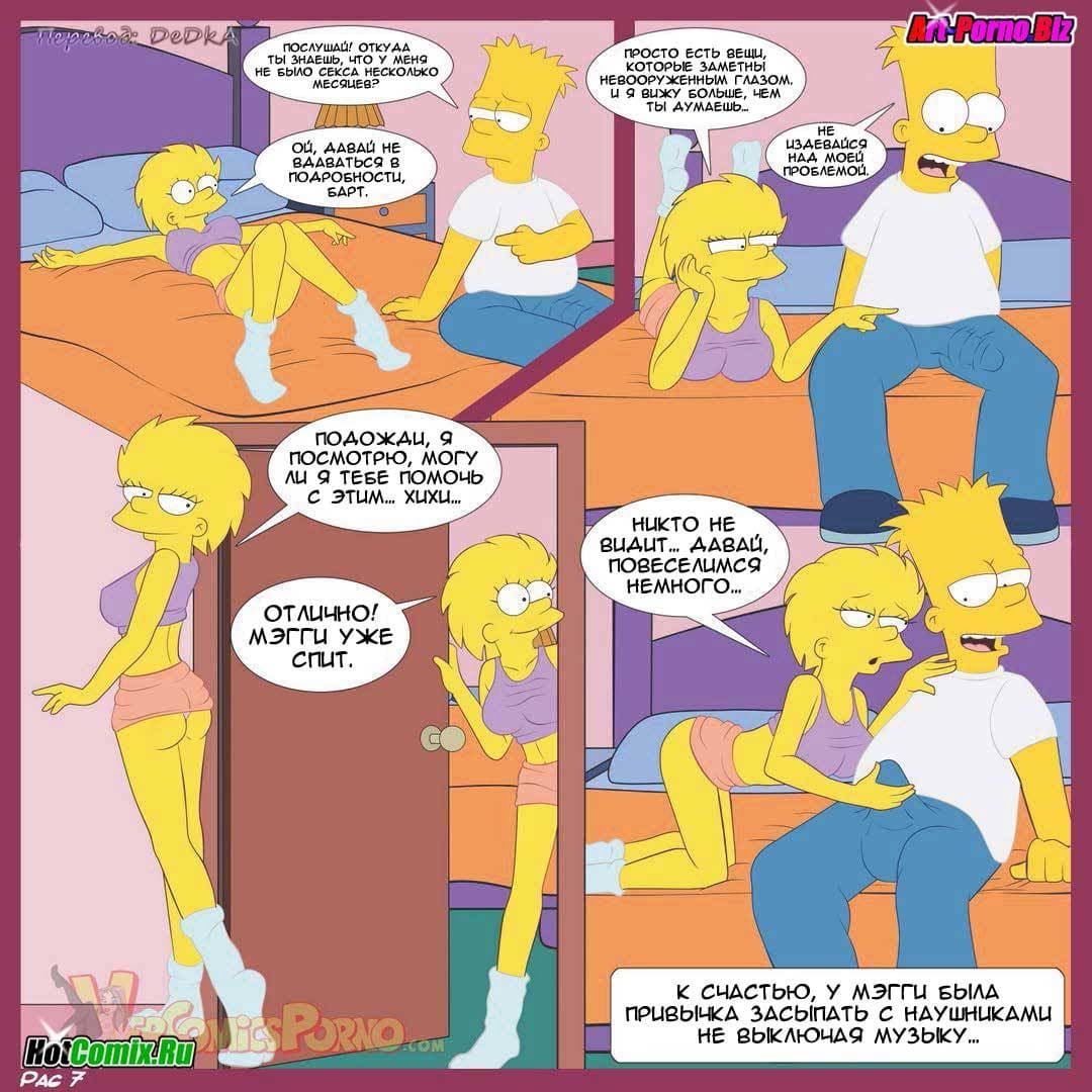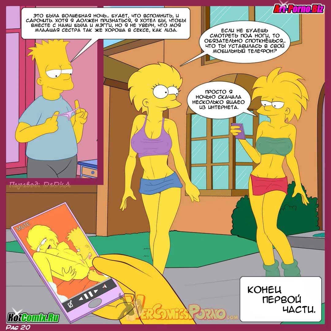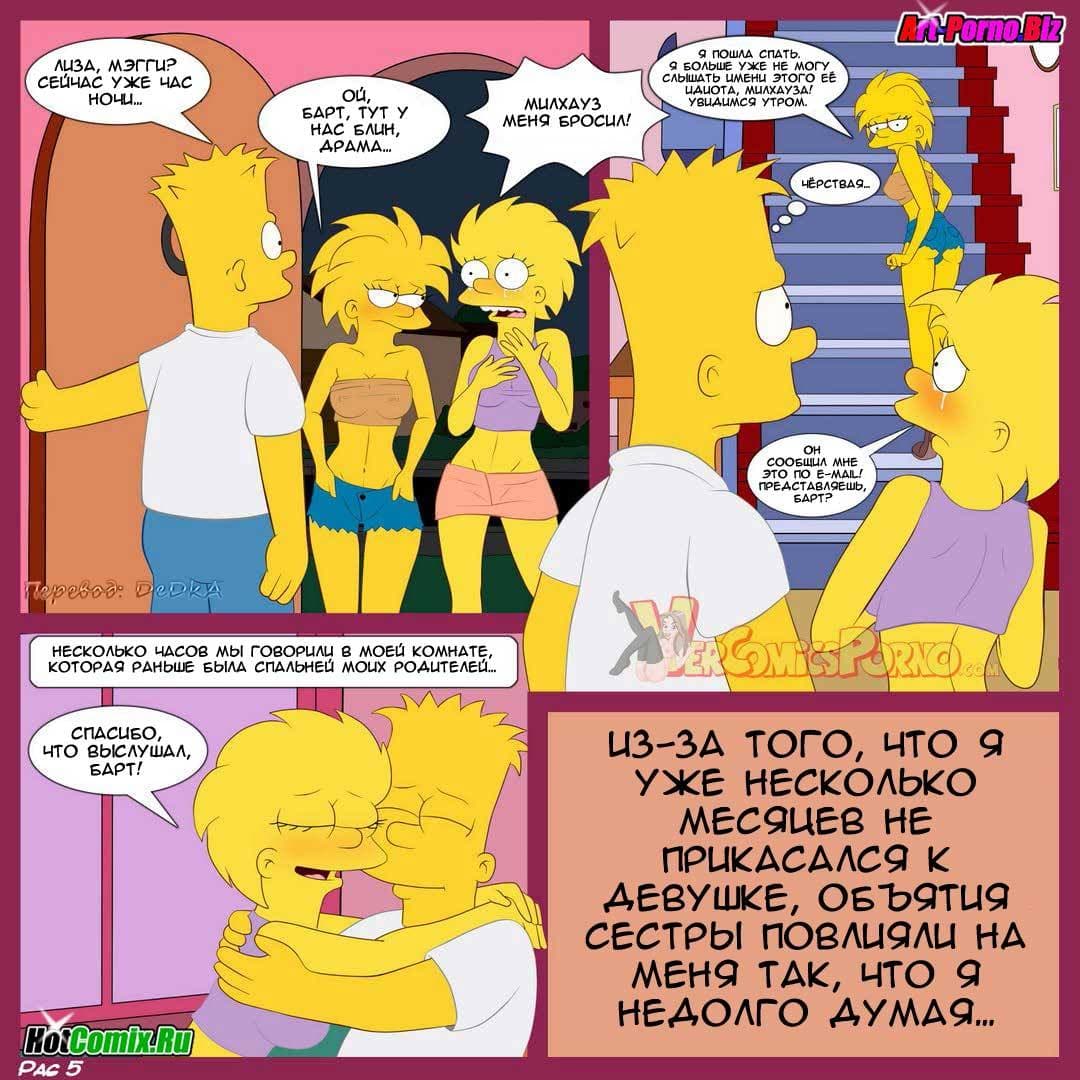В первой части данного порно комикса про Симпсонов вы узнаете, как сложилась уже взрослая жизнь героев известных на весь мир. Так вышло, что Мардж и Гомер больше не жили вместе, потому что развелись. У них уже были новые семьи. Барт жил с сестрами, потому что у него не было работы и ему нечем было платить за жилье. Как–то, в один день домой пришла расстроенная Лиза. Ее бросил Милхауз и теперь она хотела утешения. Барт, как истинный мужчина решил успокоить сестру, правда по-своему, но определенно так, что это доставило удовольствие ему и Лизе…