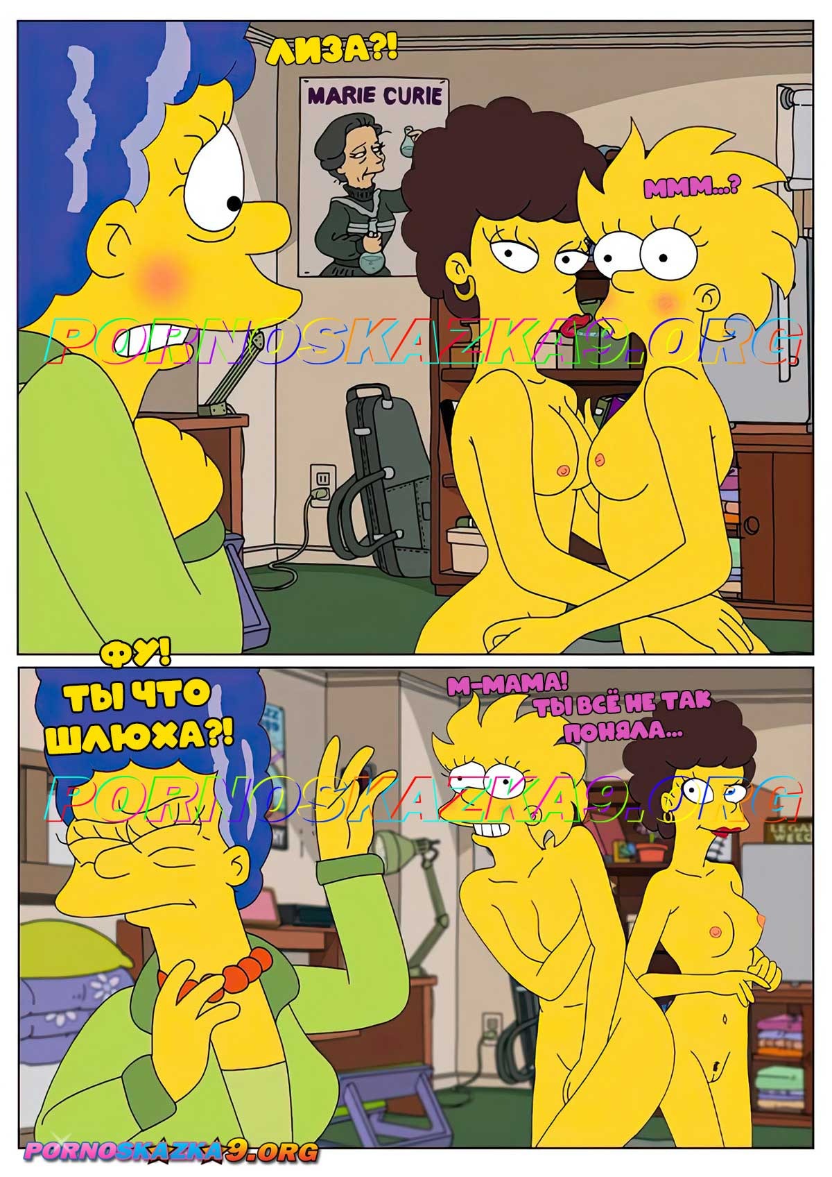 Порно комикс Симпсоны. История Лизы. Мардж, случайно увидела, чем занимается Лиза и Сильвия. От неожиданности она даже растерялась, но тут ей не дала опомниться Сильвия, которая сразу разрядила обстановку…