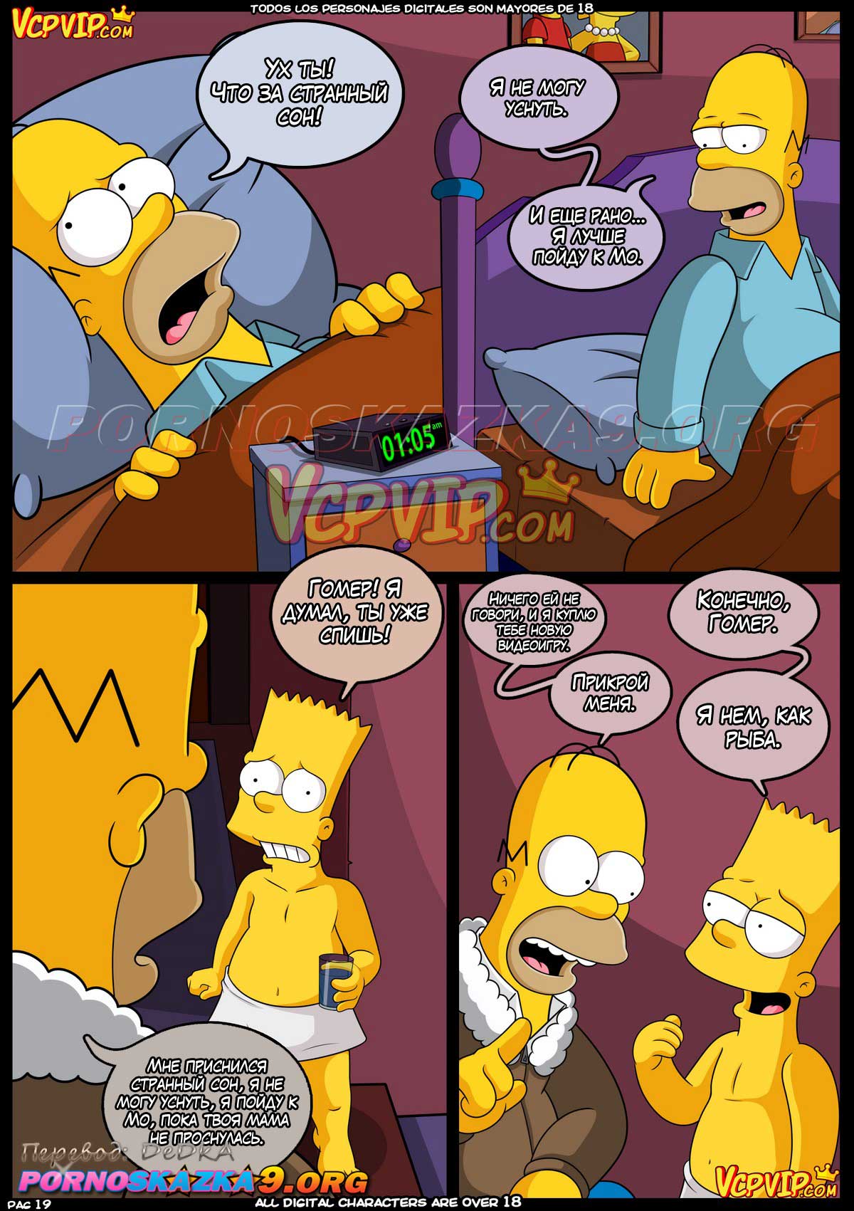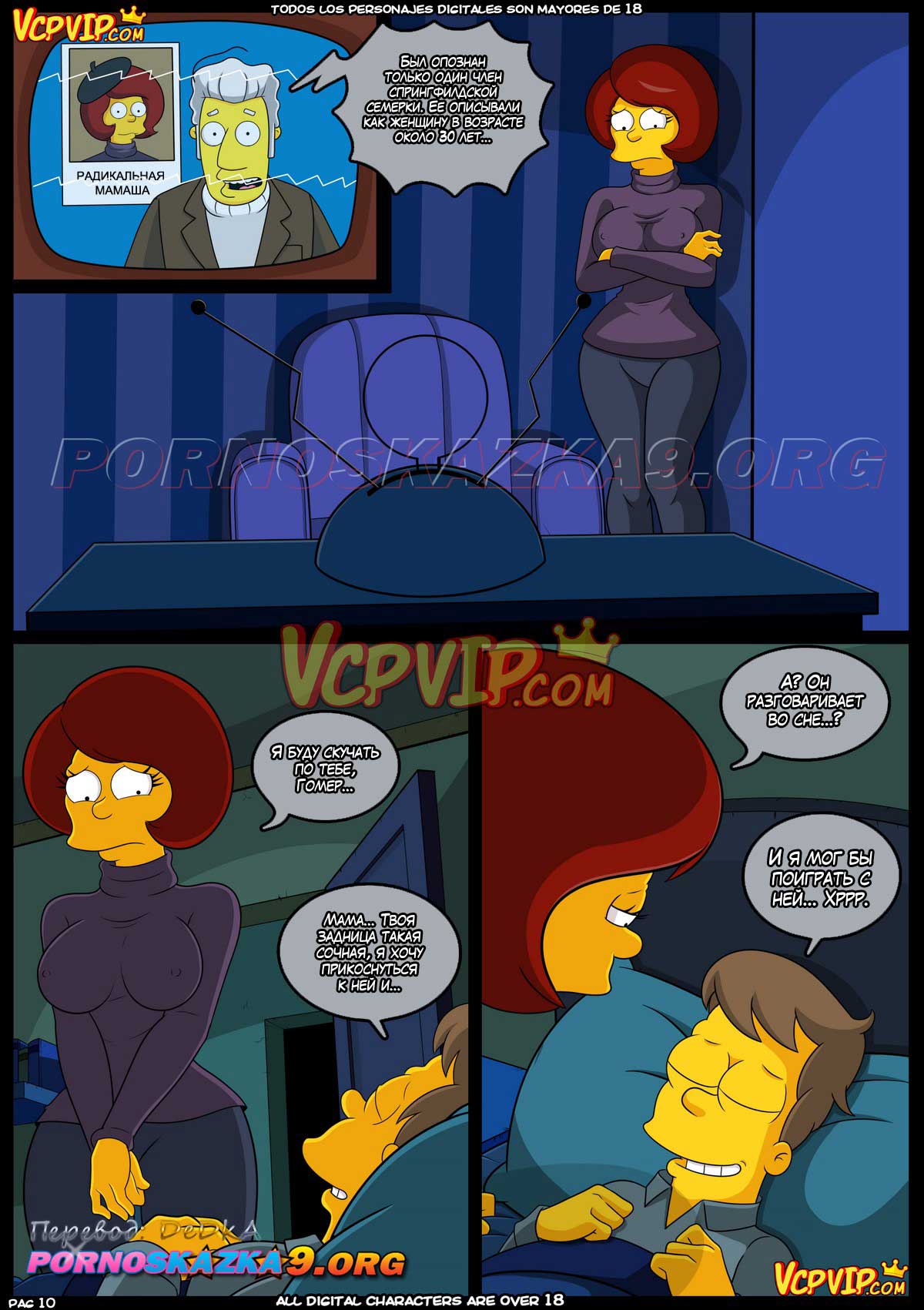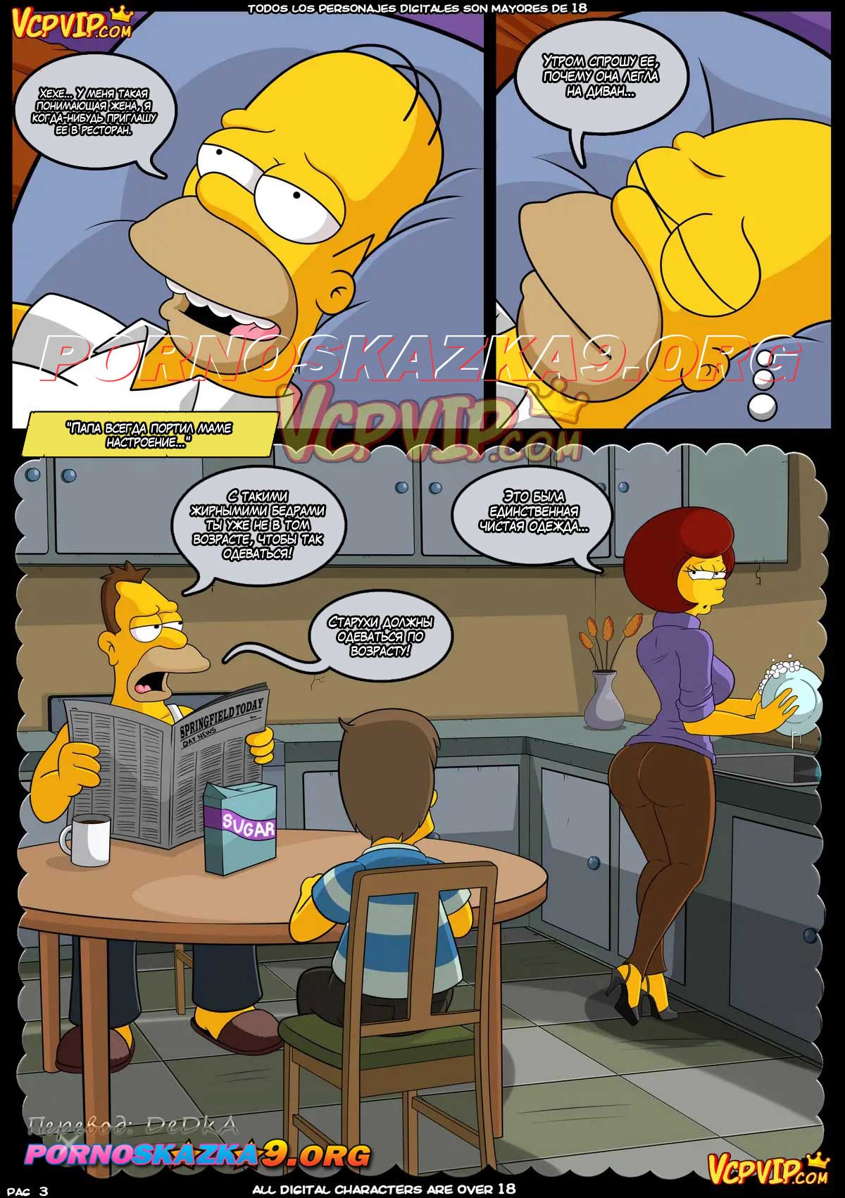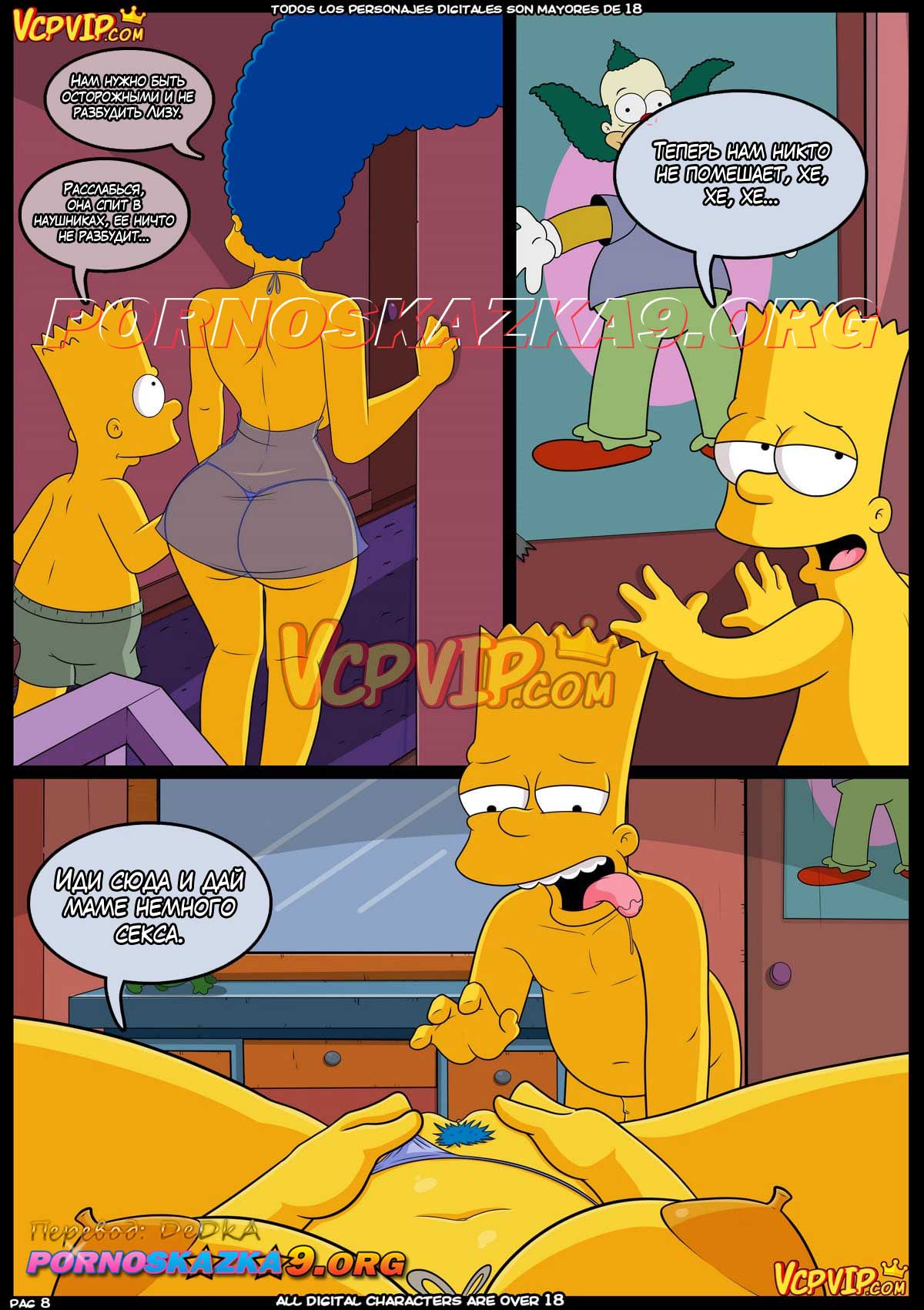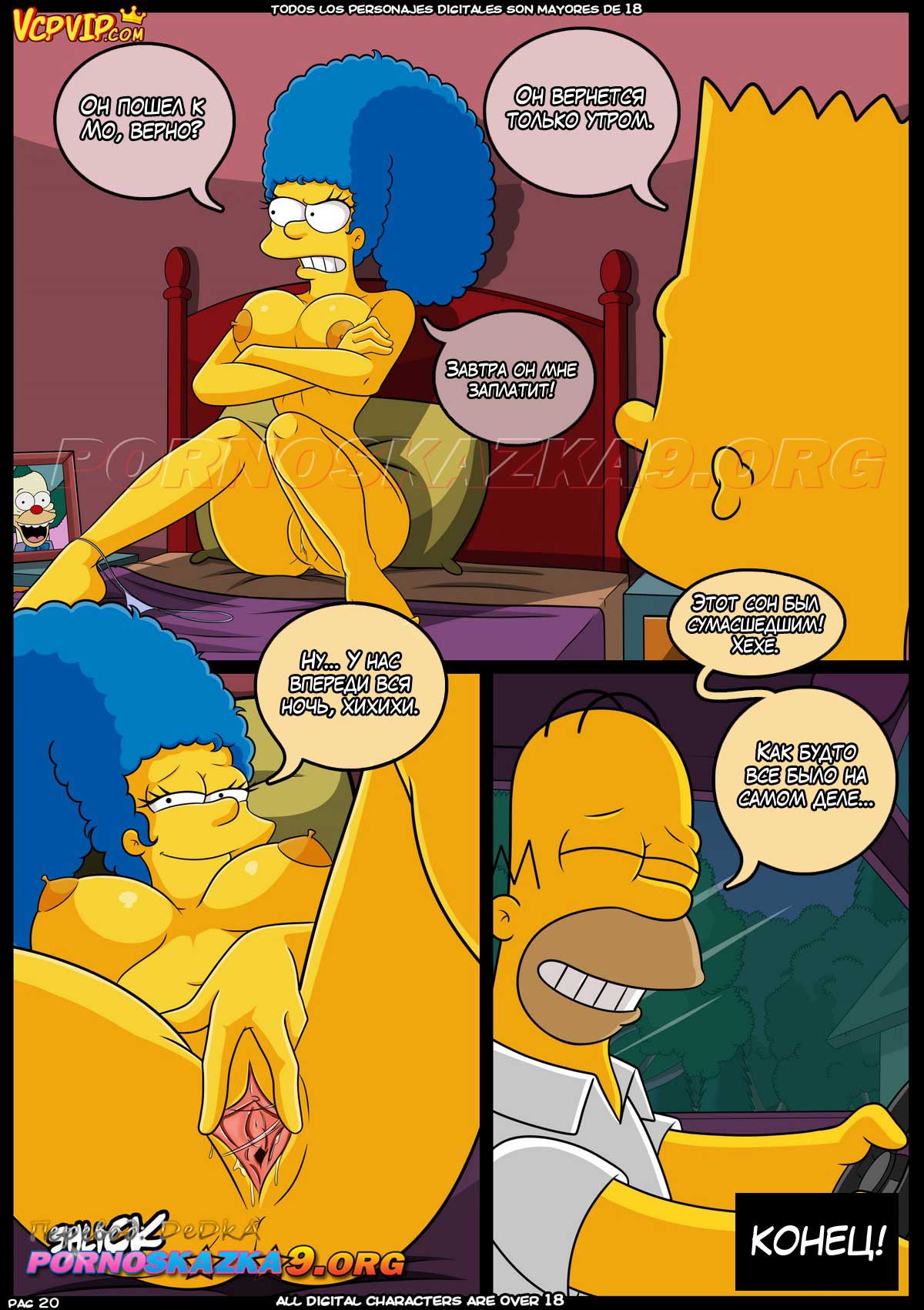 Порно комикс Симпсоны. Мама. Гомер снова под любимым предлогом того, что он крайне вымотался, уклонился от выполнения прямых супружеских обязанностей, если прямо от секса. Он подумал, что Мардж отнеслась к этому всему с большим пониманием. Гомер спокойно вырубился и ему стало сниться его босоногое детство…