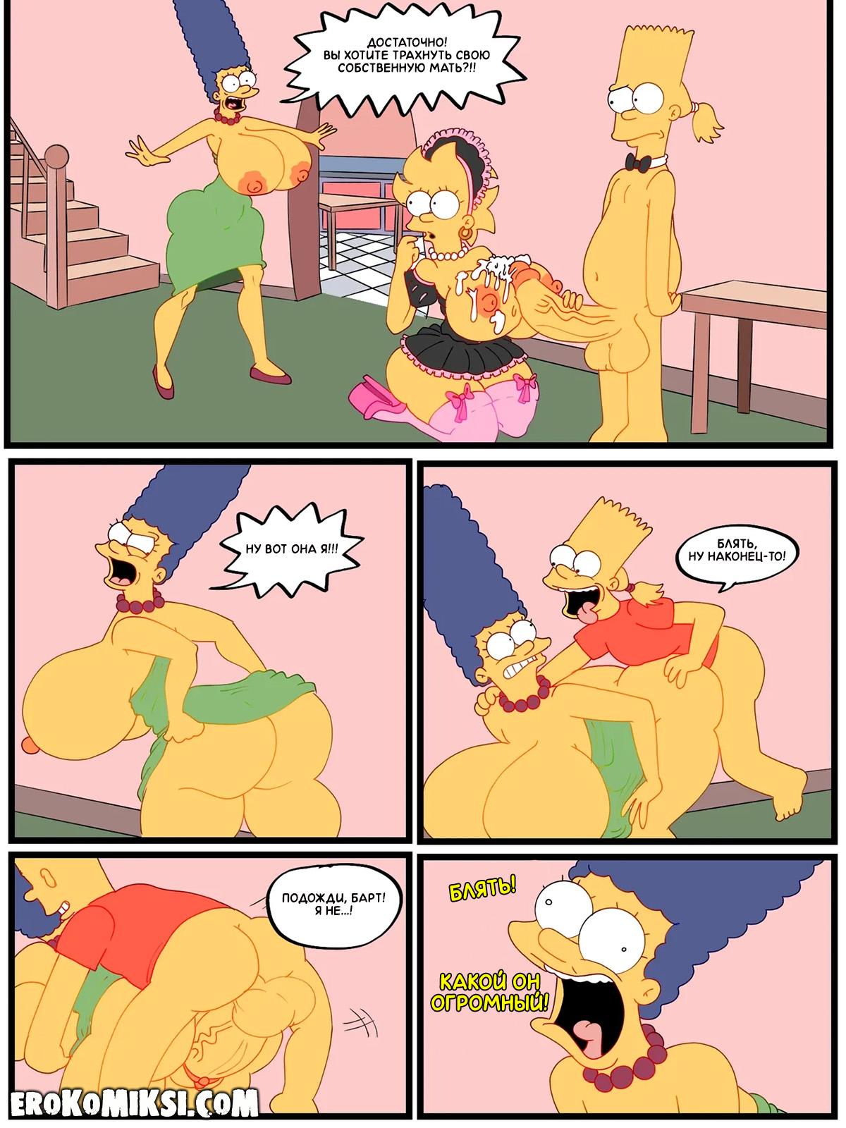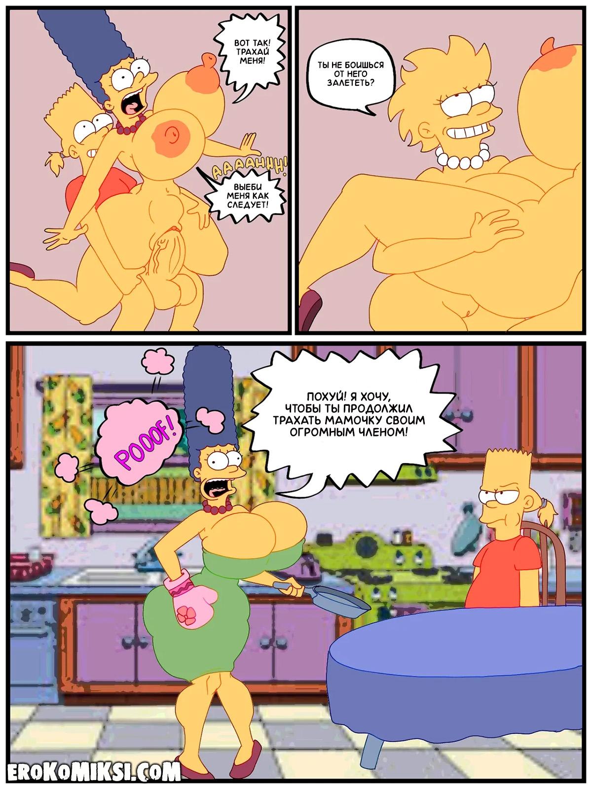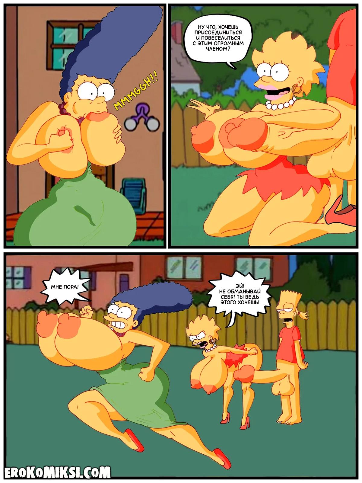 Порно комикс Симпсоны. Побег от греха. Барт и Лиза трахаются по всему дома, и пытаются соблазнить Мардж, которая пытается не поддаться искушению, но в итоге, она не выдерживает и присоединяется к своим озабоченным детям и получает огромный член Барта в свою тугую киску.