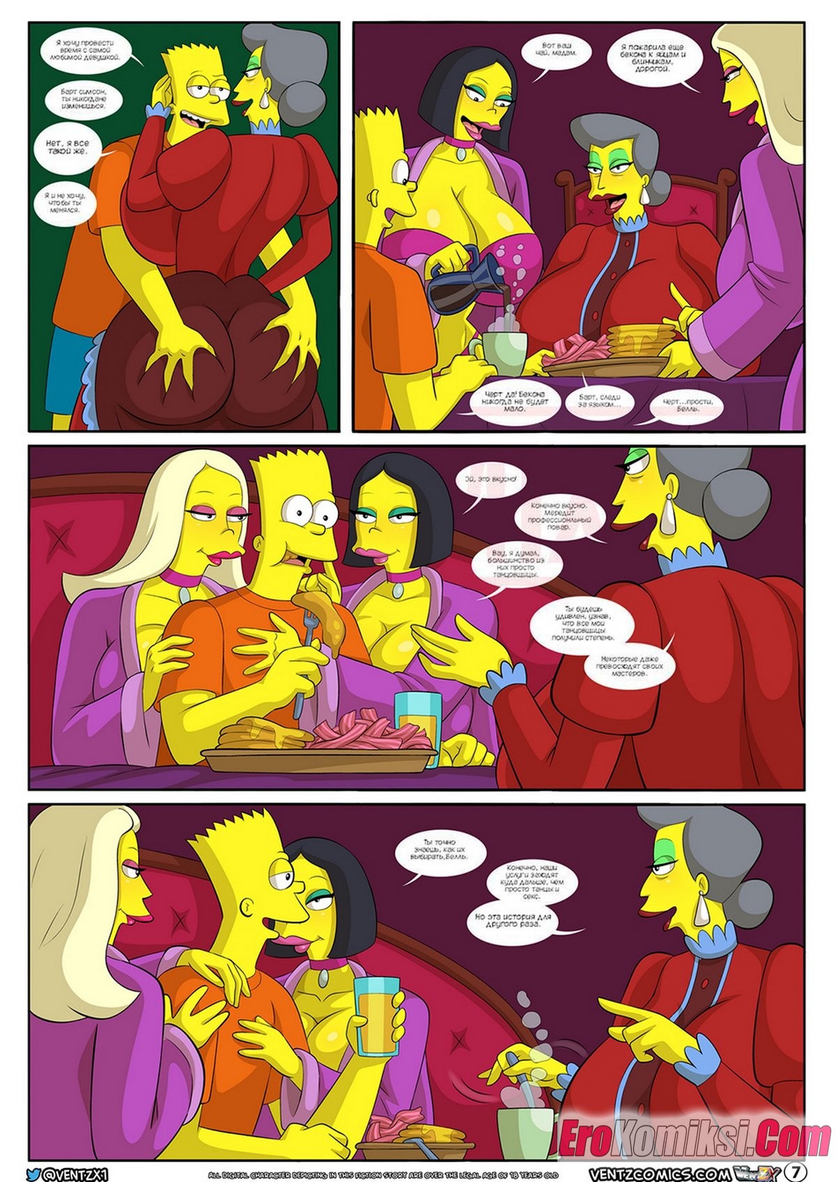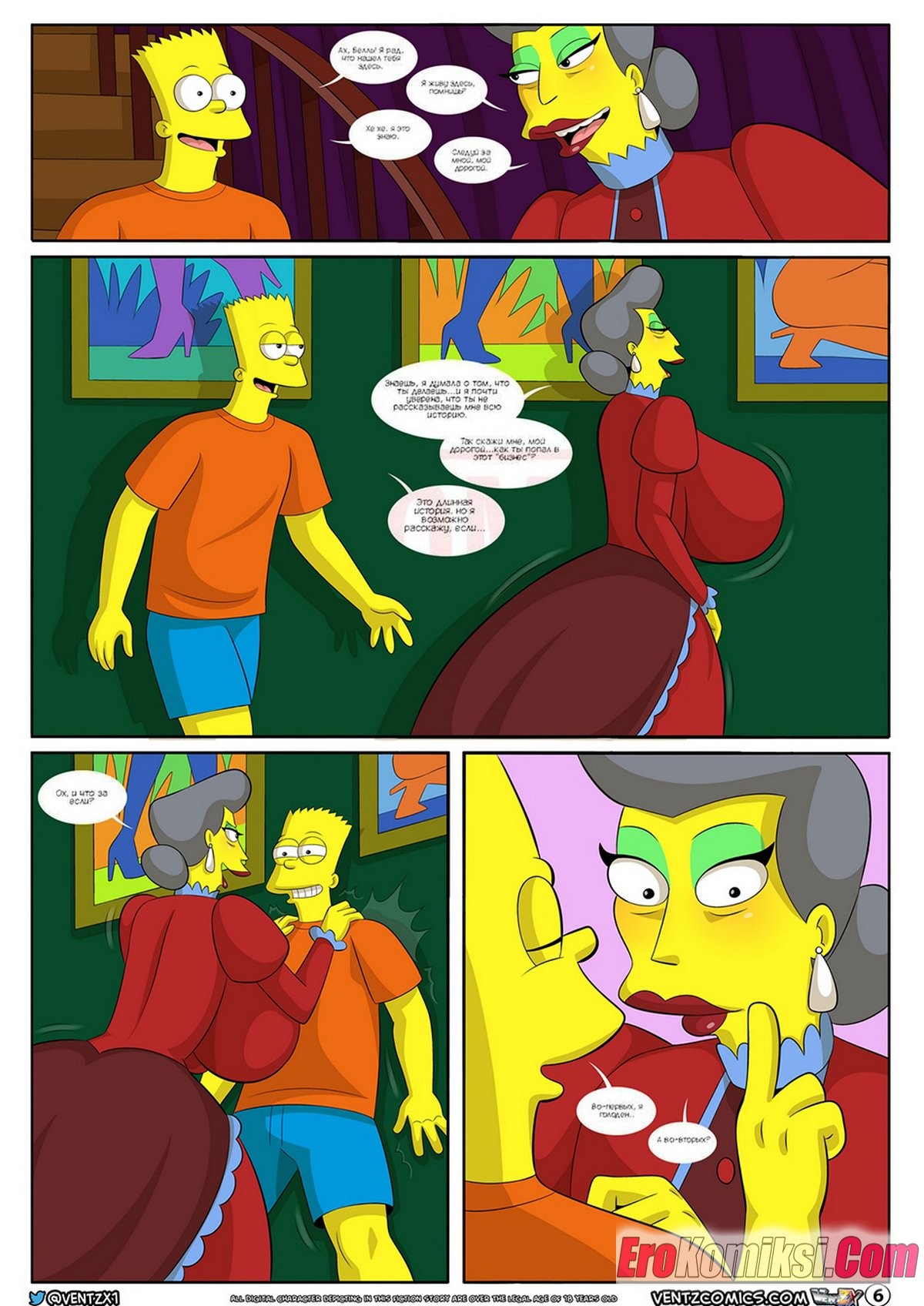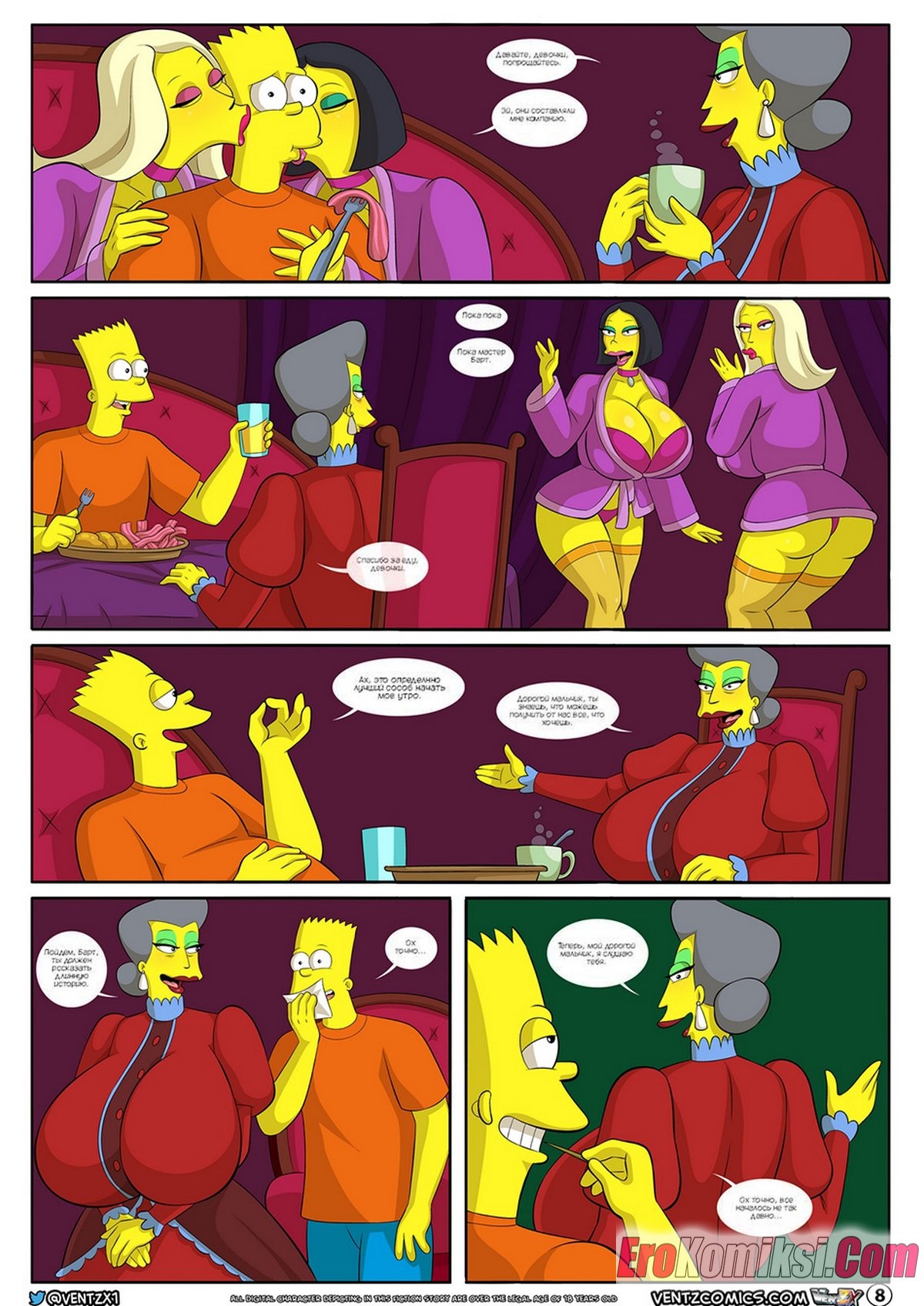 Порно комикс Приключения Даррена. Часть 13. Симпсоны. Darrens Adventure. The Simpsons. Arabatos После ебли с сисястой милфой Барт посетил душ и решил отправиться домой, но его остановила хозяйка мотеля, которая хотела узнать историю бизнеса, который сейчас ведет молодой парень.