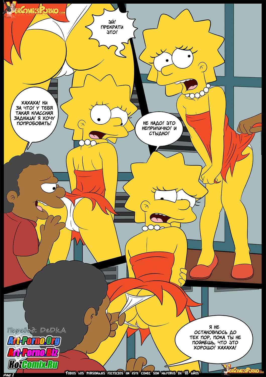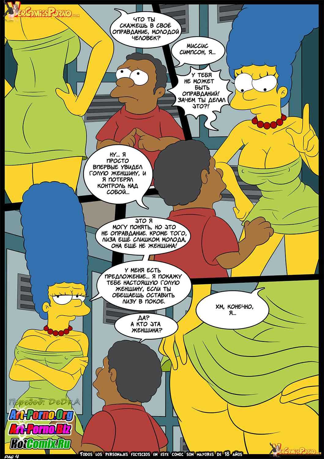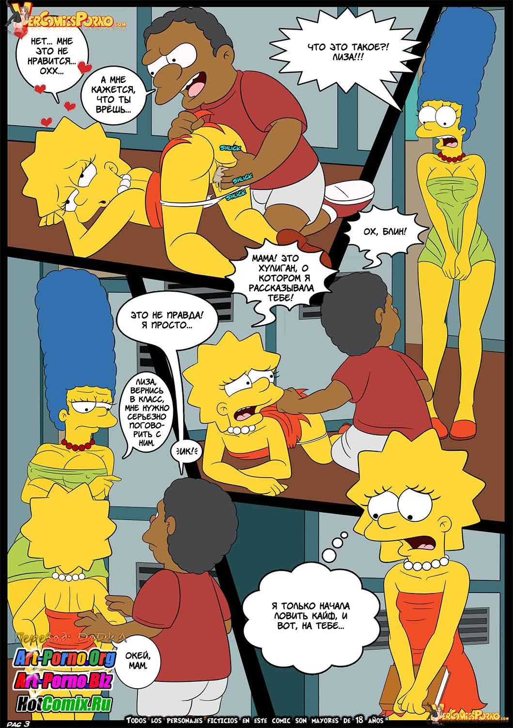 История данного развратного порно мульт комикса на русском начинается с того, что зрелая Мардж Симпсон случайно увидела, как к ее умной дочке Лизе полез под юбку какой-то чернокожий хулиган. Это обстоятельство вызвало бурную реакцию у взрослой женщины. И Мардж, велев уйти Лизе, решила переговорить с парнем, чей стоячий член большого размера вызвал непреодолимое желание секса у примерной замужней леди. Самое интересное только начиналось…