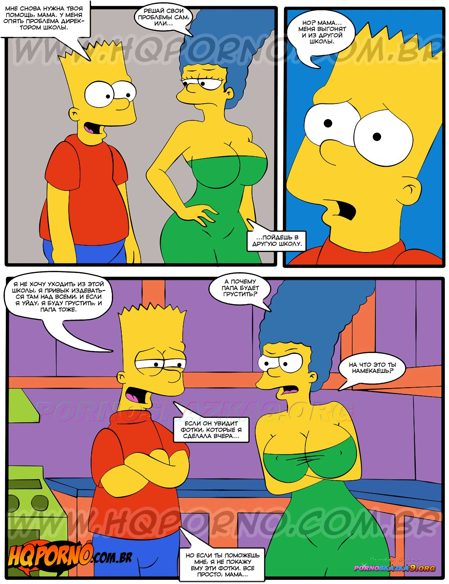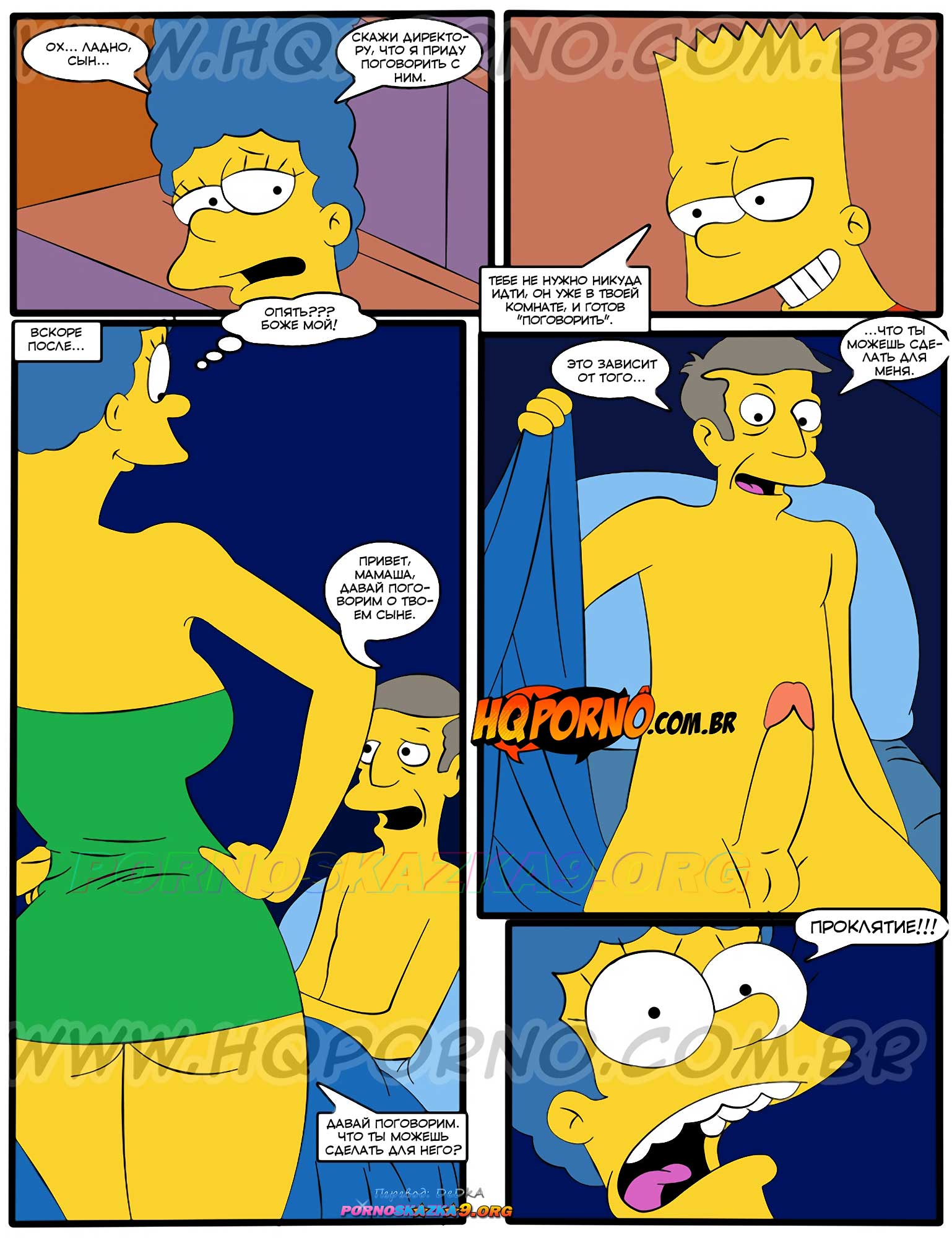 Порно комикс Симпсоны: Симпсексы. Часть 14: Наглый шантаж. Os Simpsexys. HQPorno У Барта возникли проблемы в школе и он обратился за помощью к маме, чтобы она пообщалась с директором. Сучка уединилась с директором в спальне и дала ему себя выебать в обмен на то, чтобы он не исключал Барта из школы…