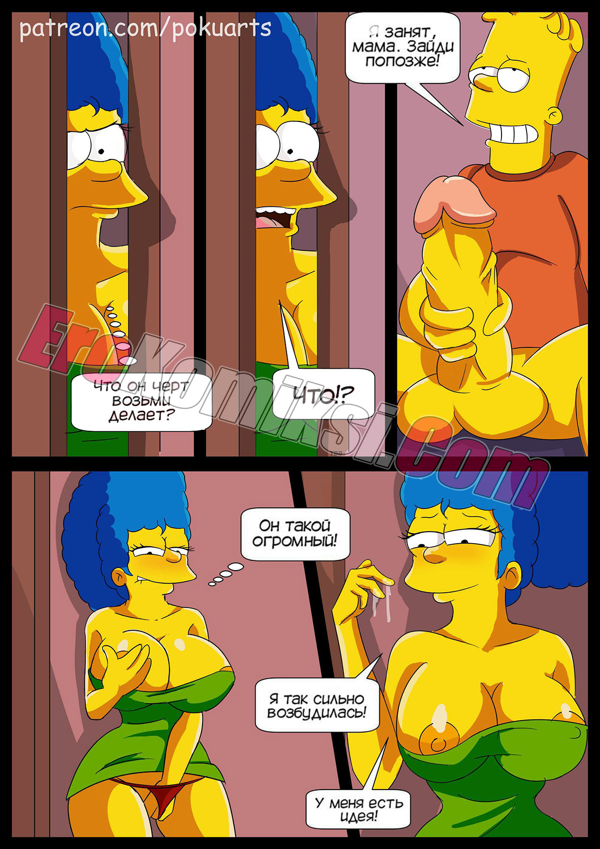 Порно комикс Симпсоны: У моего сын огромен. The Simpsonss My Son is Huge. Pokuarts Пока мужа не было дома, милфа застукала своего сына за дрочкой и была поражена его большим размером члена. Она решила надеть свое сексуальное белье и присоединилась к нему. Сучка отсосала огромный хуй парня, а затем дала ему себя хорошенько выебать.