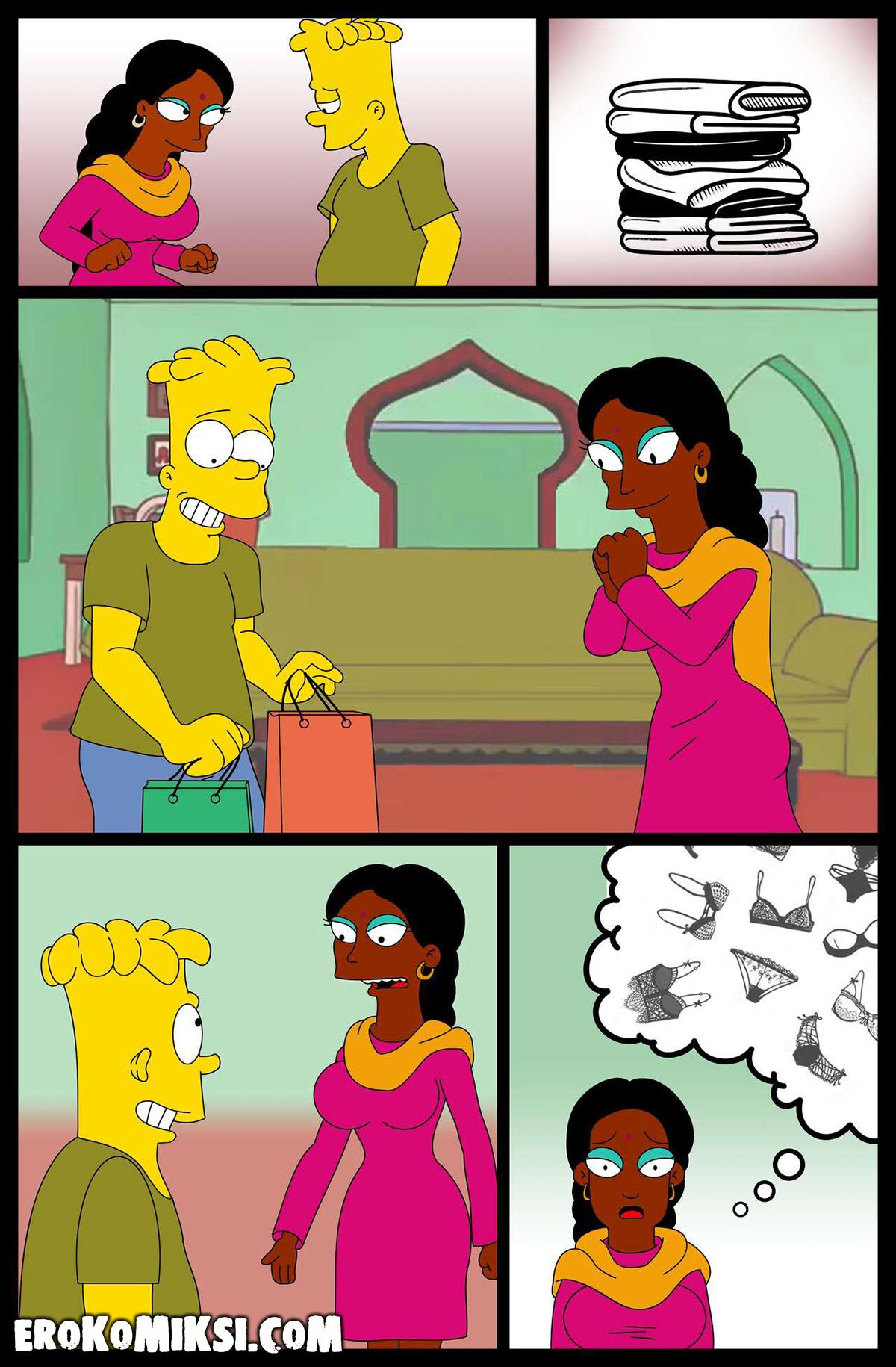 Порно комикс Симпсоны. Услуга Манджуле. Барт отправился в магазин у Апу и увидел, как тот ссорится со своей женой, Манджулой, которая хотела поменять свой стиль в одежде, но Апу был против. Барт решил предложить свою помощь в выборе одежды и Апу доверился пацану. После походов по магазинам, Манджула привела Барта к себе домой и начала примерять обновки. Увидев откровенные наряды сисястой красотке, Барт возбудился и Манджула это заметила, но вместо того, чтобы прогонять извращенца, она позволила Барту хорошенько себя оттрахать…