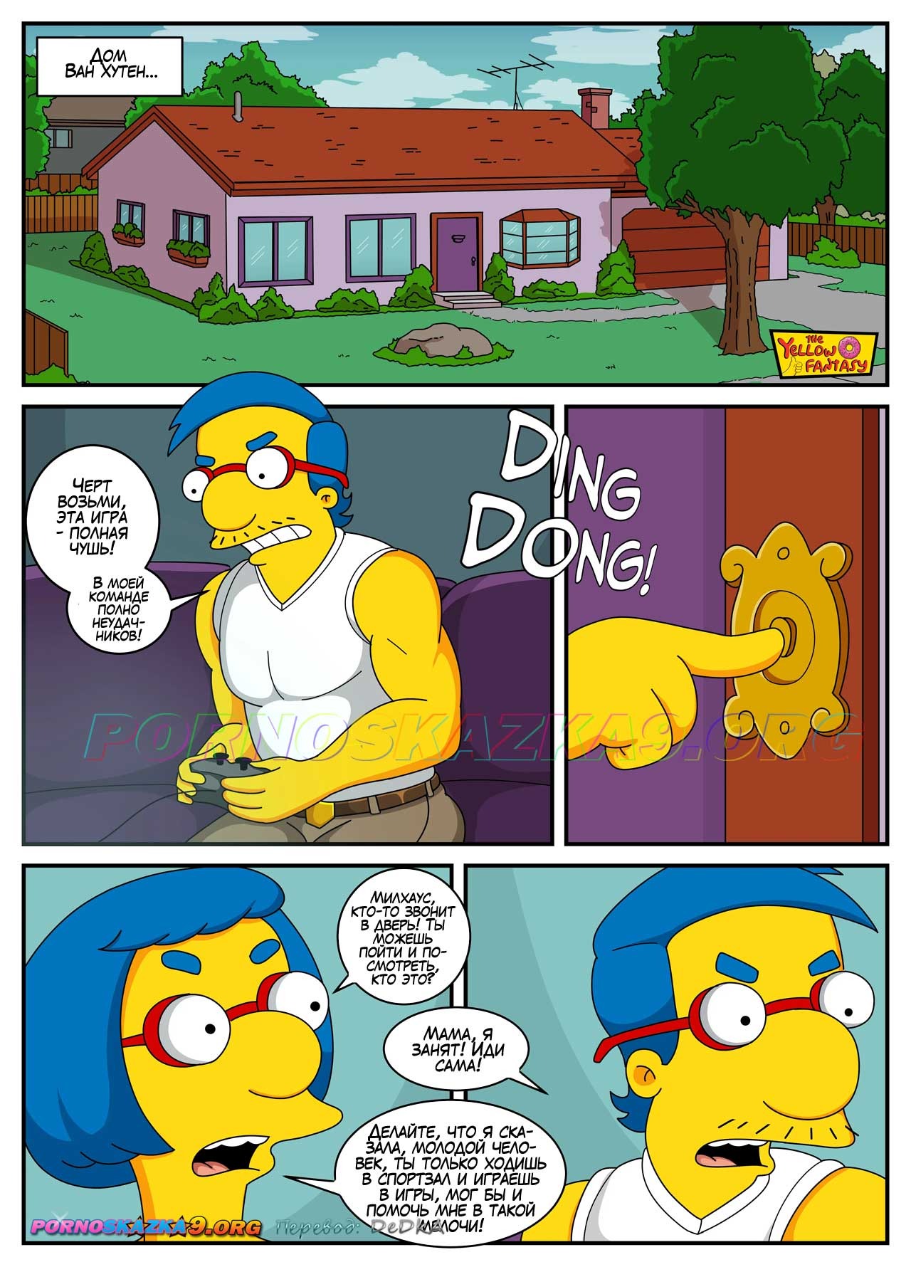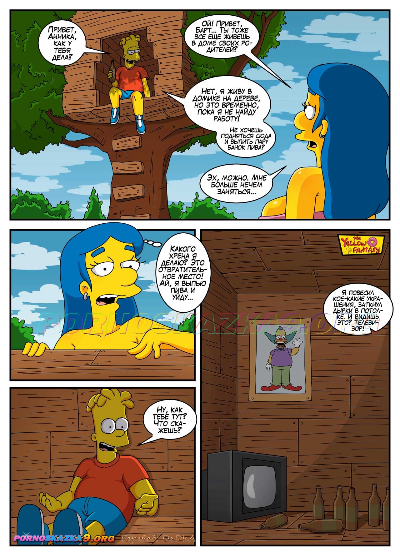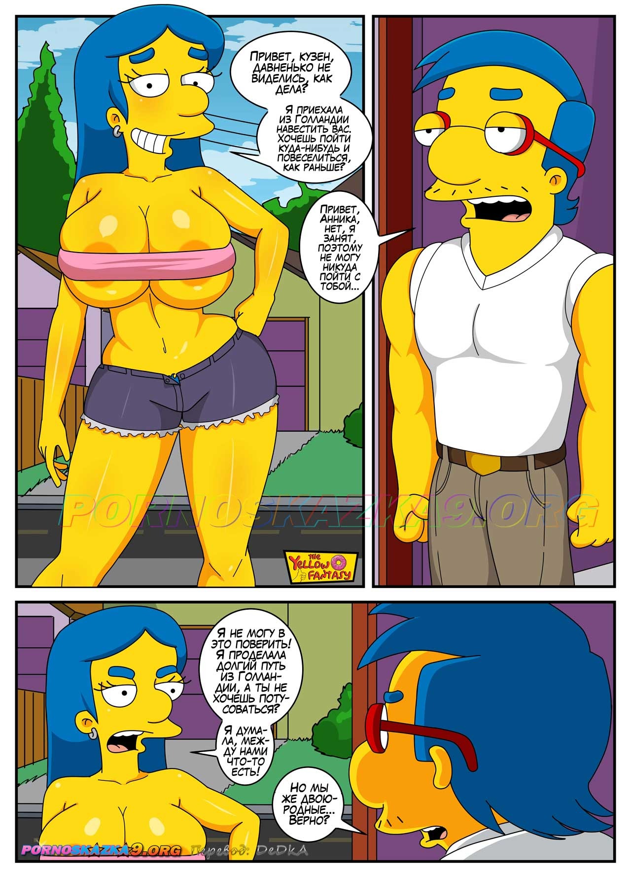 Порно комикс Симпсоны. Желтая Фантазия: Анника Ван Хутен. Annika Van Houten К Милхаусу приехала кузина и предложила потрахаться, но парень ей отказал. В итоге Барт пригласил девушку к себе в домик на дереве, где весь день трахал сисястую сучку своим большим членом…