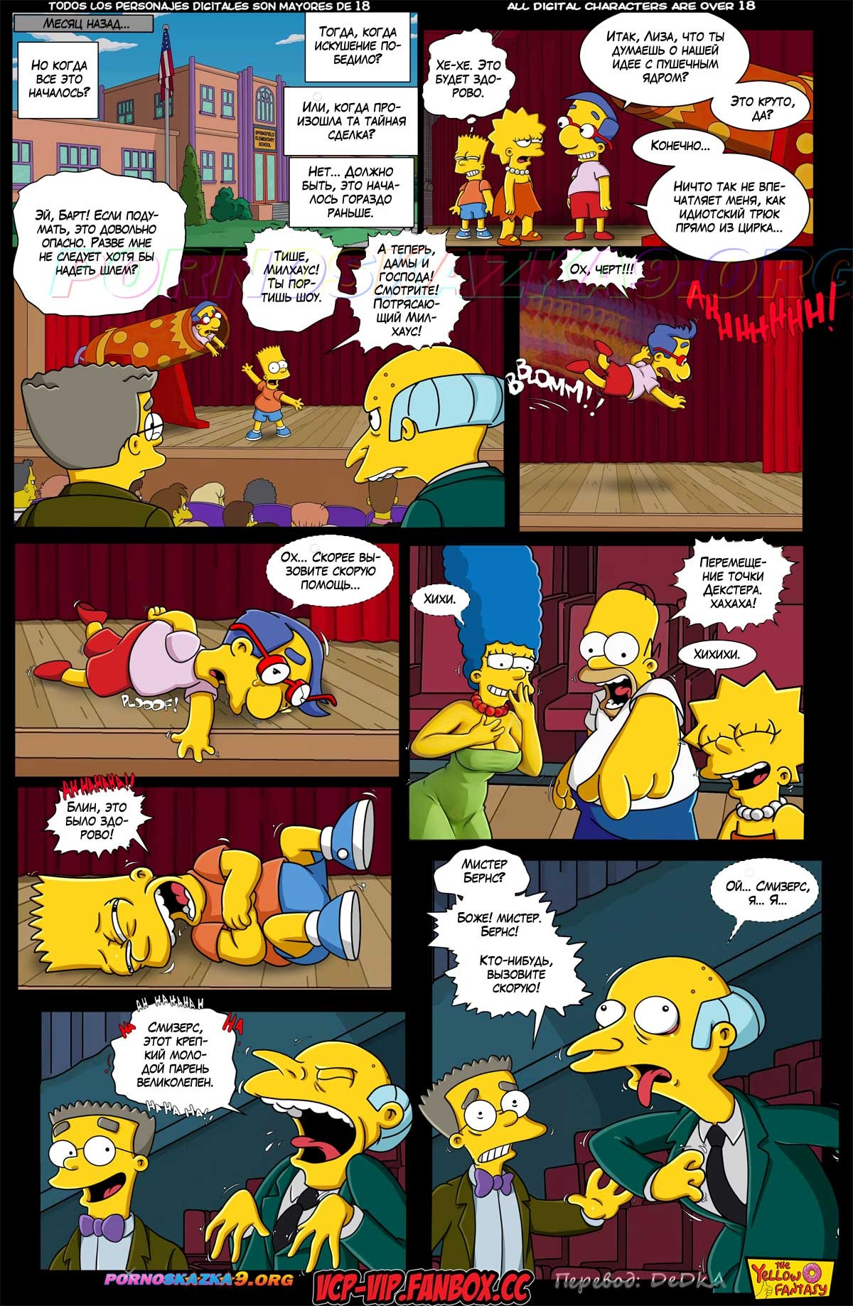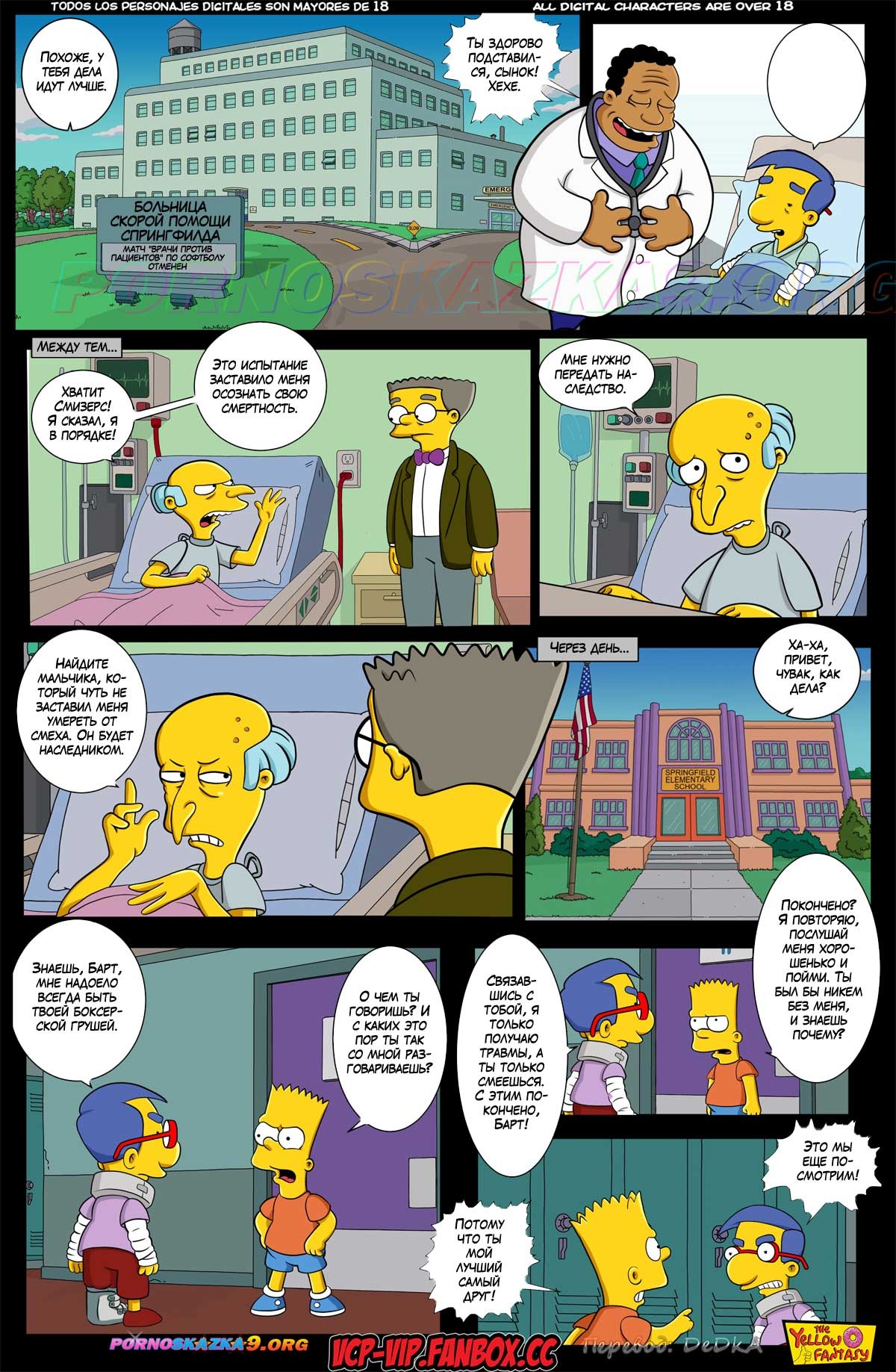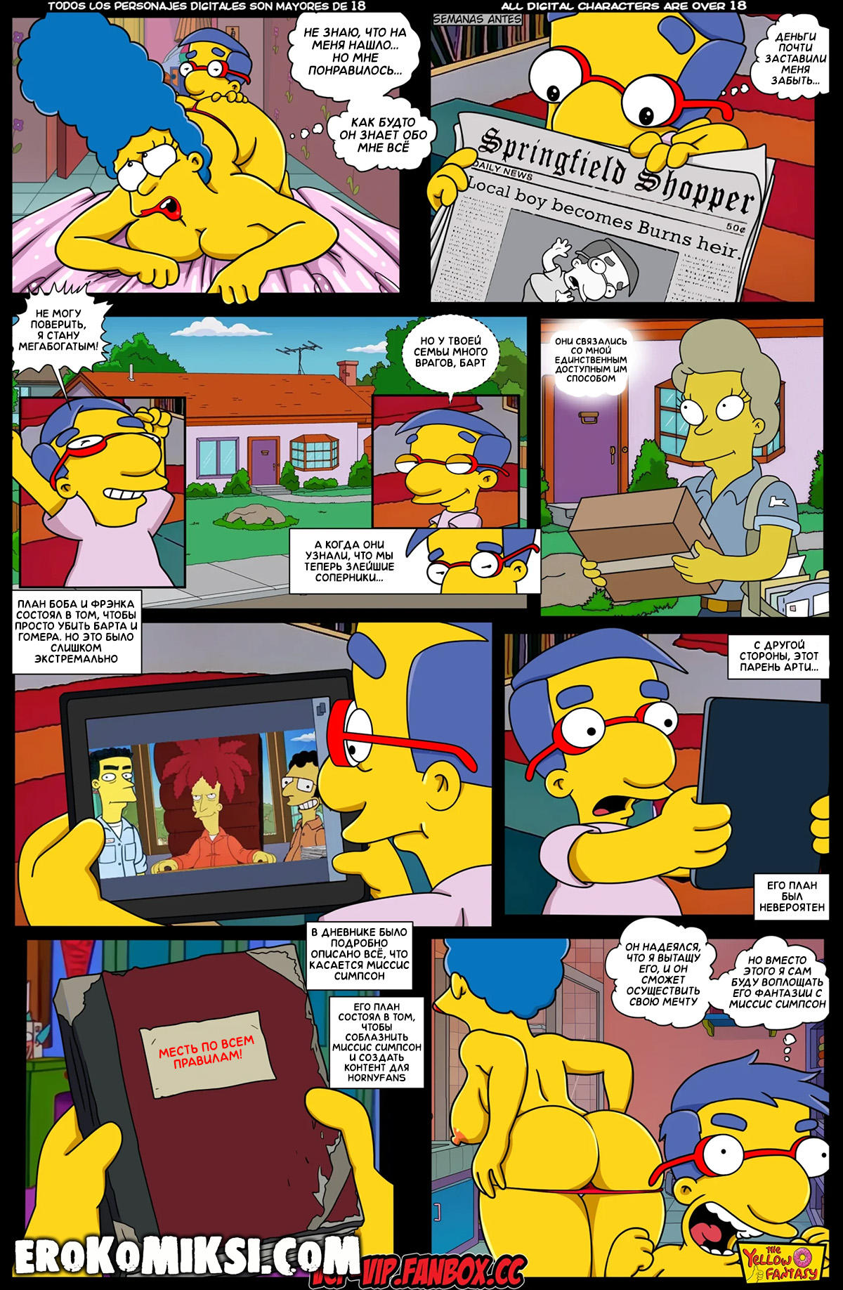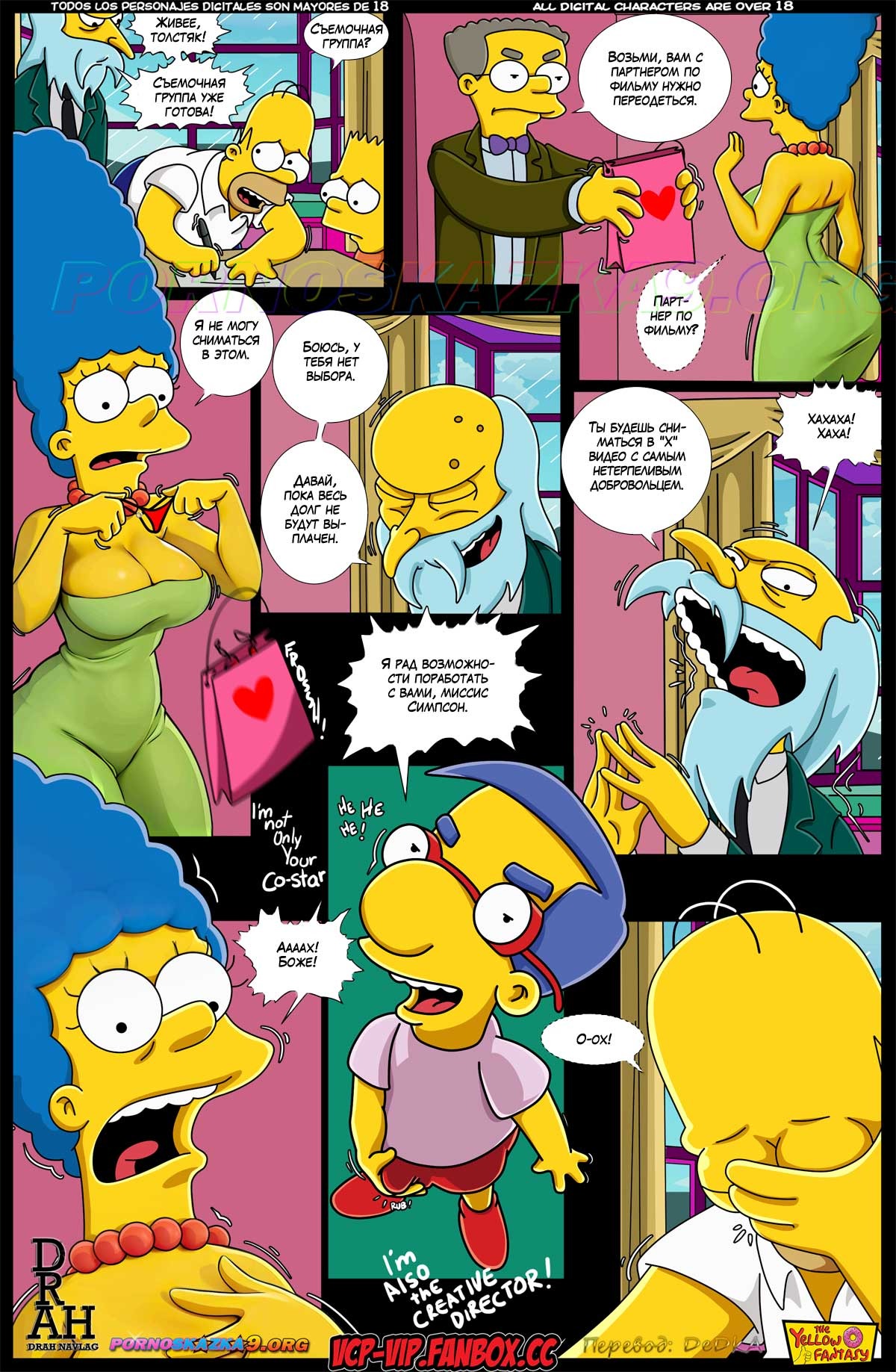Порно комикс Симпсоны. Желтая фантазия. Дома и стены помогают. Милхаус обнаружил документы, подтверждающие тайный карточный долг Мардж казино Монти Бернса. В обмен на «особое» вознаграждение он передает документы мистеру Бернсу, который в ярости прибывает в дом Симпсонов…