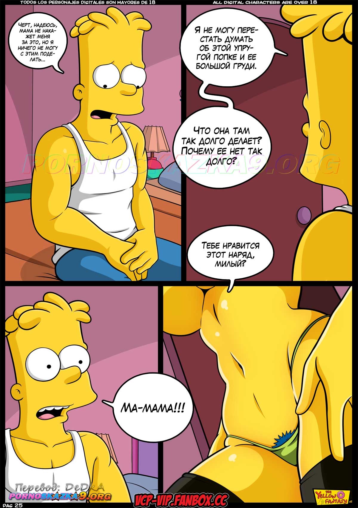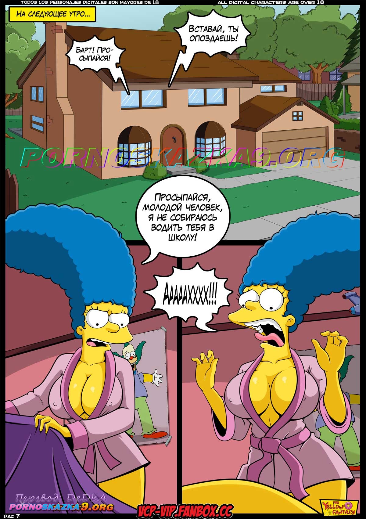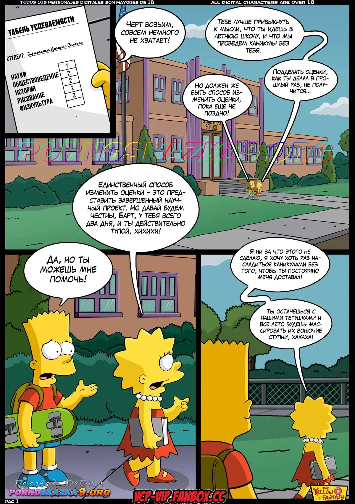 Порно комикс Симпсоны. Желтая фантазия. От десяти до двадцати с чем-то… Барт закончил учебный год с плохими оценками, и вместо каникул должен все лето ходить на дополнительные занятия. У него есть только один шанс избежать такой участи, и Барт отчаянно пытается воспользоваться им…