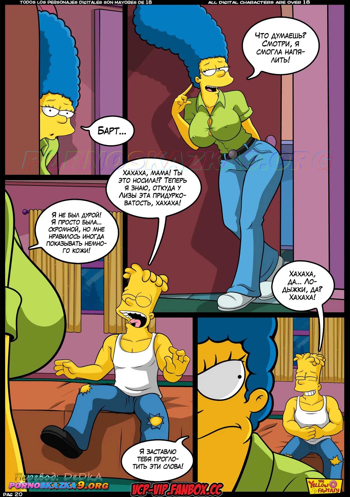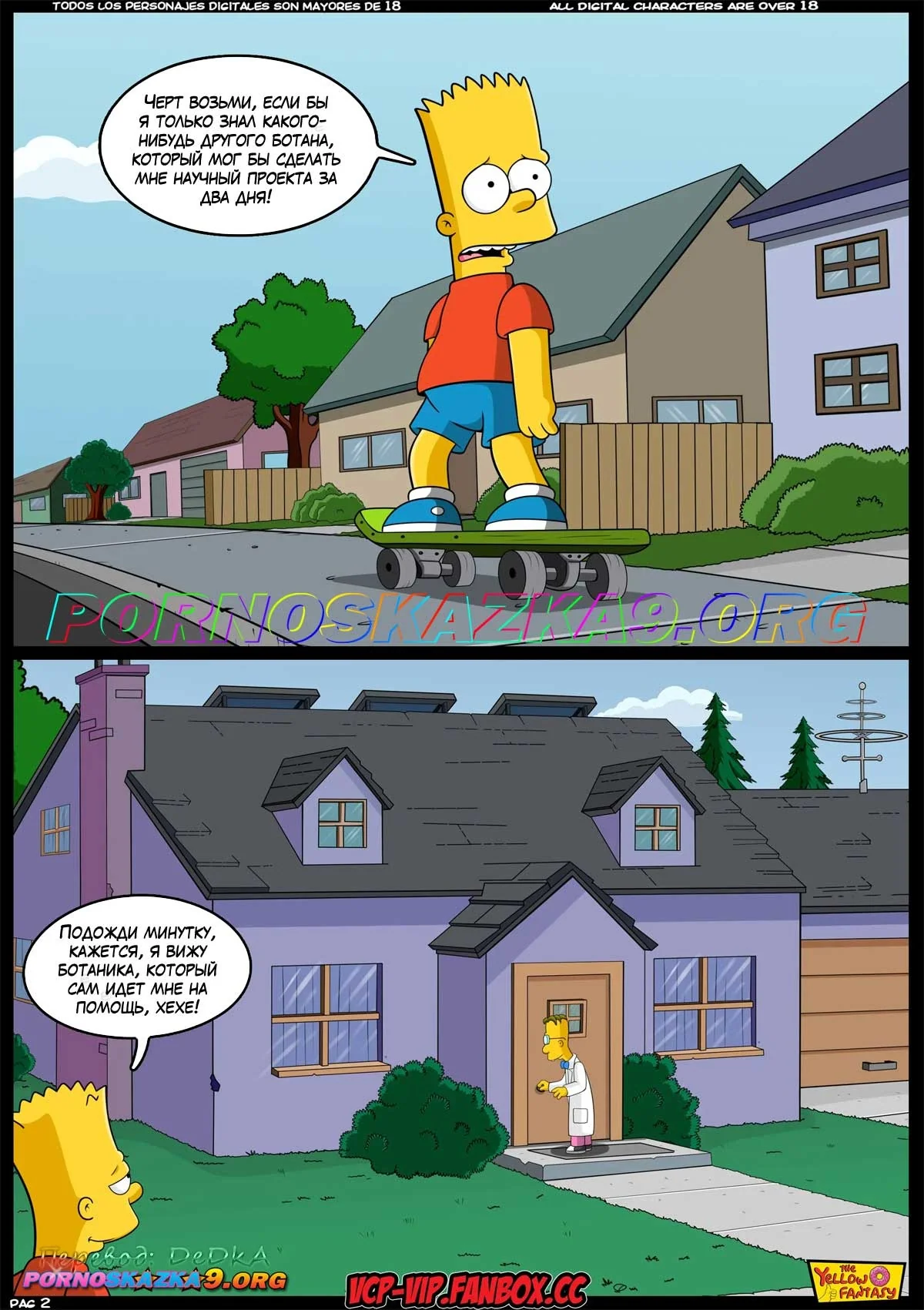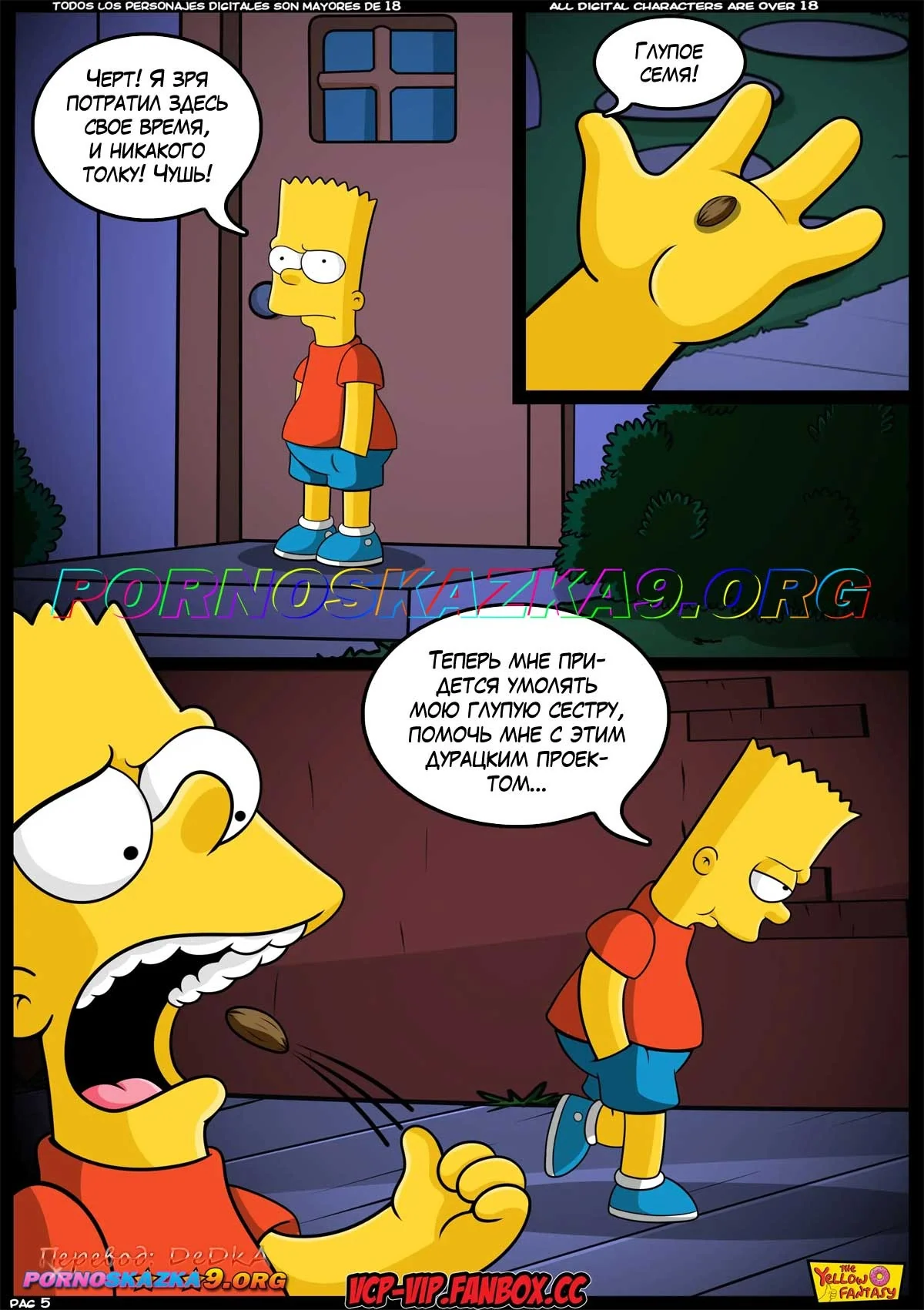 Порно комикс Симпсоны. Желтая фантазия. От десяти до двадцати с чем-то… Барт закончил учебный год с плохими оценками, и вместо каникул должен все лето ходить на дополнительные занятия. У него есть только один шанс избежать такой участи, и Барт отчаянно пытается воспользоваться им…
