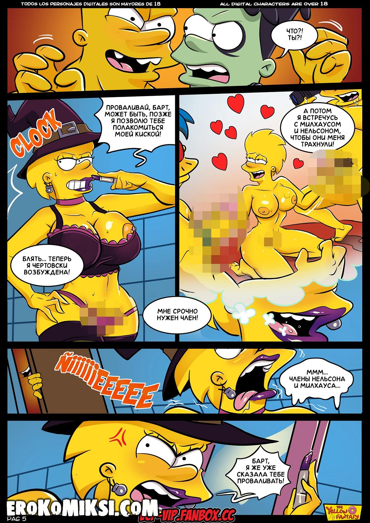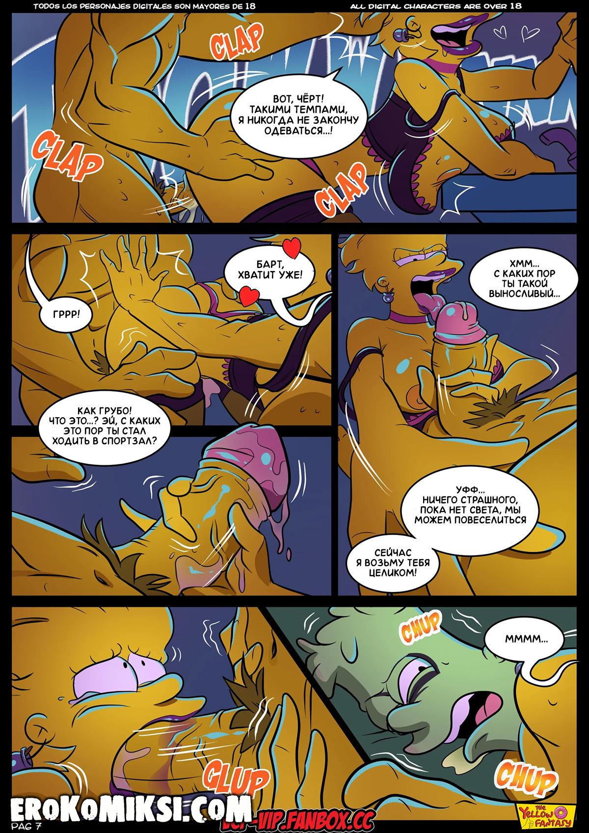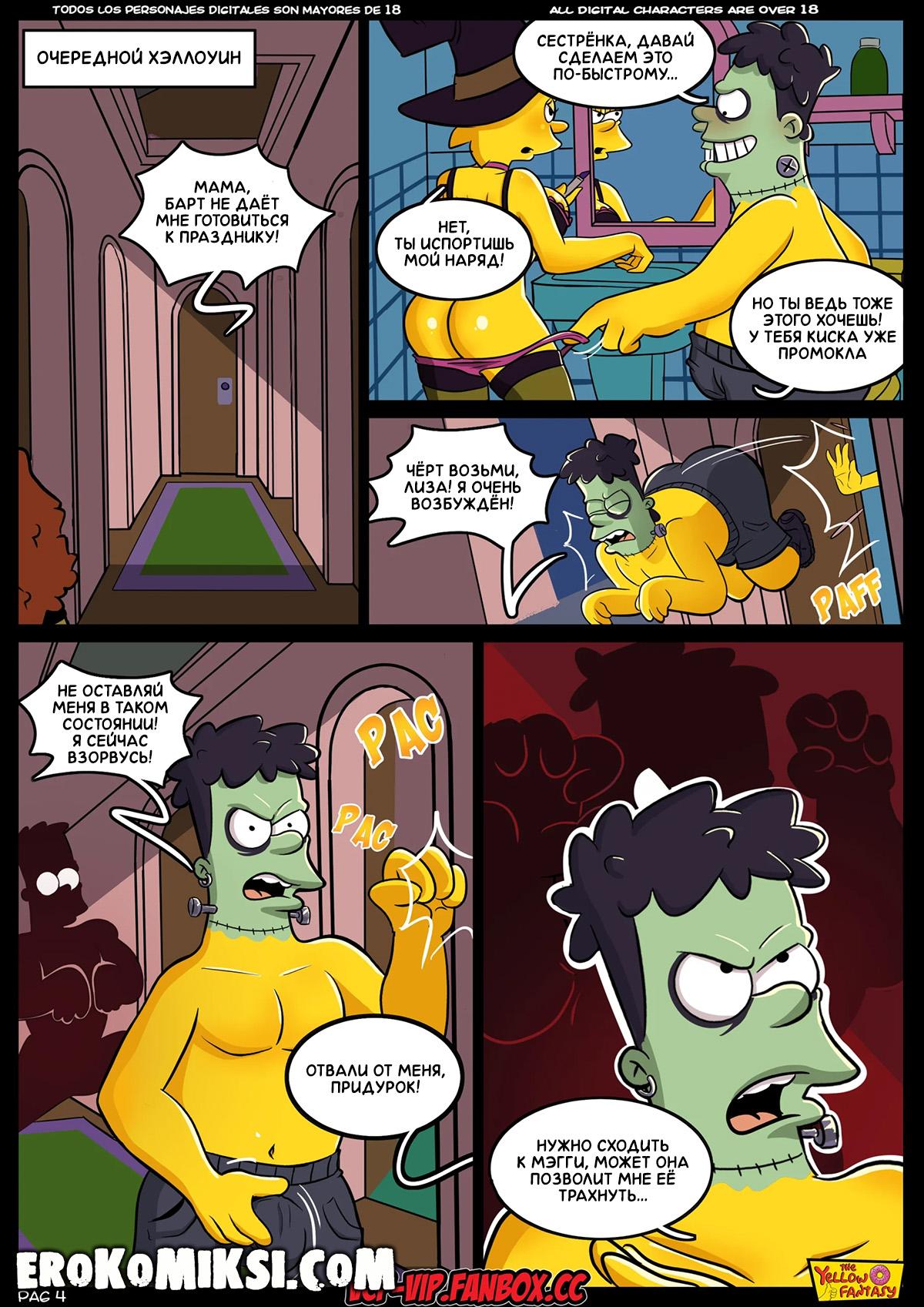 Порно комикс Симпсоны. Желтая Фантазия. Шлюший дом на ужасов на Дереве. Мардж проснулась от того, что Барт не смог уснуть и тыкал в неё членом, но она была этому рада, ведь не против получить горячую порцию спермы. Как оказалось, Барта захватила демоническая сила…