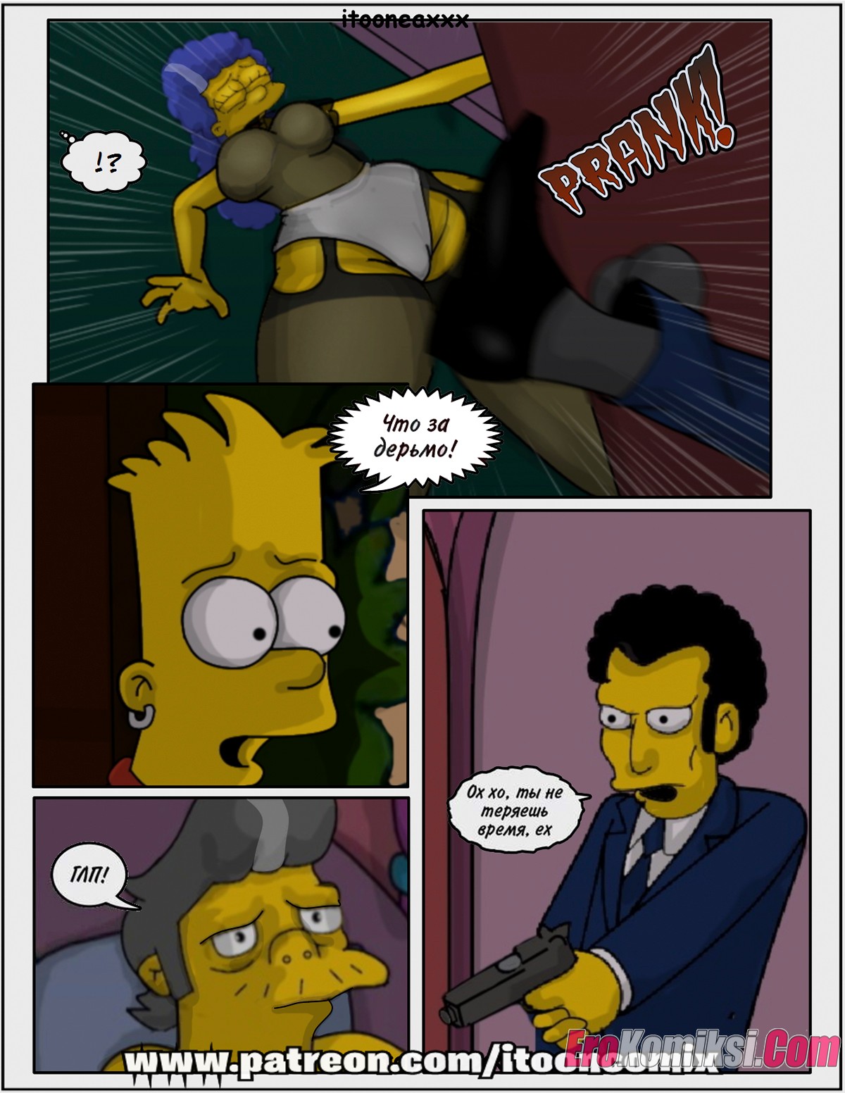 Порно комикс Симпсоны. Змея — Снейк. Часть 3. Simpsons. Snake. IToonEAXXX Барт заметил, что к его горячей мамке ночью пришел друг его отца, которого нет дома. Он стал подглядывать за мамкой и ее ебырем, наслаждаясь тем, как милфа отсасывает большой хуй мужика и дает ему себя выебать в пизду и задницу.