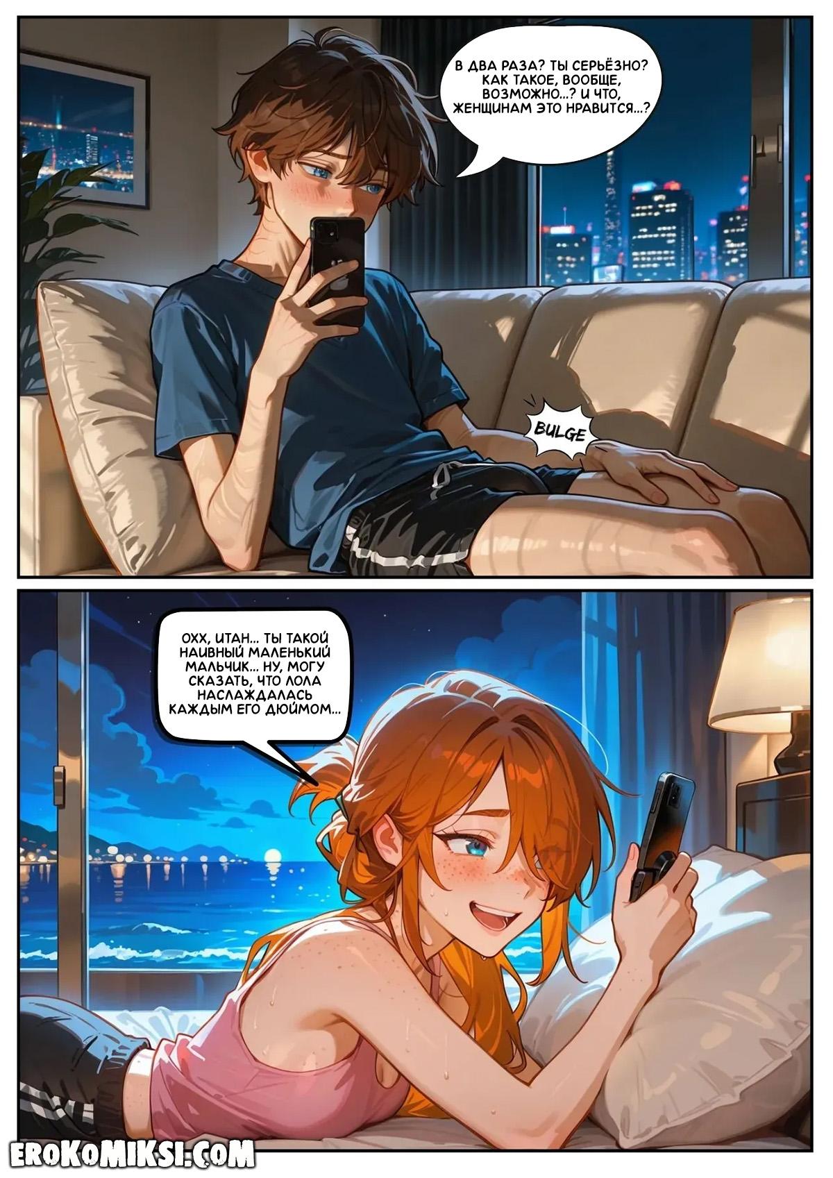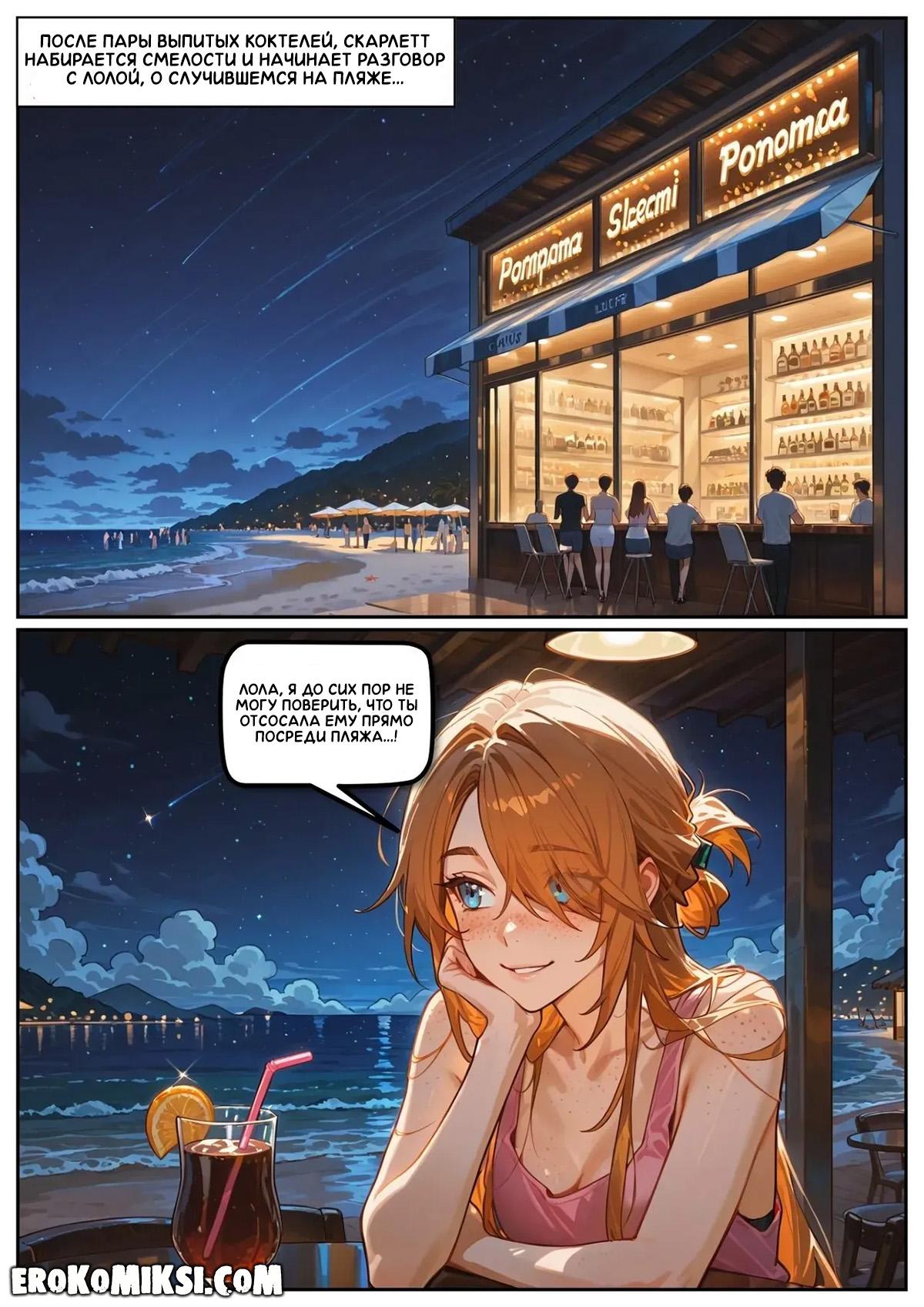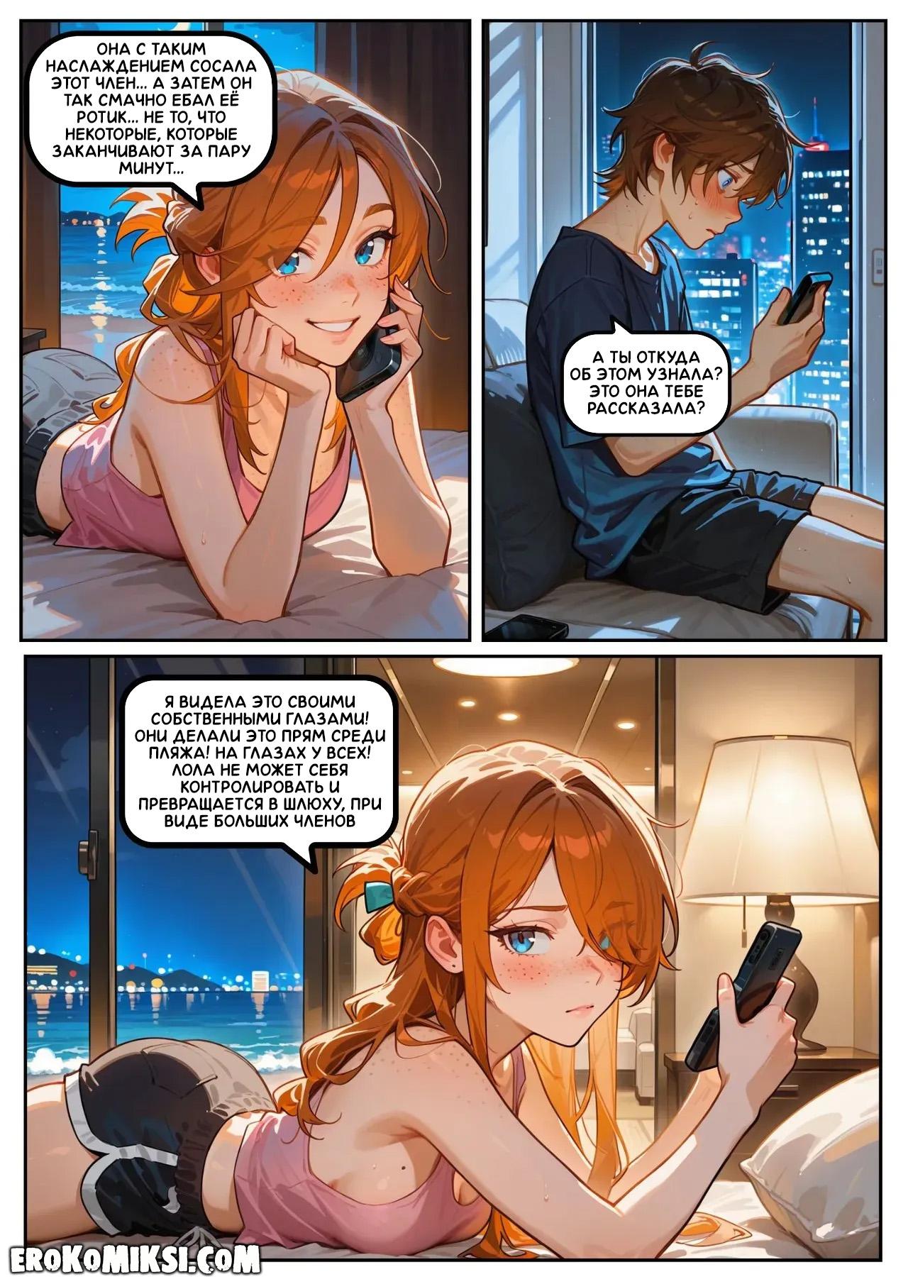 Порно комикс Скарлетт Блейз. Часть 5. Награда за сдержанность. После увиденного на пляже, Скарлетт вечером звонит Итану и всё ему рассказывает. Во время разговора, Скарлетт слышит, как Лола трахается в соседнем номере, от чего сильно возбуждается и они с Итаном устраивают секс по телефону…