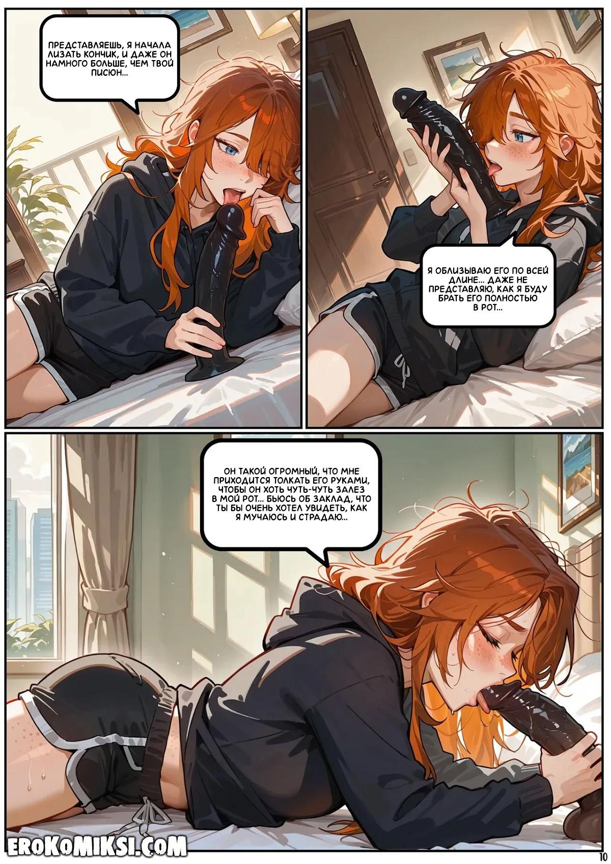 Порно комикс Скарлетт Блейз. Часть 7. Воображение. Скарлетт приобретает себе огромный чёрный дилдо, и начинает дразнить Итана, который мечтает увидеть, как Скарлетт будет с ним развлекаться, но Скарлетт позволяет ему лишь подслушивать за дверью, как она развлекается со своей новой игрушкой…