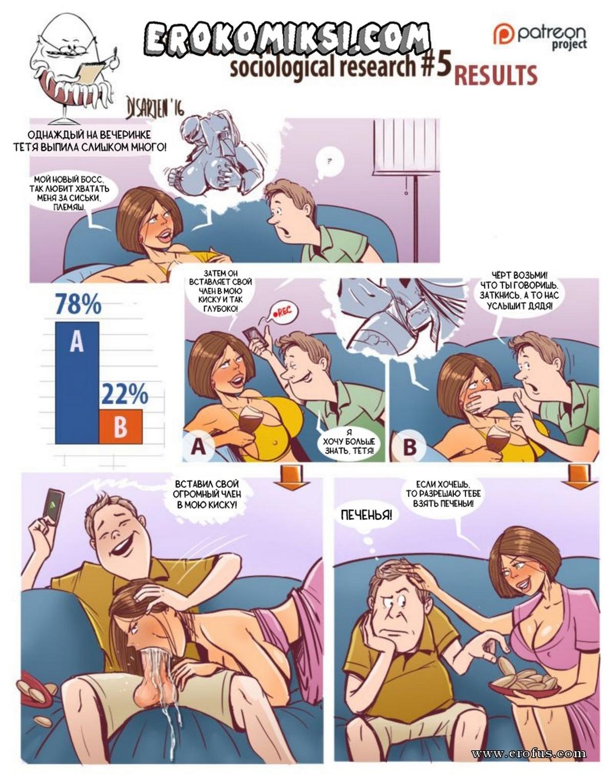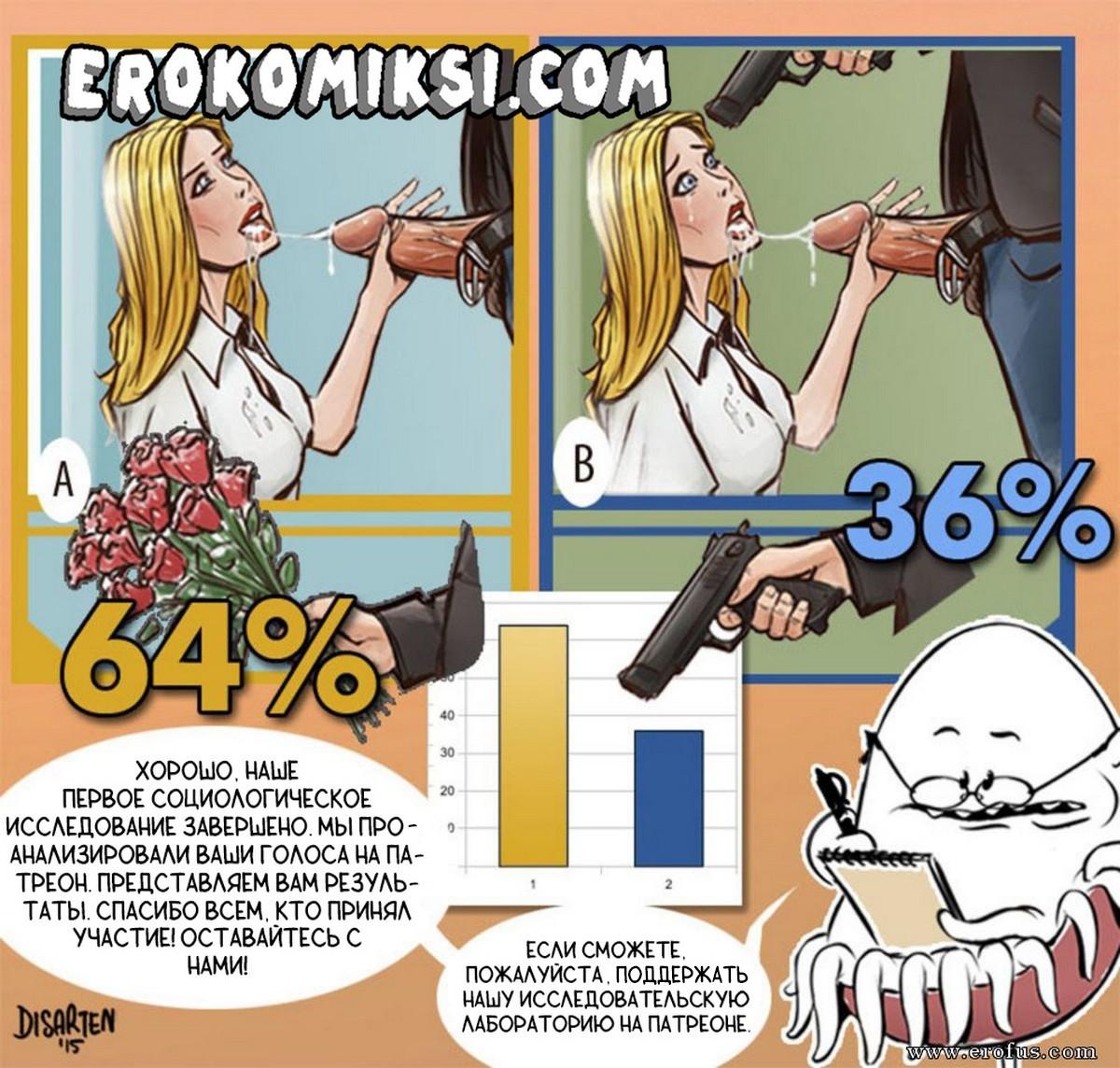 Порно комикс Социологическое исследование. Часть 1 и 2. Исследовательская группа провела новые опыты. Теперь молодые девушки и горячие милфочки изменяют своим мужьям, как последние бляди. Босс трахает свою секретаршу. Лучший друг трахает девушку друга и ещё много историй…