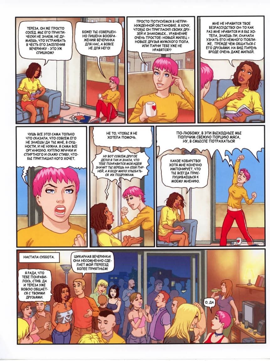 Откровенная пошлая история с картинками о том, что если в квартире есть свободная комната, то почему бы туда не пригласить пожить очаровательную соседку или соседа, обожающего бурный секс. А если вдруг квартирант или квартирантка не понимает, что от них хотят, тогда пускай валят. Перед вами классный и пикантный комикс с отличной прорисовкой от горячих художников из Испании.