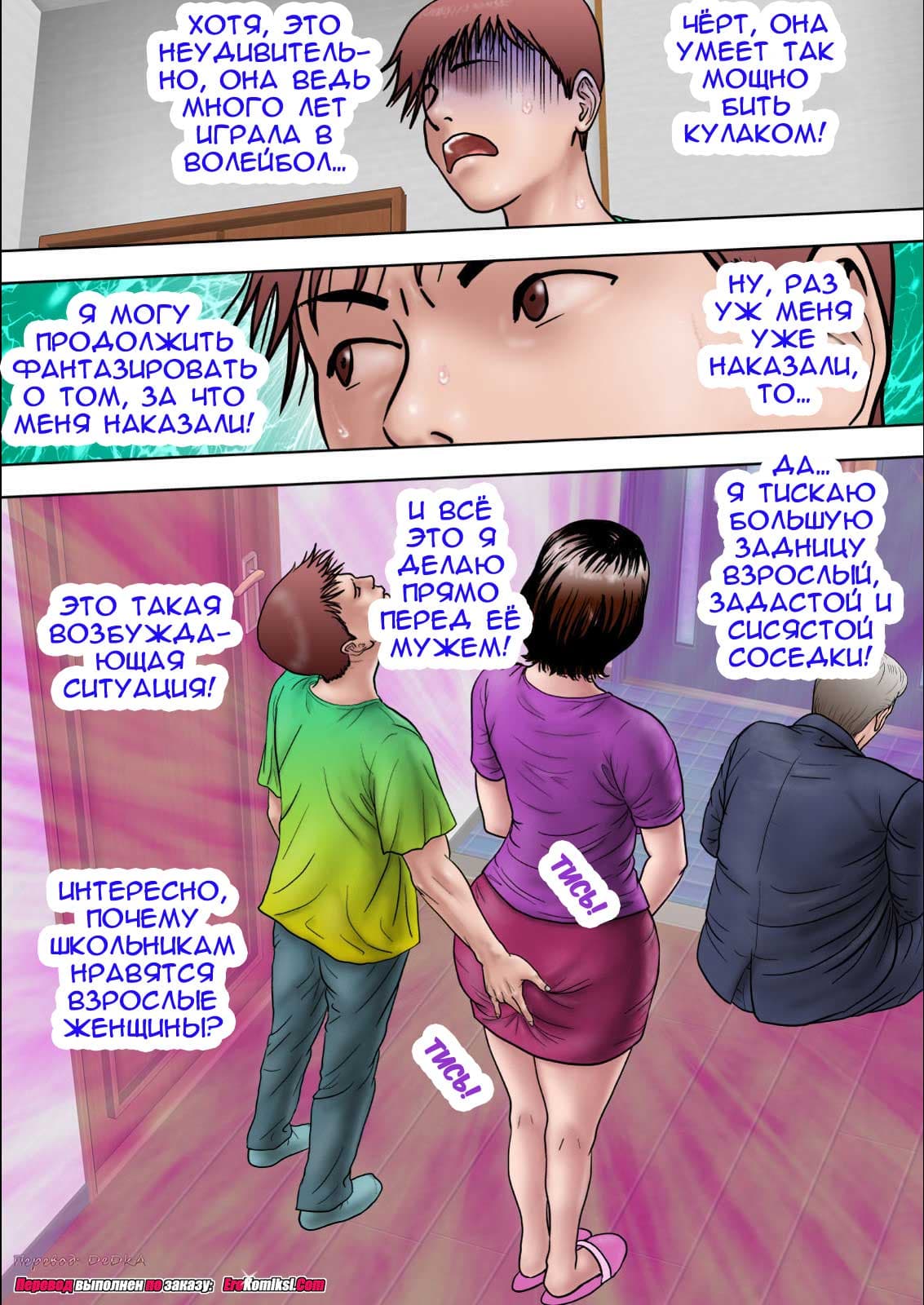 В одном совершенно обычном доме, у одной совершенно обычный супружеской пары, рос совершенно обычный сын. Рос он рос, и вырос, а вместе с ним и между ног у него кое-что выросло. И стало это кое-что не давать парню покоя и требовать, чтобы он засунул его в известное место. Осмотрелся тогда парень по сторонам и увидел, что такое заветное место в его доме есть только у его мамы. Но для такого дела мама не годится. Она же мама. Огорчился парень и задумался. Думал он думал и придумал! Надо просто глядя на маму представить, что это не мама, а соседская тетенька! Обрадовался парень, что нашёл выход из положения и начал действовать…