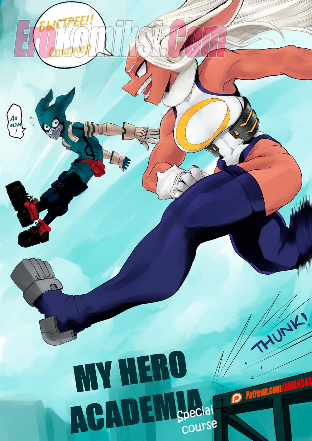 Порно комикс Специальный курс. Часть 1. Моя геройская академия. Special Course. Amano44 Горячая красотка блондинка тренировала своего стажера и начала его задевать. Парню это слишком не понравилось и он решил преподать ей урок. Он раздел ее и хорошенько выебал, дав сучке понять, что он не так плох.