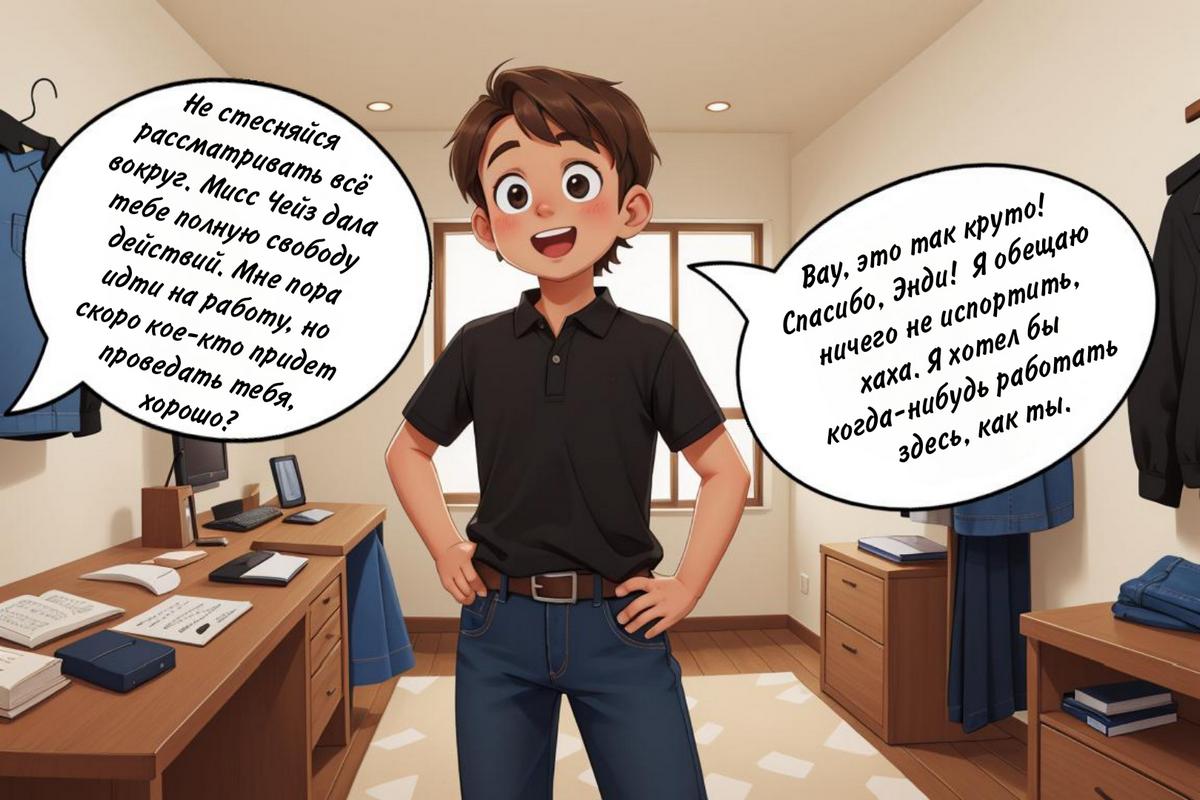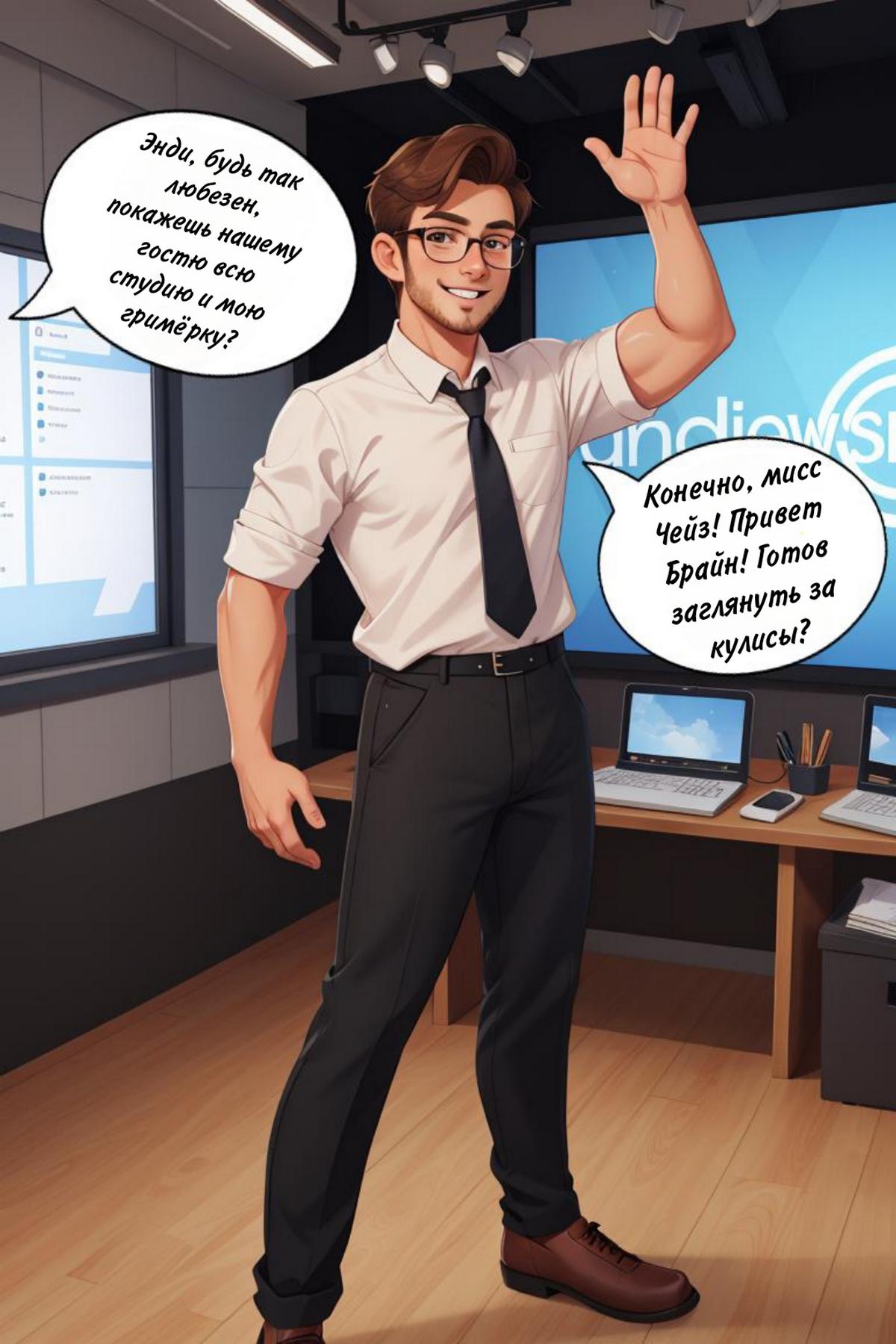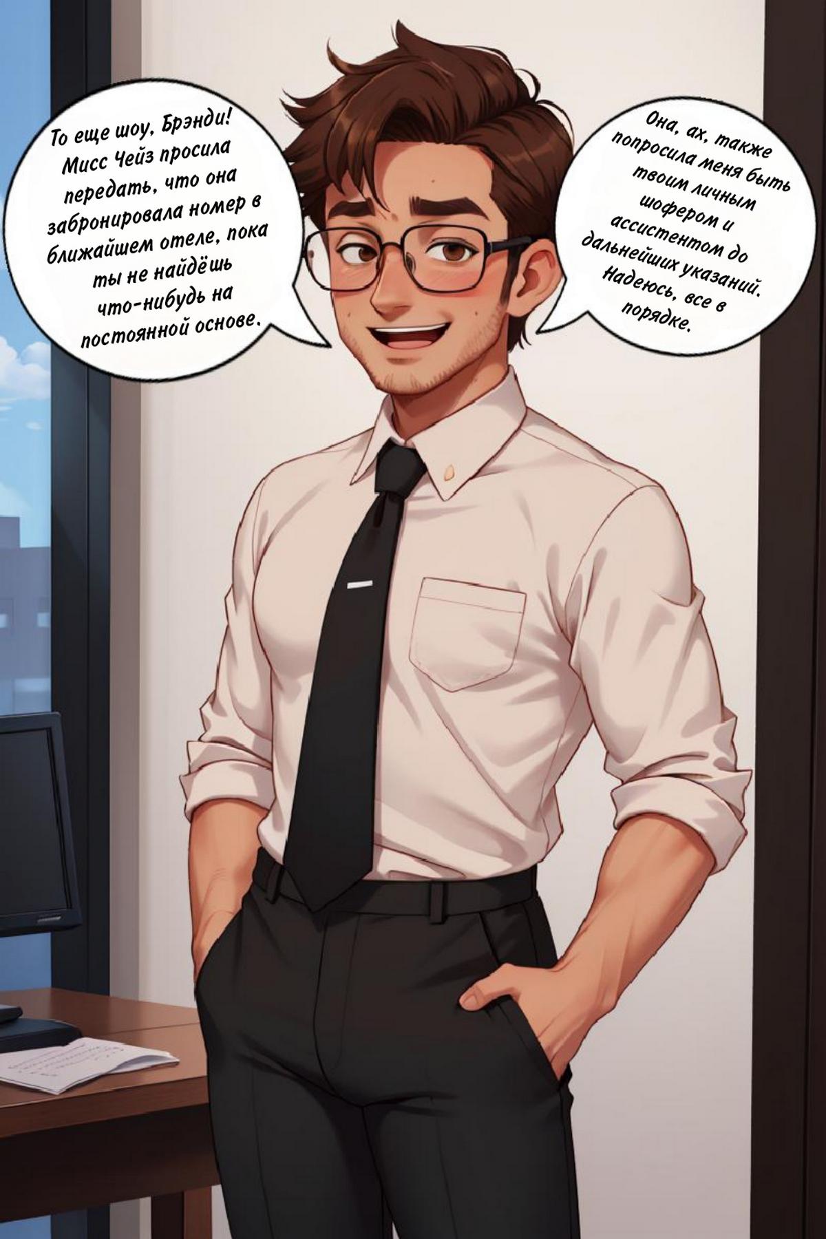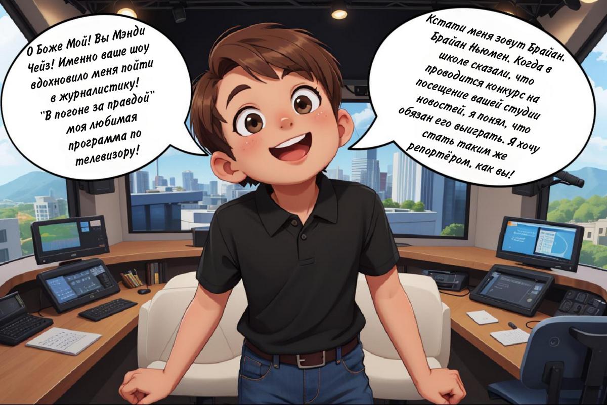 Порно комикс Срочные новости. Брайан хочет стать репортером, когда вырастет, поэтому он в восторге, когда выигрывает учебный конкурс на посещение новой новостной студии, принадлежащей его любимой журналистке Мэнди Чейз. Он говорит своему кумиру, что мечтает когда-нибудь поработать в её студии, но вскоре узнаёт, что у Мэнди есть способ ускорить процесс найма. В конце концов, невозможно работать в студии новостей без ведущего репортера…