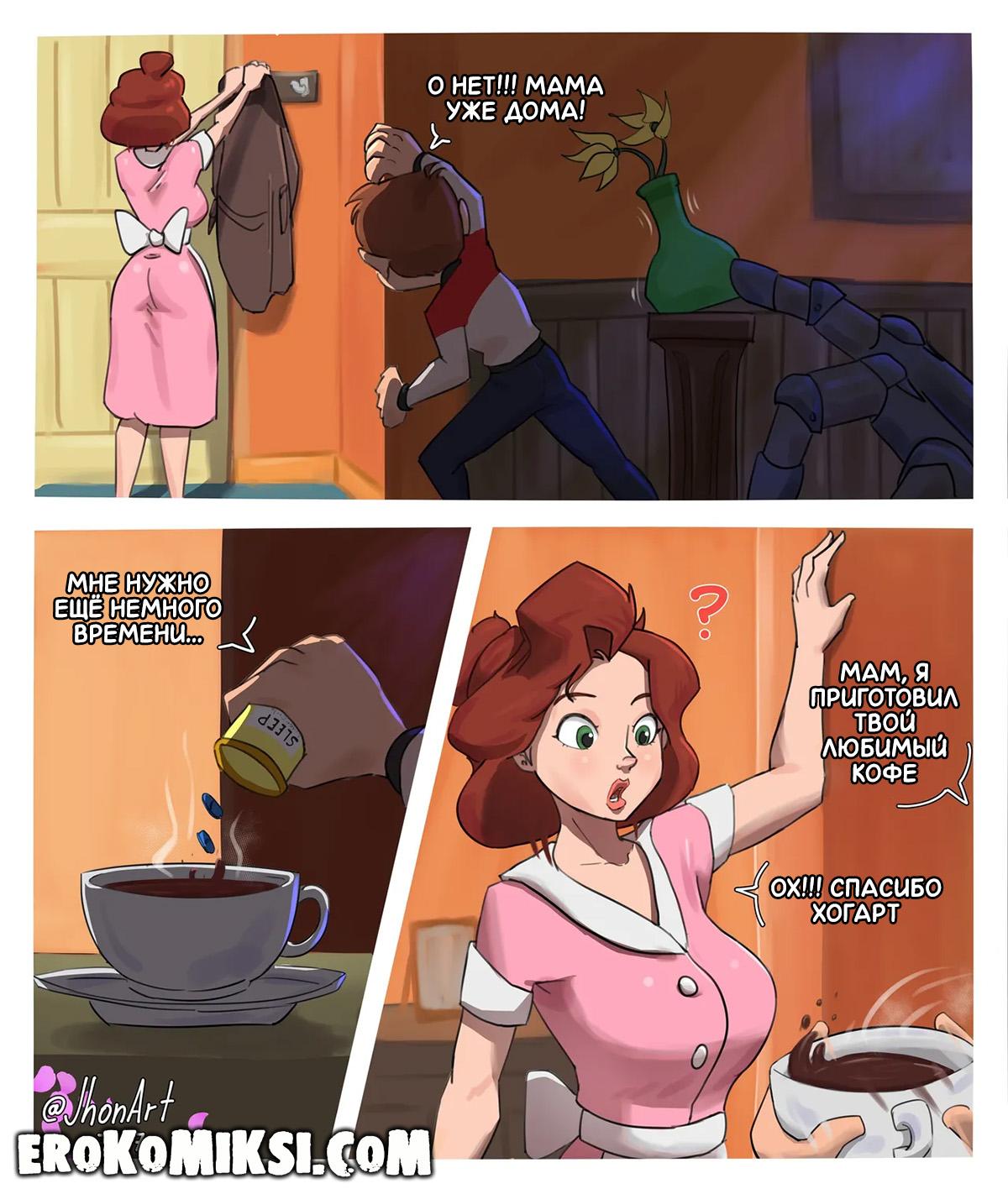 Порно комикс Стальной Гигант. Любимая мамочка. Хогарт очень любит свою маму и уже давно хочет её трахнуть, поэтому, он решает подсыпать ей снотворное в кофе, когда она пришла с работы. Когда снотворное начало действовать, Хогарт стянул с мамочки трусики и вставил ей в киску свой член…