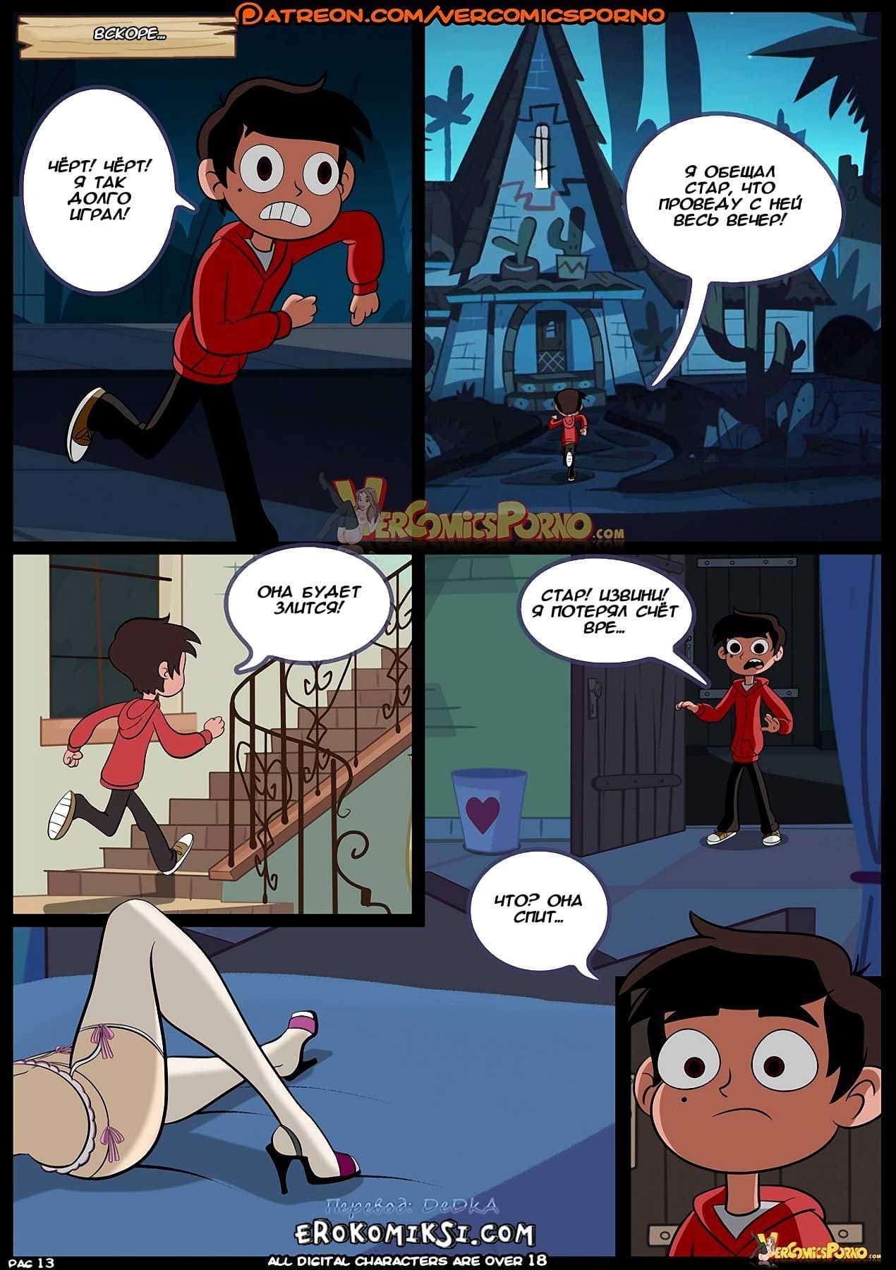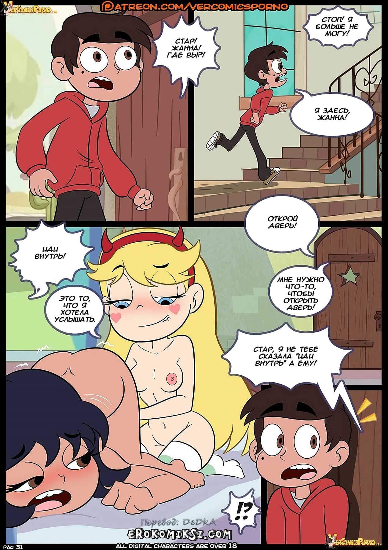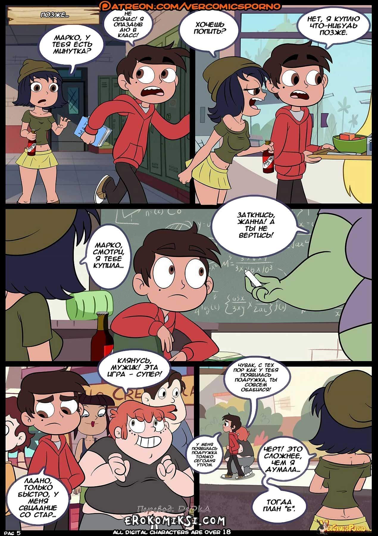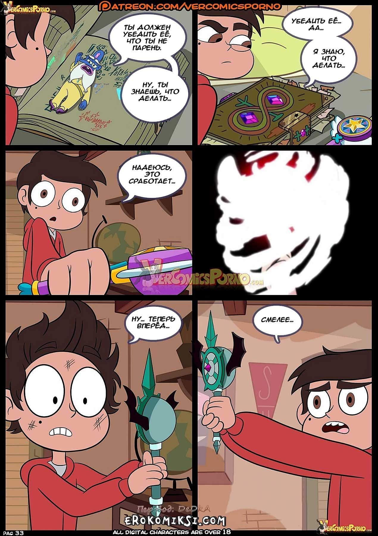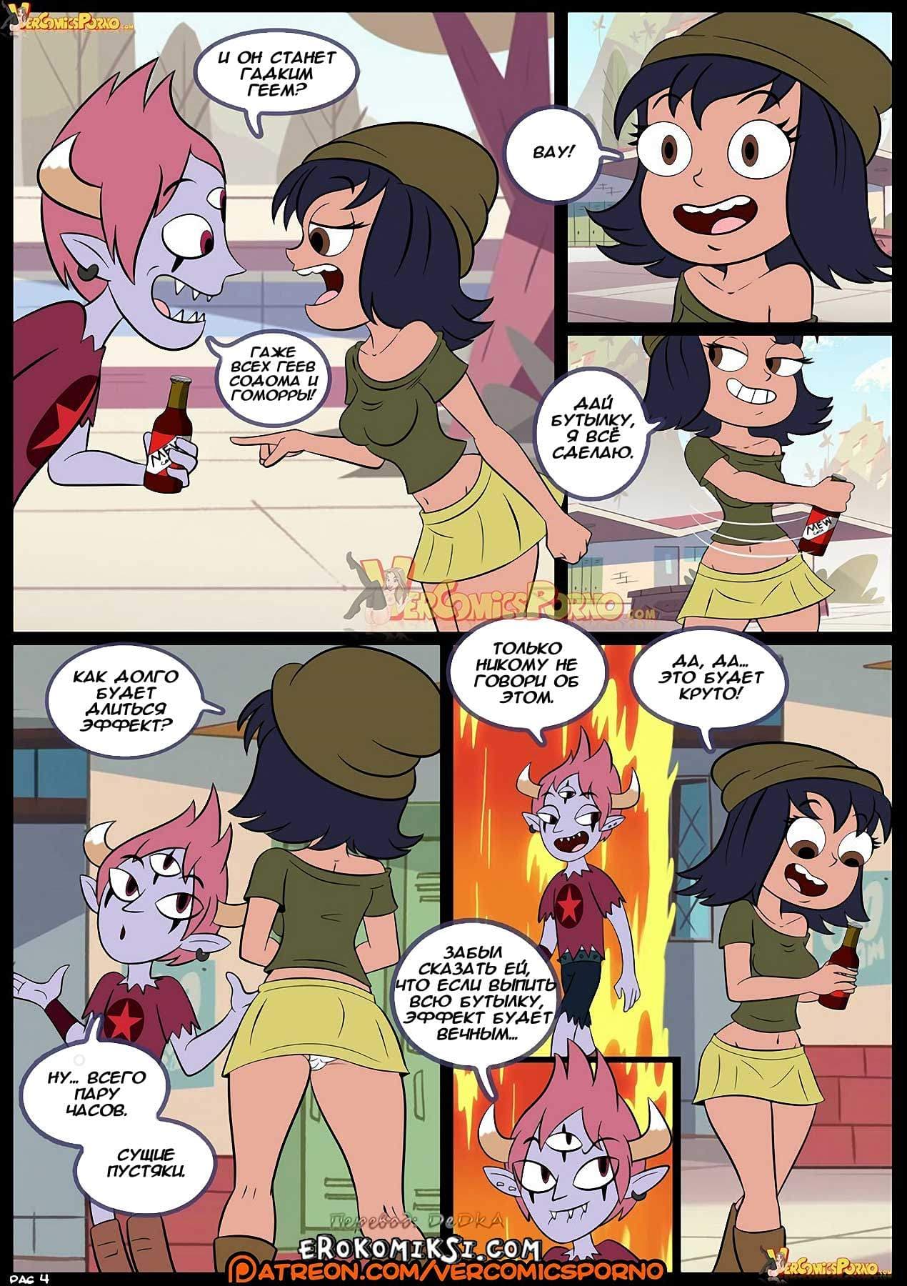 Порно комикс «Стар против сил любви» 3 часть поведает о том, как Том с ужасом понял, что его любимая Стар стала девушкой Марко, и решил, во что бы то ни стало вернуть её! А Марко он решил наказать. Жестоко наказать! Коварный Том раздобыл снадобье, выпив которое парень становится, так сказать, представителем не той ориентации… Осталось только подстроить всё так, чтобы Марко выпил это зелье… Как же начнут развиваться события далее…