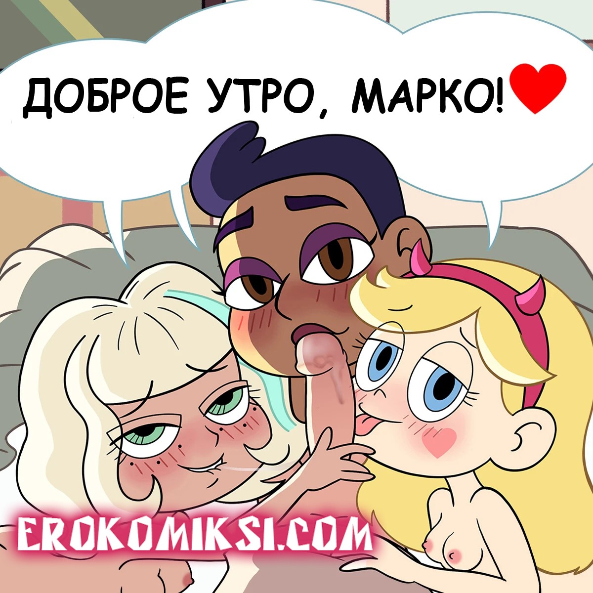 Порно комикс Стар против сил зла. Доброе утро, Марко. Пока Марко сладко спал, Стар, Джеки и Хлоя решили проверить его член на вкус. Проснувшись от немыслимого удовольствия, он был очень сильно удивлён…