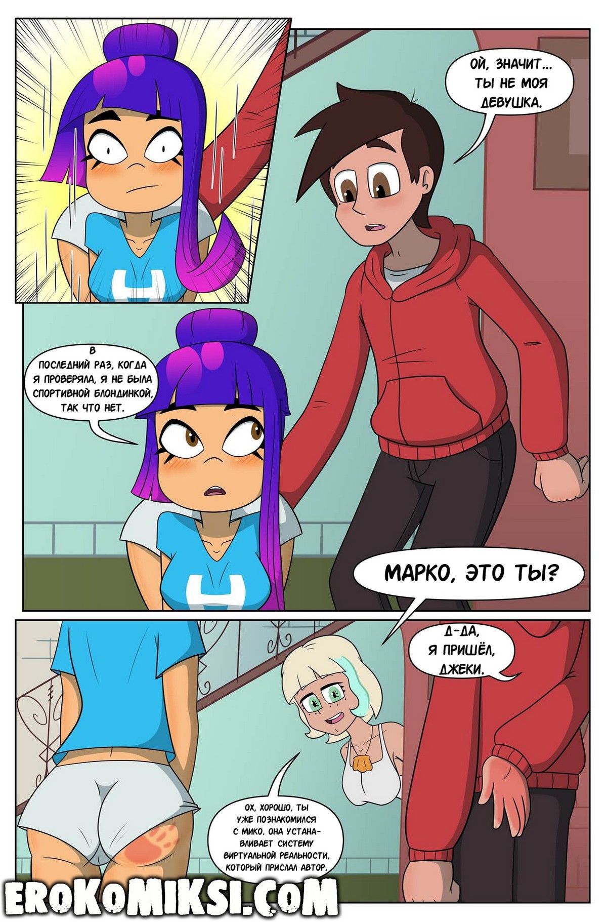 Порно комикс Стар против сил зла. Виртуальная реальность. Возвращаясь домой Марко случайно перепутал свою девушку с Мико и ударил её по аппетитной заднице. Оказывается, Мико пришла устанавливать систему виртуальной реальности и как только она и Марко зашли в систему…