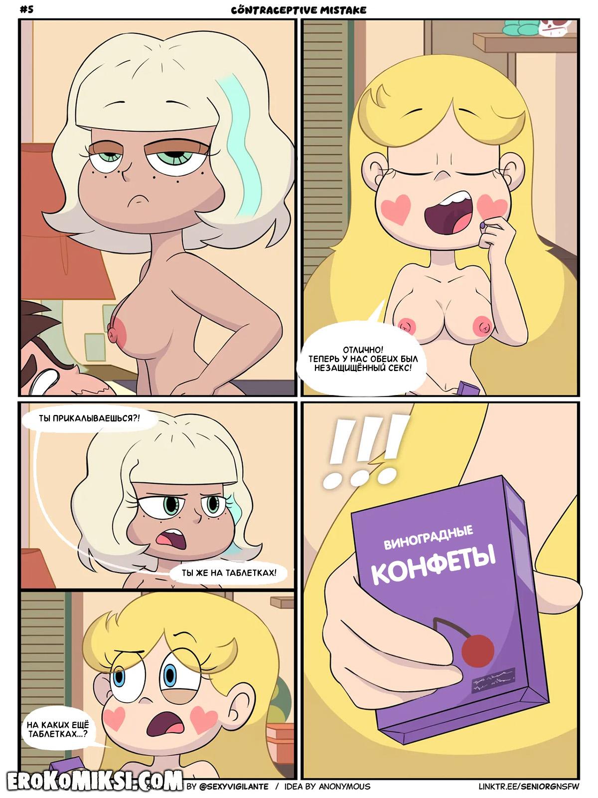 Порно комикс Стар против сил зла. Средства защиты. Джеки увидела, что Стар и Марко собираются трахаться, и надевают презерватив, и начала их по этому поводу троллить. Стар психанула и сорвав с члена Марко презерватив, заставила его кончить в свою тугую киску…