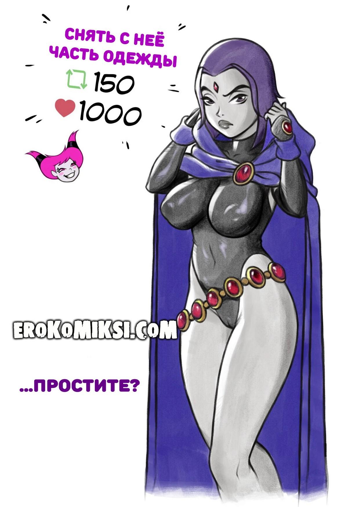 Порно комикс Стриптиз Рэйвен. Рейвен начала по немного раздеваться, чтобы показать читателем шоу, которые они вряд ли видели. Сначала оголяя свою большую грудь и киску, а после начала сосать здоровые члены…