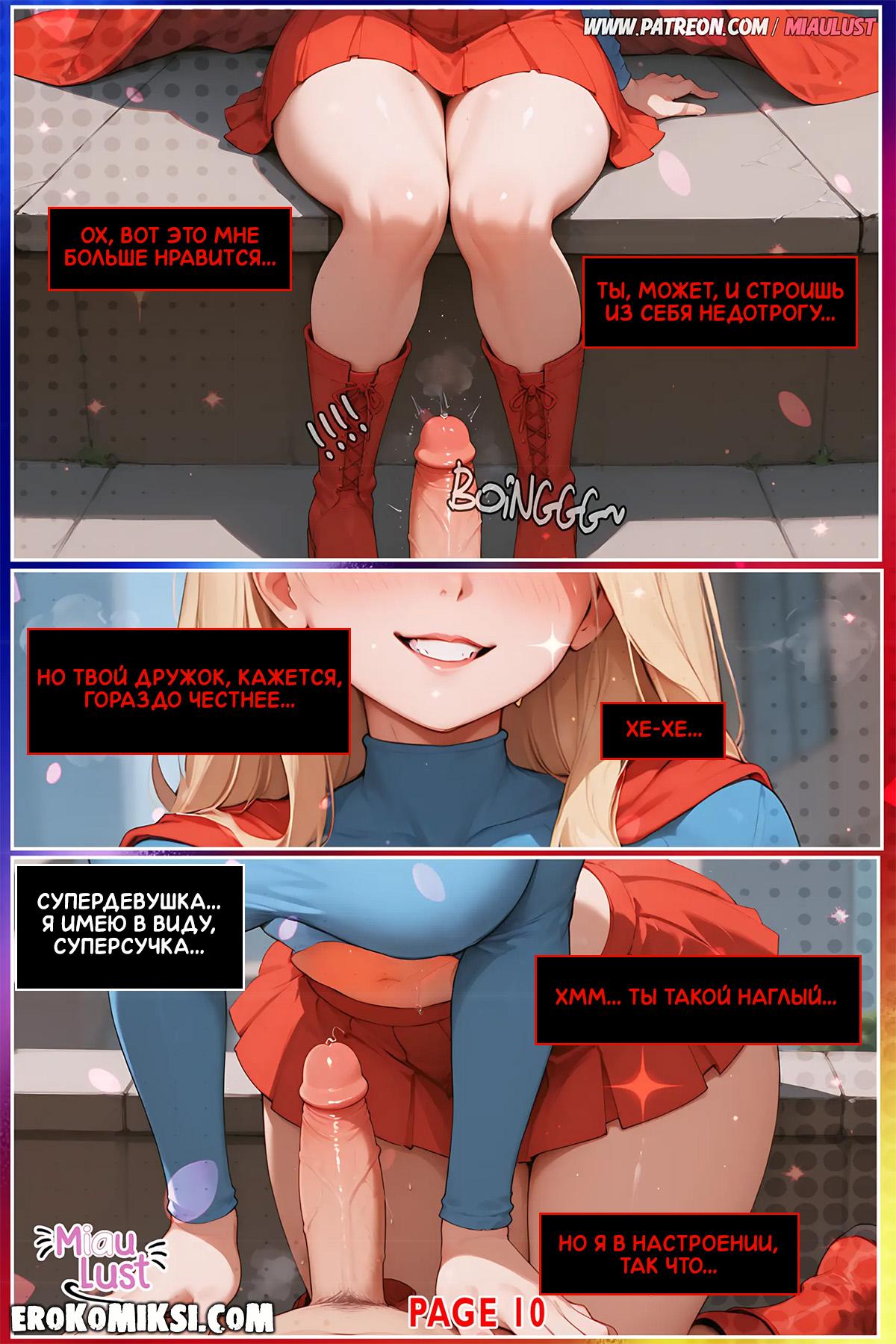 Порно комикс Супер-девушка. Спасение мира. Супер-девушка ловит преступника, который ограбил банк. Но неожиданно, она начинает возбуждаться и решает для начала немного поразвлечься с пареньком, и принимается дрочить его член…