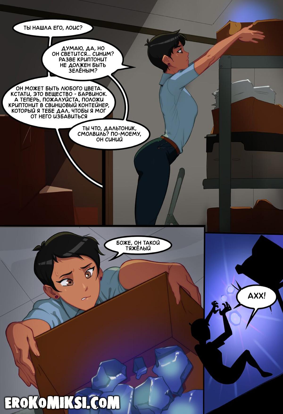 Порно комикс Супермен и Лоис Лейн. Волшебный криптонит. Кларк просит Лоис достать из коробки криптонит, чтобы он его выбросил, однако, Лоис роняет камень, от чего её грудь стала мутировать и увеличиваться в размерах. Единственный способ остановить мутацию – залить спермой область поражения. Кларк достаёт свой член и начинает трахать Лоис между сисек и покрывает их своей горячей спермой…