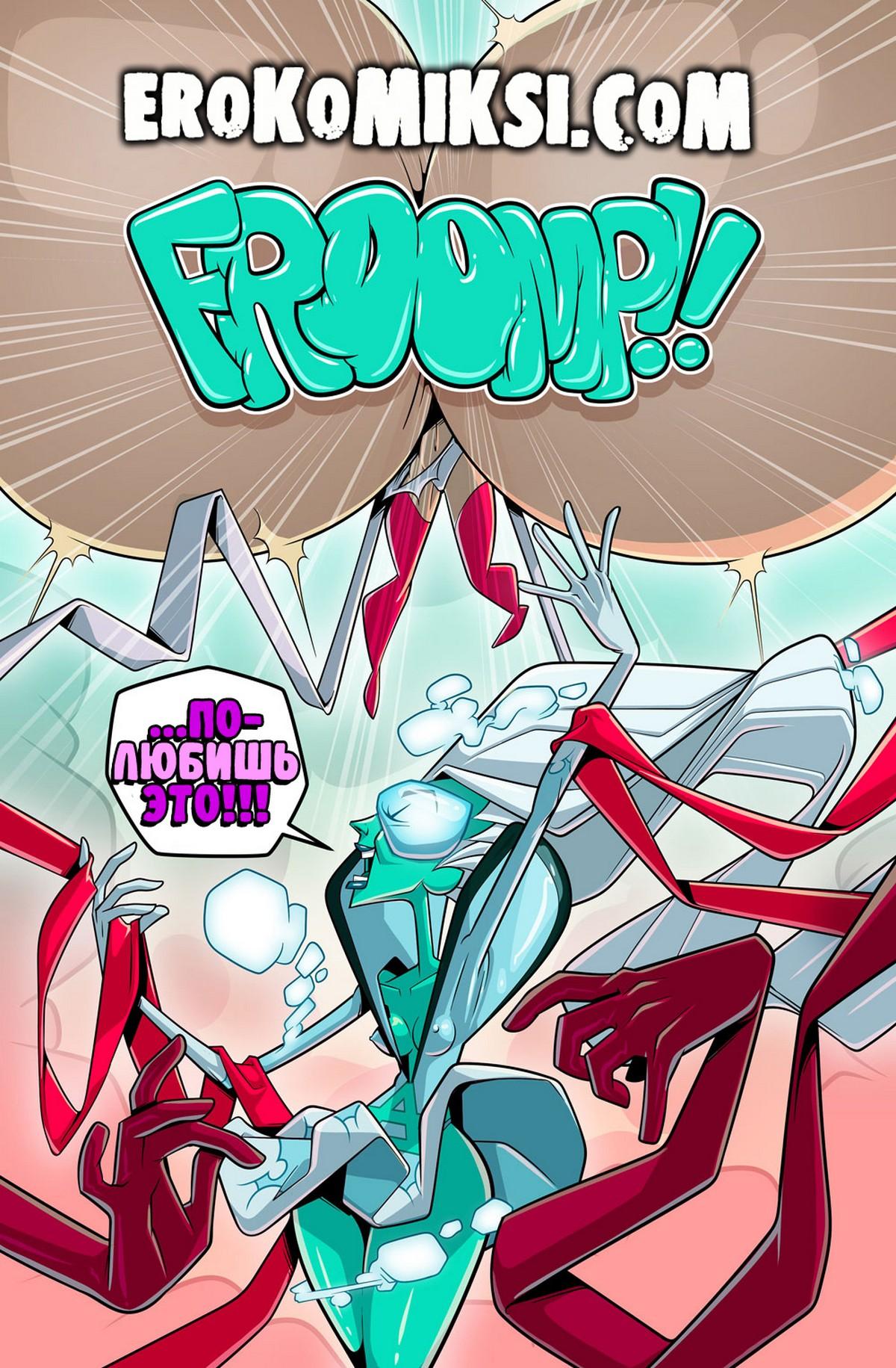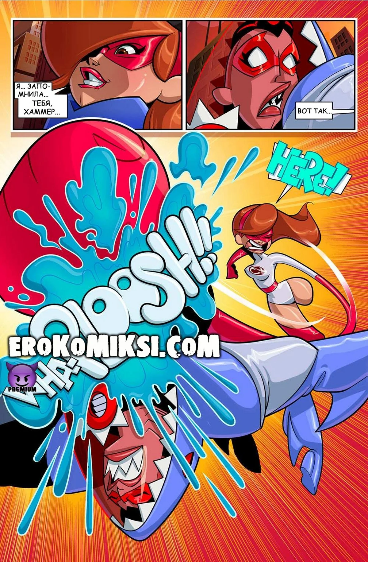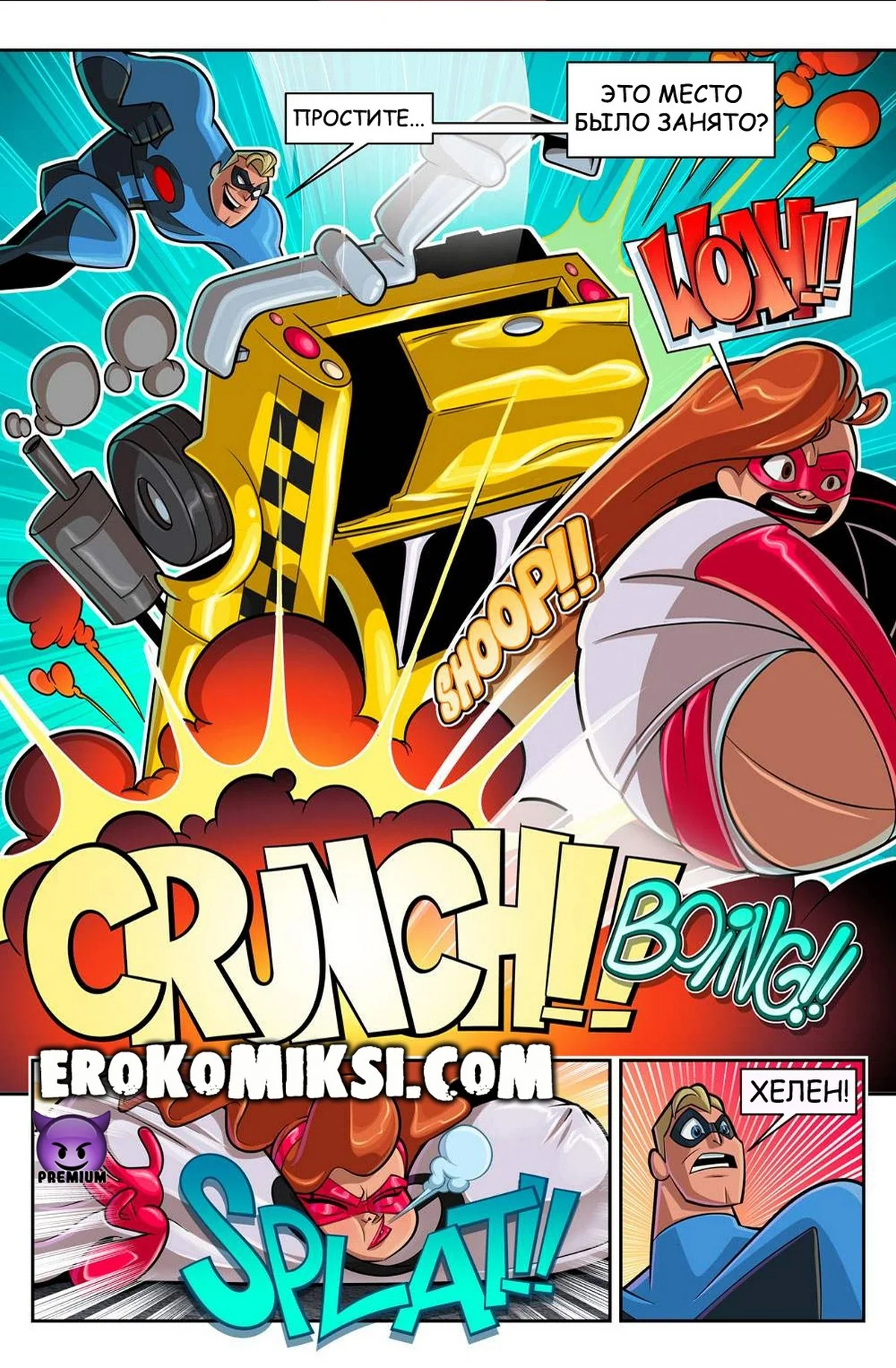 Порно комикс Суперсемейка. Эластика немного намокла. Эластика начала терять контроль над своим телом в битвах, после драки с Блю Краш. Эластика начинает не умышленно увеличивать свои сиськи и свою задницу и это очень ей мешает…
