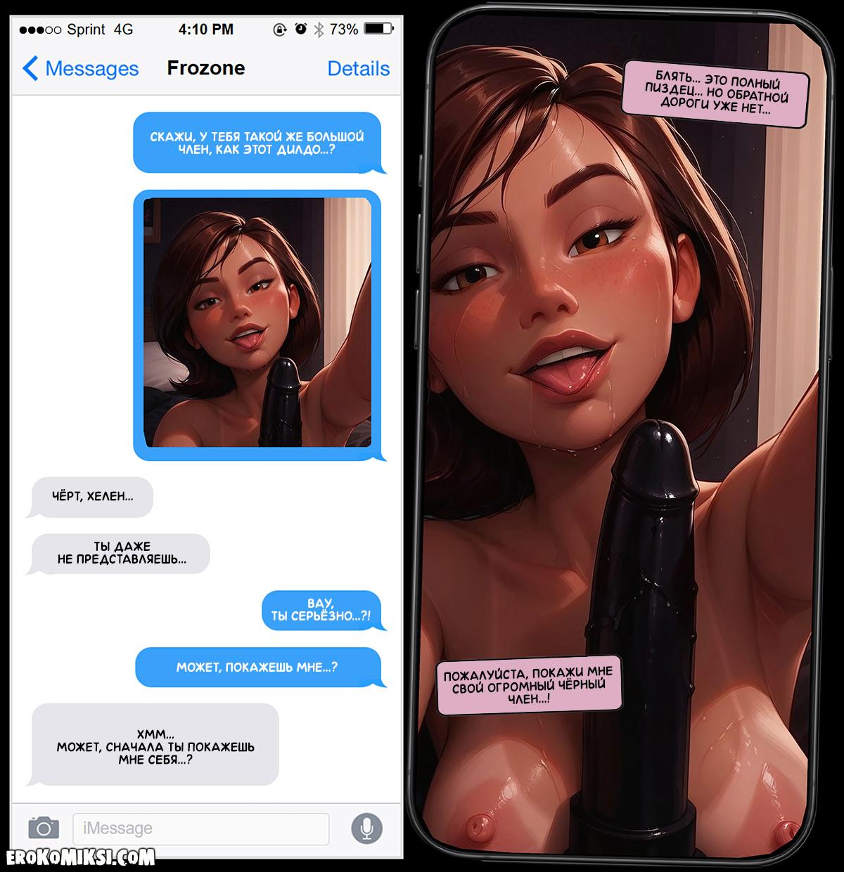 Порно комикс Суперсемейка. Роман с Фрозеном. Часть 1. Хелен была очень возбуждена и развлекалась с дилдо. Неожиданно ей пришла мысль написать Фрозену и отправить ему фото своих сисек, и получить в ответ фото его огромного члена. Фрозен с радостью поддержал игру Хелен и отправил её фото своего члена…