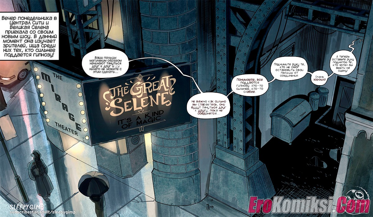 Порно комикс Своего рода Магия. A Kind of Magic. Sleepy Gimp Горячая сисястая брюнетка волшебница собрала полный зал зрителей на своем шоу. Она вызвала двух молодых красоток, чтобы погрузить их в полный транс и заставить их делать все, что она захочет.