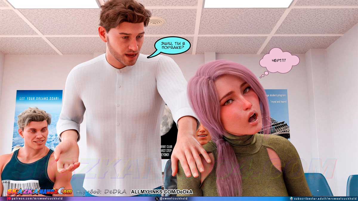 Порно комикс Тайная измена. Часть 8. Оливия обеспокоена тем, что Гектор заинтересовался Эшли, и она подумывает о том, чтобы откровенно поговорить с Эшли по поводу сложившейся ситуации…