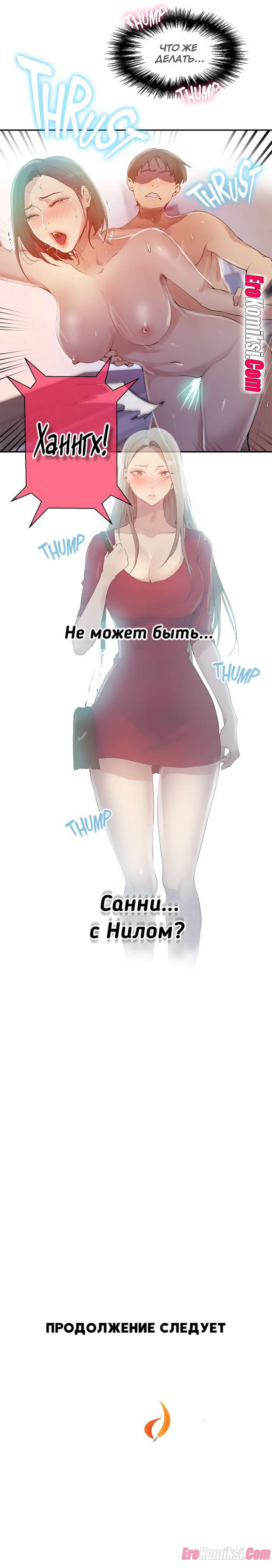 Порно комикс Тайное обучение. Часть 137. SecretClass. Снова главный герой трахает свою горячую тетю. Но женщина переживает что в комнату может зайти ее дочь.