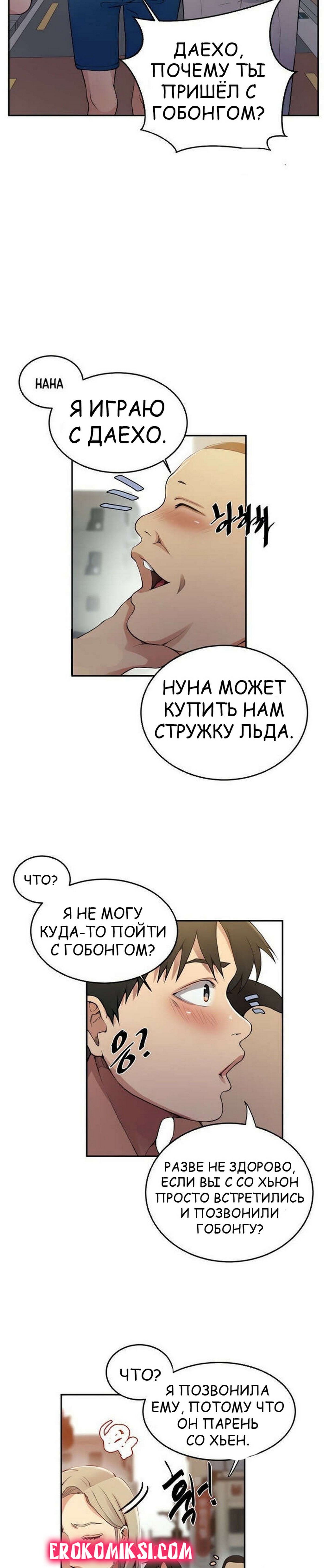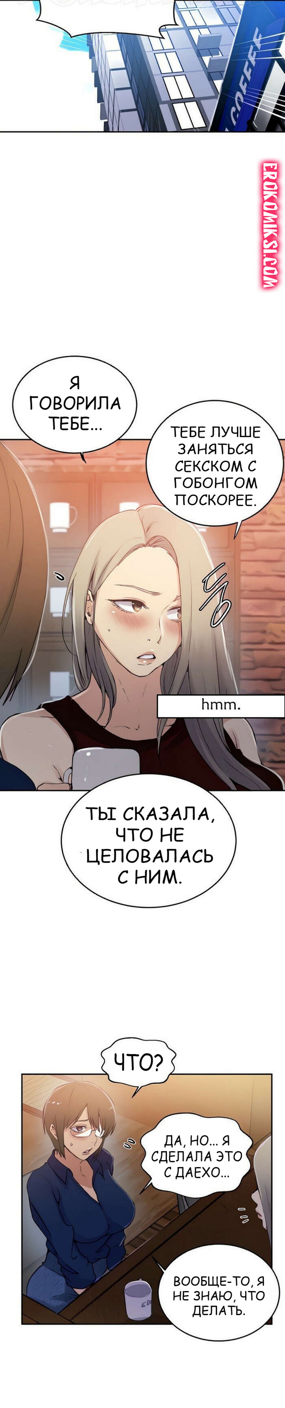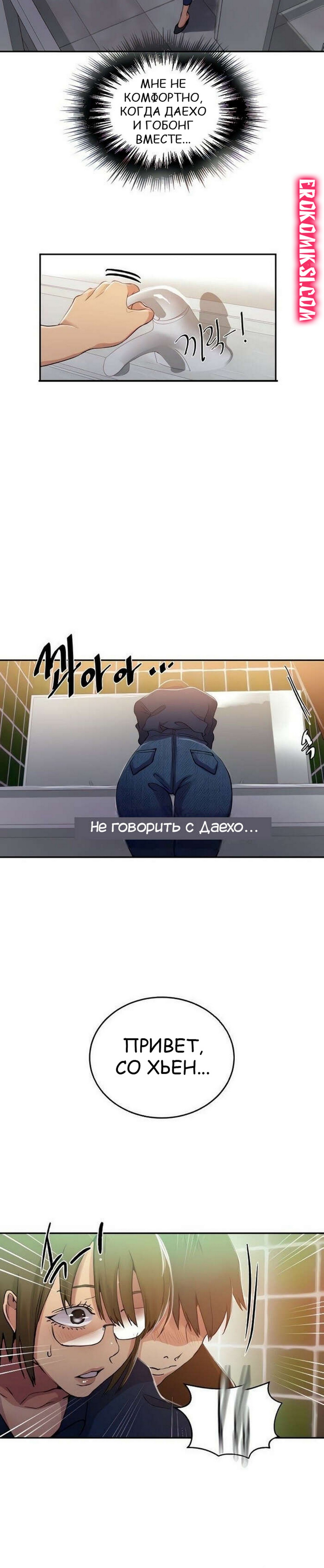 Порно комикс Тайное обучение. Часть 187. Secret Class Мия встретилась с Со Хьюн и позвонила Гобонгу пригласить на встречу. Вместе с Гобонгом пришел Даехо и они все вместе отправились перекусить. Со Хьюн отправилась в туалет, а Даехо последовал за ней, чтобы трахнуть ее…