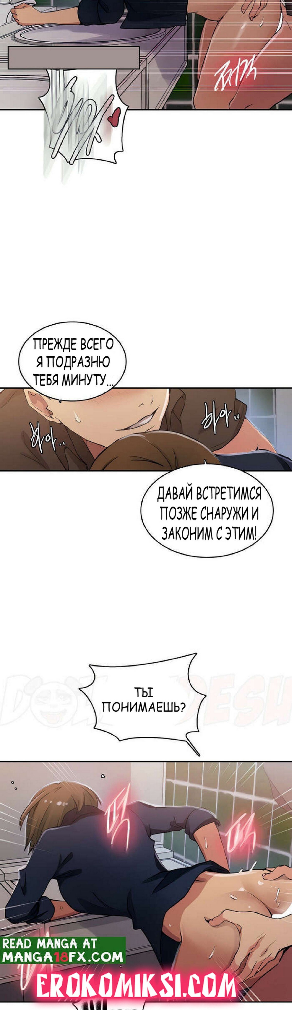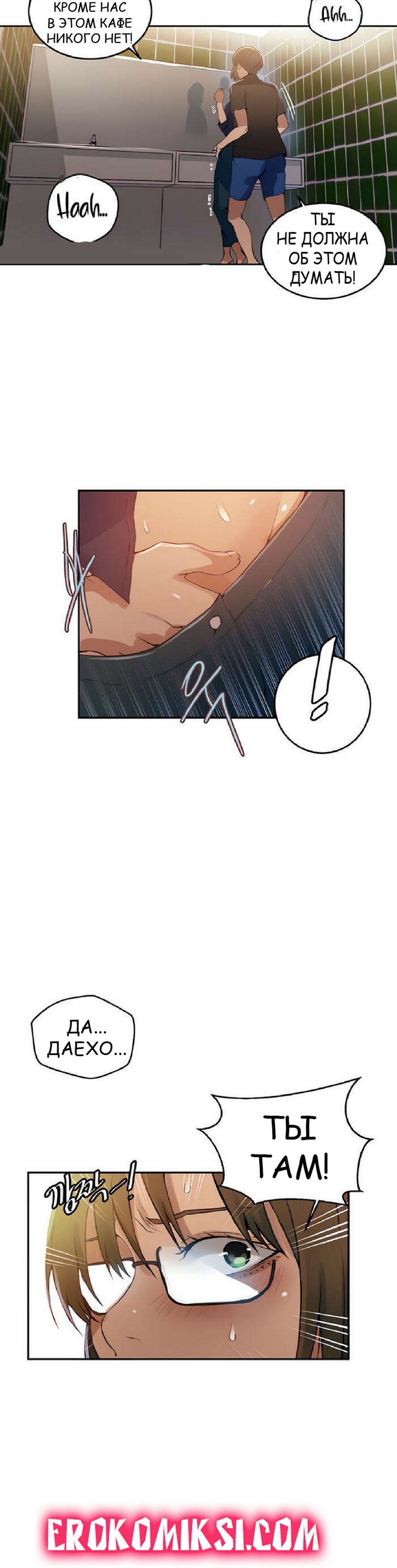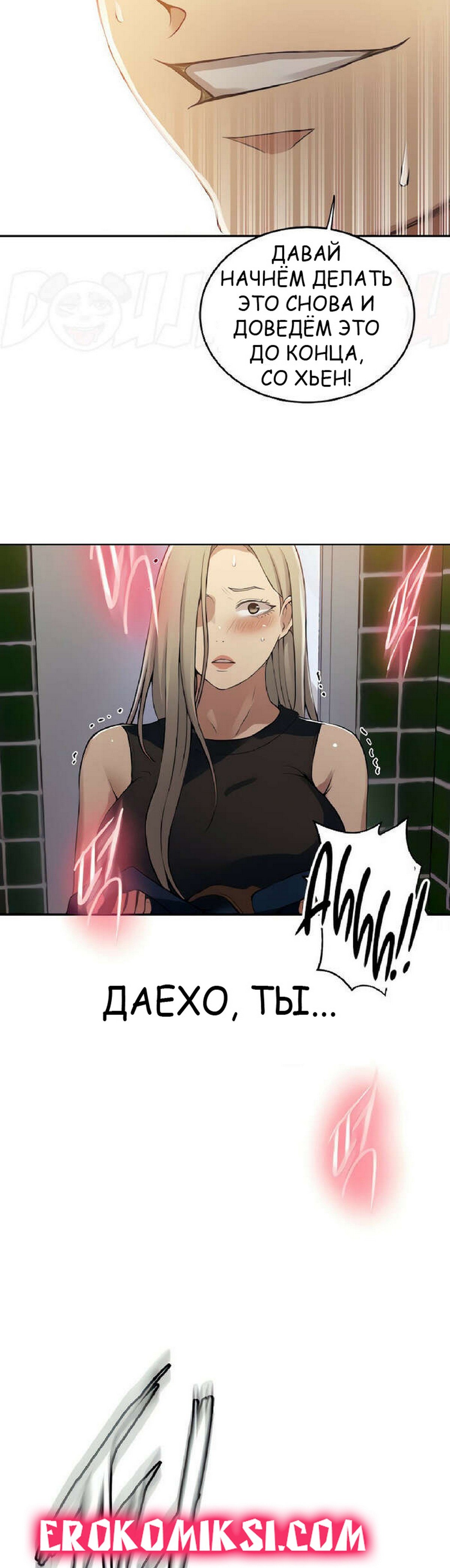 Порно комикс Тайное обучение. Часть 188. Secret Class. Даехо пошел в женский туалет за Сохьюн, где стал приставать к девушке. Он был сильно возбужден, поэтому скорее снял с девушки трусики, чтобы выебать ее пизденку…