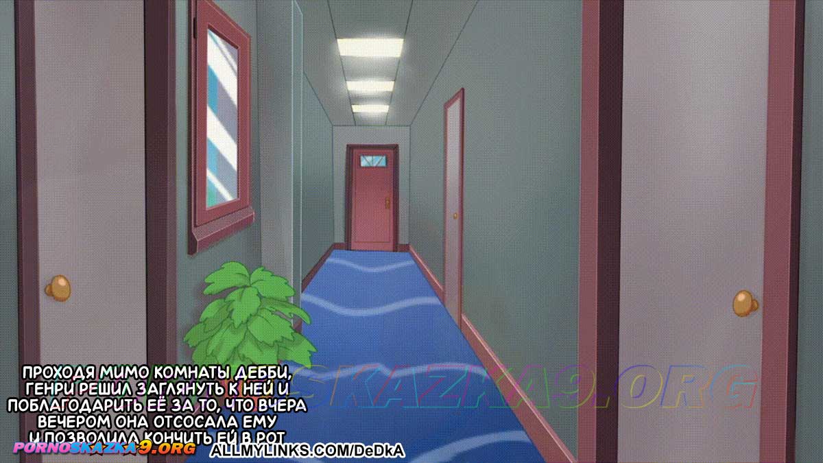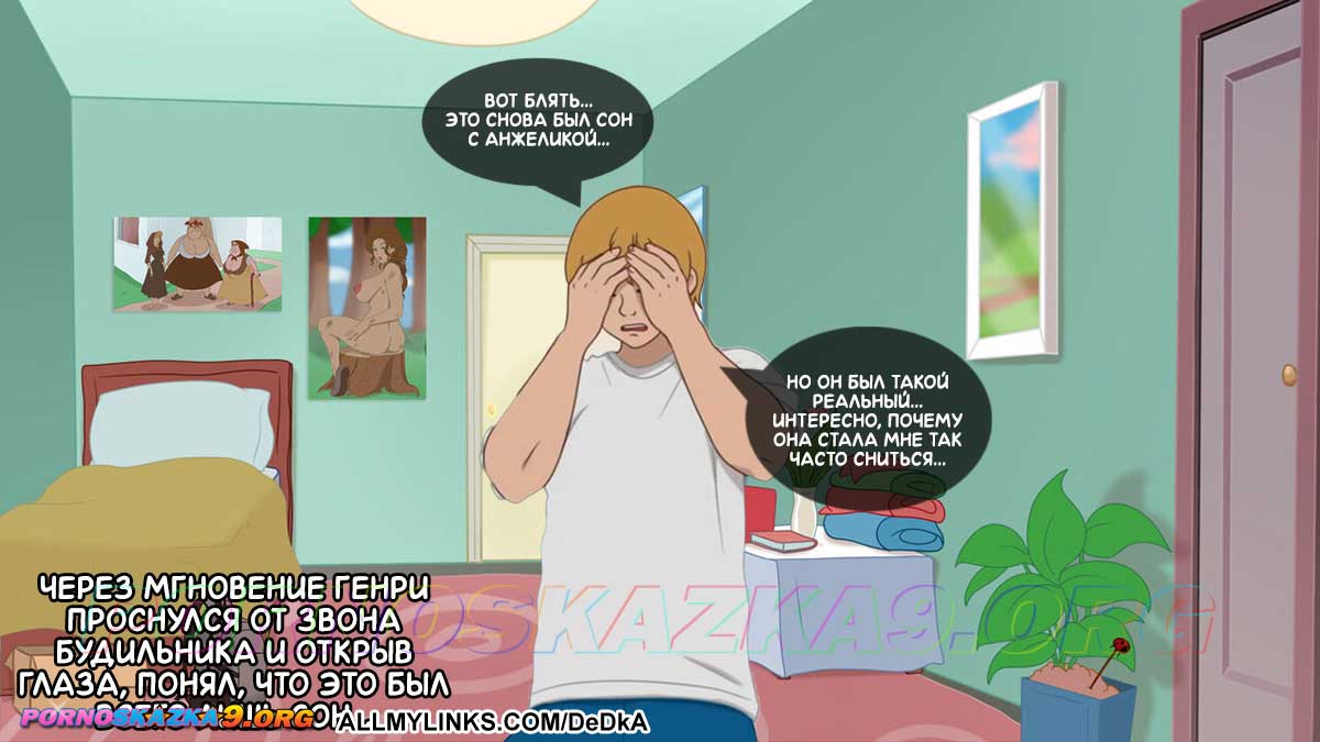 Порно комикс Тайны нашего дома. Часть 9. Генри собирается отправиться к Анжелике, чтобы поговорить с ней, но для начала, решает заглянуть в комнату Дебби, и увидев спящую маму голой, сильно возбуждается, и решает воспользоваться моментом. Он начинает играть с её огромными сиськами, а затем, вставляет свой член ей в рот…