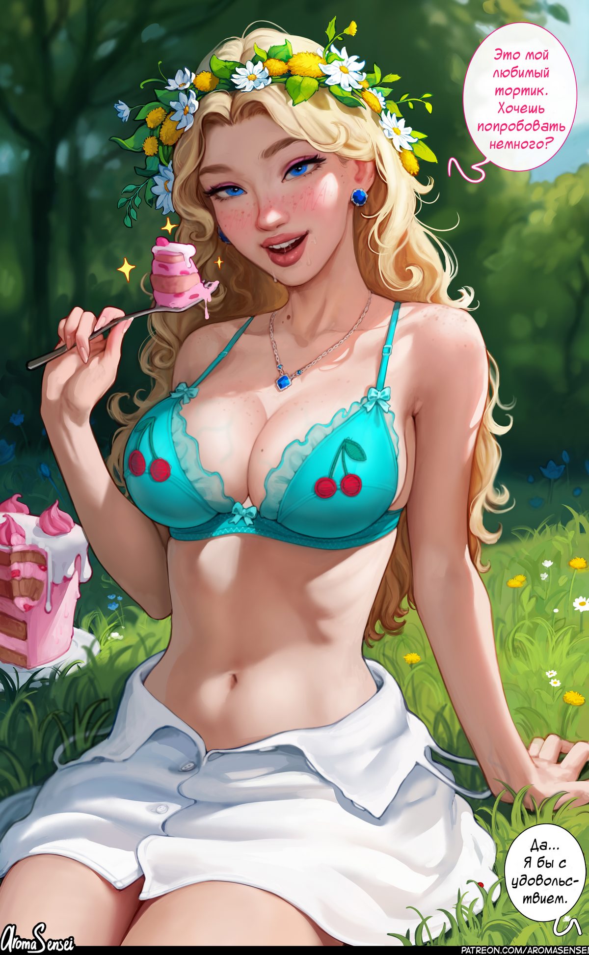 Порно комикс Танец цветов. Aroma Sensei. В день Танца Цветов фермер решился пригласить красотку Хейли. Она стала победителем в 6 раз подряд. А в качестве благодарности, девушка отдалась парню. Но это ещё не конец, ведь по возвращению домой, героя ожидала Эмили, которая с удовольствием принялась сосать хуй фермера…