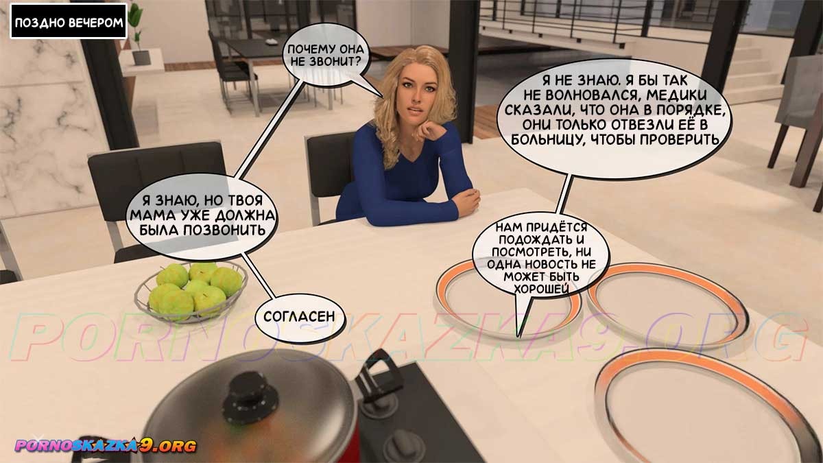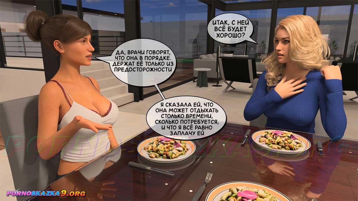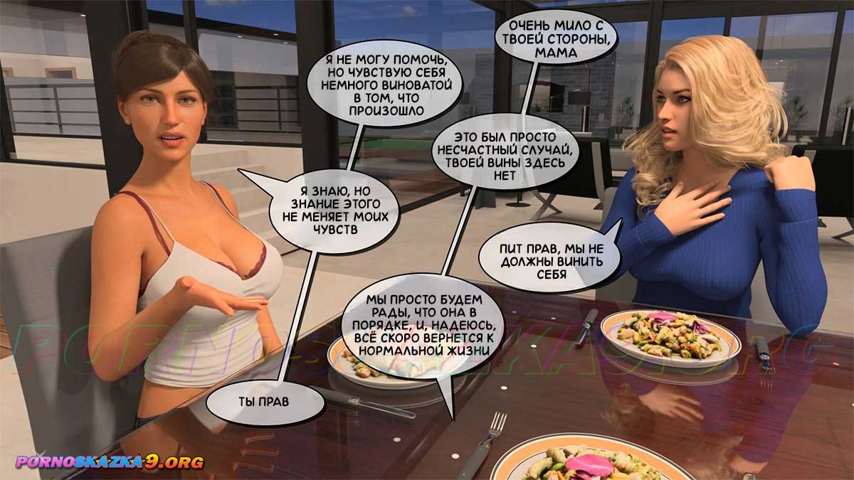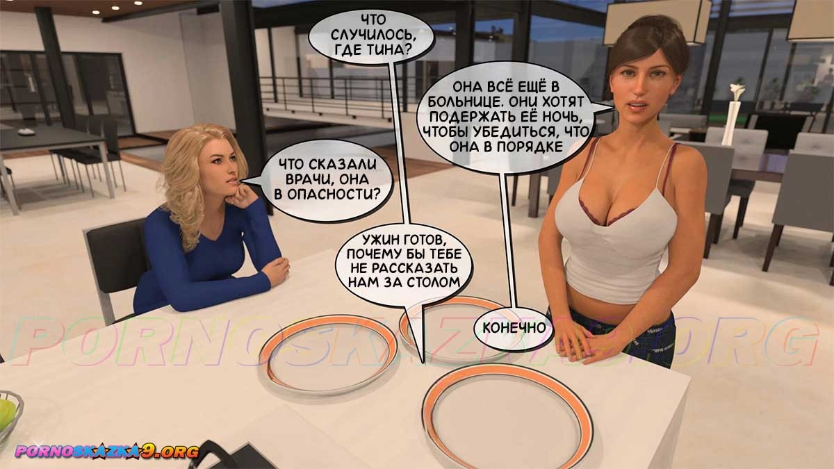 Порно комикс Тетя Вики, изменившая нашу жизнь. Глава 3. Часть 3. Тину, спасённую Питом, отправляют в больницу. Энни и Вики занимаются в спортзале и Энни просит Вики показать ей её огромные сиськи, так как она никогда таких не видела, и Вики соглашается. Между тем, вернувшаяся в дом Тина, приходит в комнату к Питу и благодарит его за спасение…