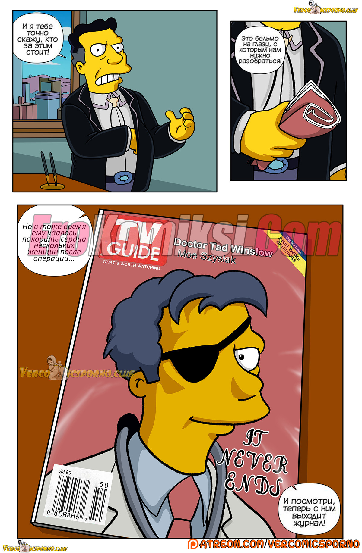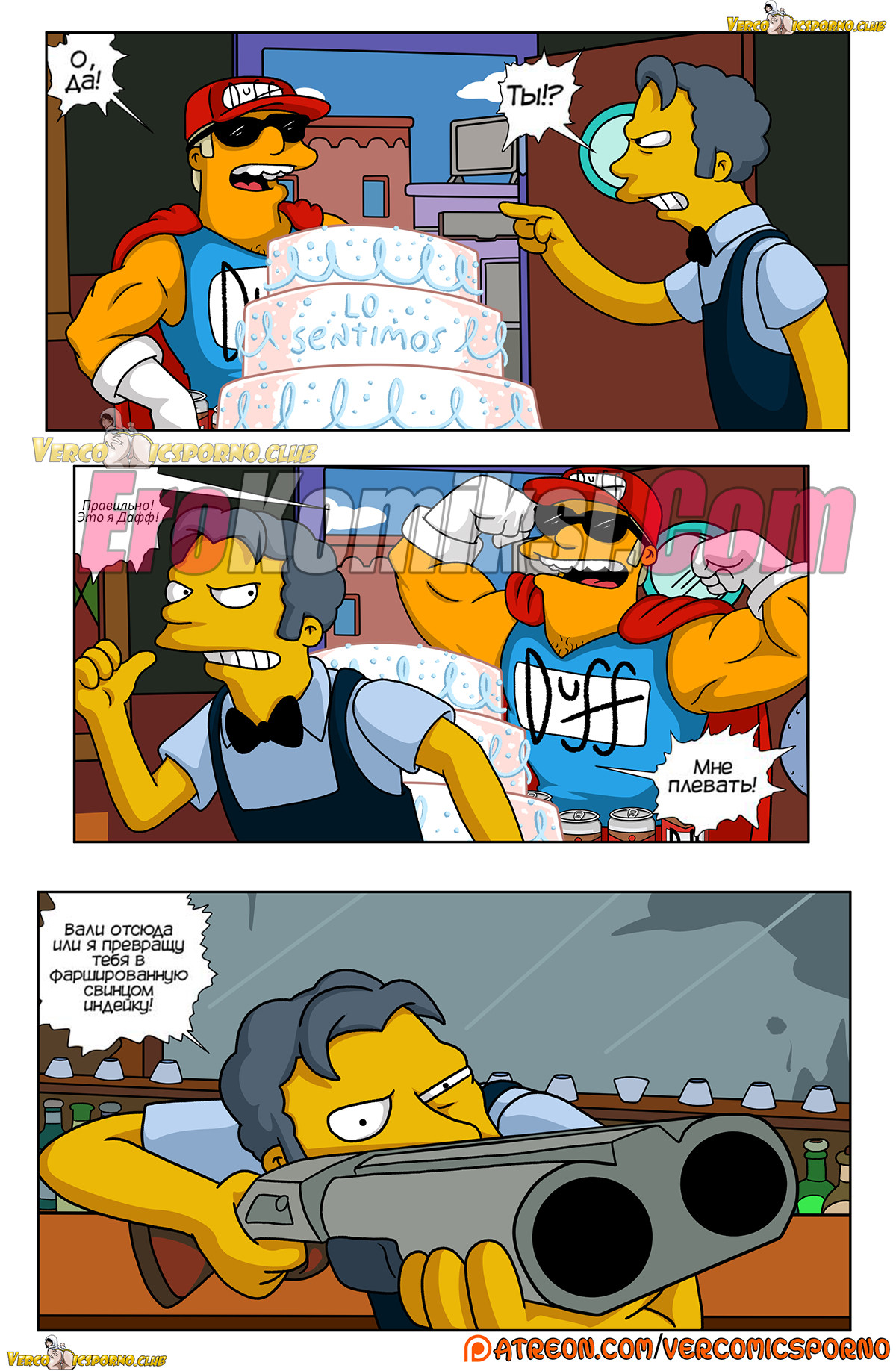 Мо перешёл дорогу крупному производству «Duff» по изготовлению пива и к нему послали здоровяка по имени Барри с сексуальной девушкой, которая должна устранить его, но прежде… А что прежде, читайте в комиксе…