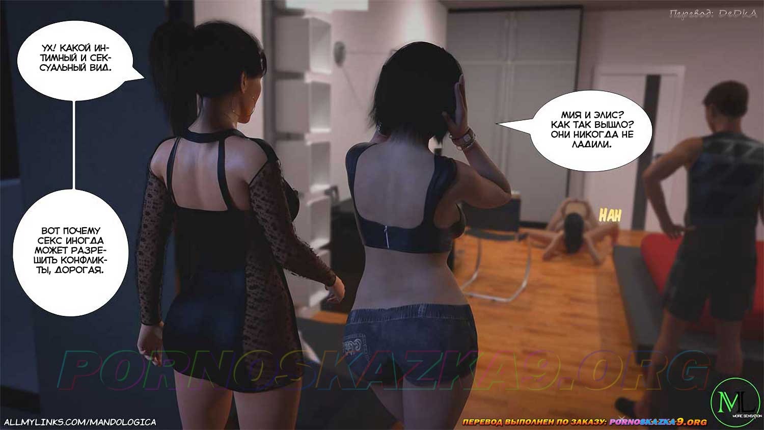 Порно комикс Только для тебя. Часть 38. Just For You. MandoLogica. Мия сказала Алисе снять свой топ и вставь перед ней на колени. Девушка стала сосать дилдо Мии, от чего блондиночка стала получать удовольствие. Но она хочет не просто трахнуть Алису, но сделать это вместе с Ричардом…