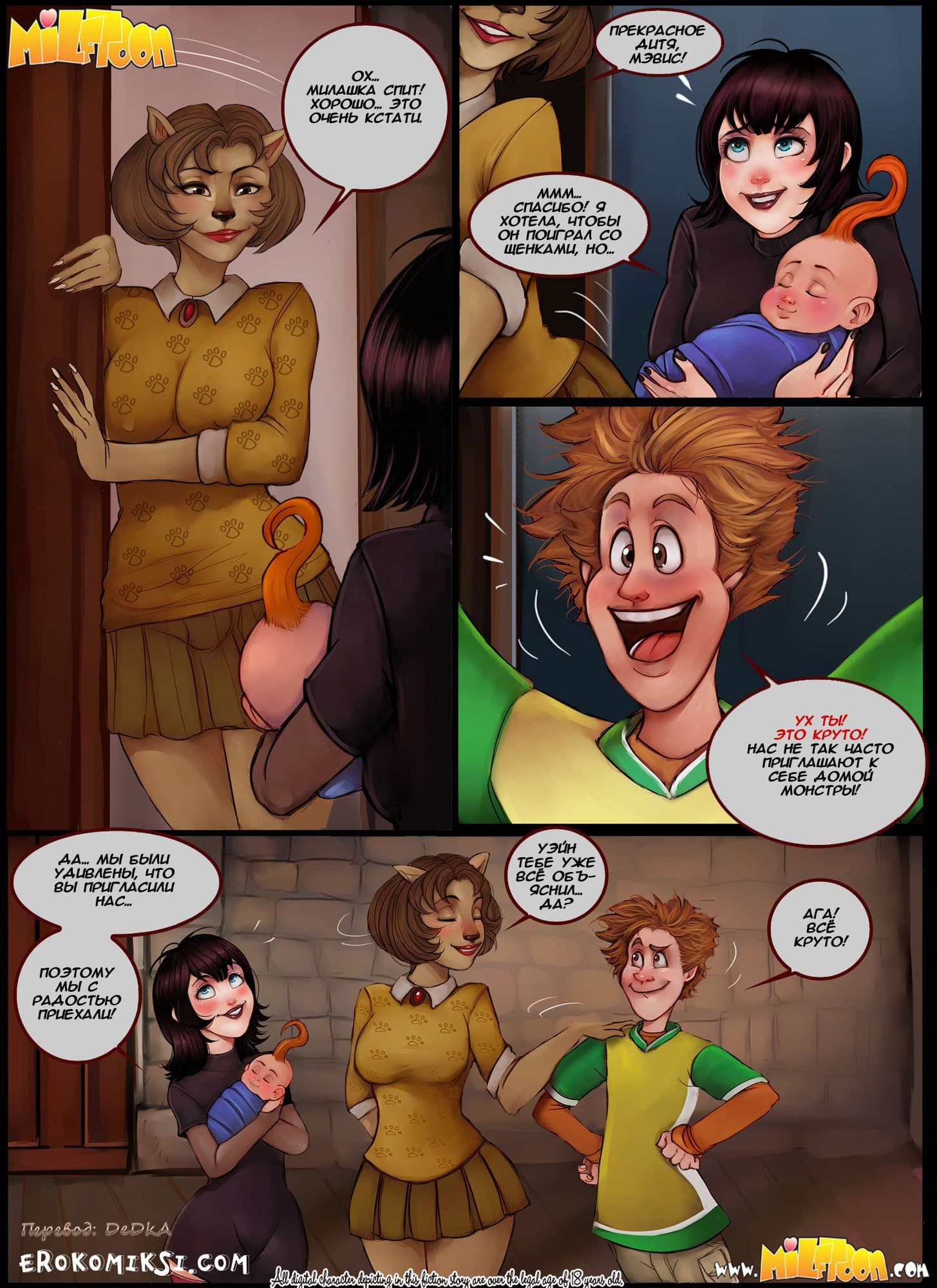 Порно комикс Трансильвания милф является пошлой пародией на известный мультик «Монстры на каникулах». Вы увидите знакомых персонажей в совершенно новых обстоятельствах. Ванда и Уэйн решили стать свингерами, но первая попытка с участием Фрэнка оказалась неудачной. Во второй раз, они пригласили Мэвис и Джонотана…